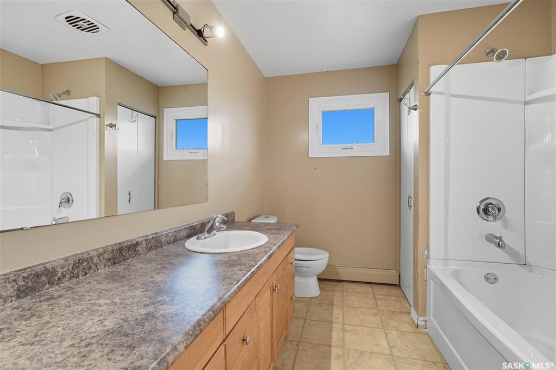 Discover the perfect blend of rural tranquility and modern living with this spacious 1,521 sq ft bungalow situated on 7 acres, under 10 min to Watrous and a short drive to Nutiren Lanigan and BHP Jansen mine sites. Ideal for families, commuters, or anyone seeking space and privacy in a convenient location. Step in the side door to a large mudroom that gives access to the attached single garage, basement or kitchen. Kitchen offers tons of workspace and storage - you'll love the custom oak cabinets! This well-maintained home offers 3 bedrooms, 3 bathrooms, and an open-concept layout that includes a bright kitchen, large living room, and dedicated dining area with patio doors that lead to a newly added covered deck. Basement offers additional living space with a wood fireplace and storage. Recent upgrades include new boiler January 2025,New septic line/RO System April 2025, upgraded electric panel 2021. Boiler heat is cost efficient, with floor heat in kitchen. Enjoy panoramic prairie views, mature yard site, and plenty of space for hobbies, gardening, or outbuildings. Access is easy via a well-maintained road, and services including well power, well and septic are in place.