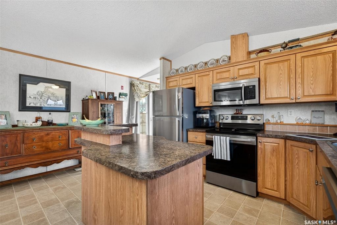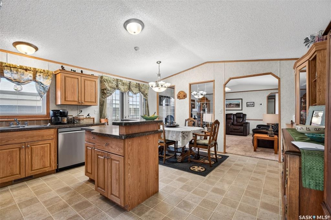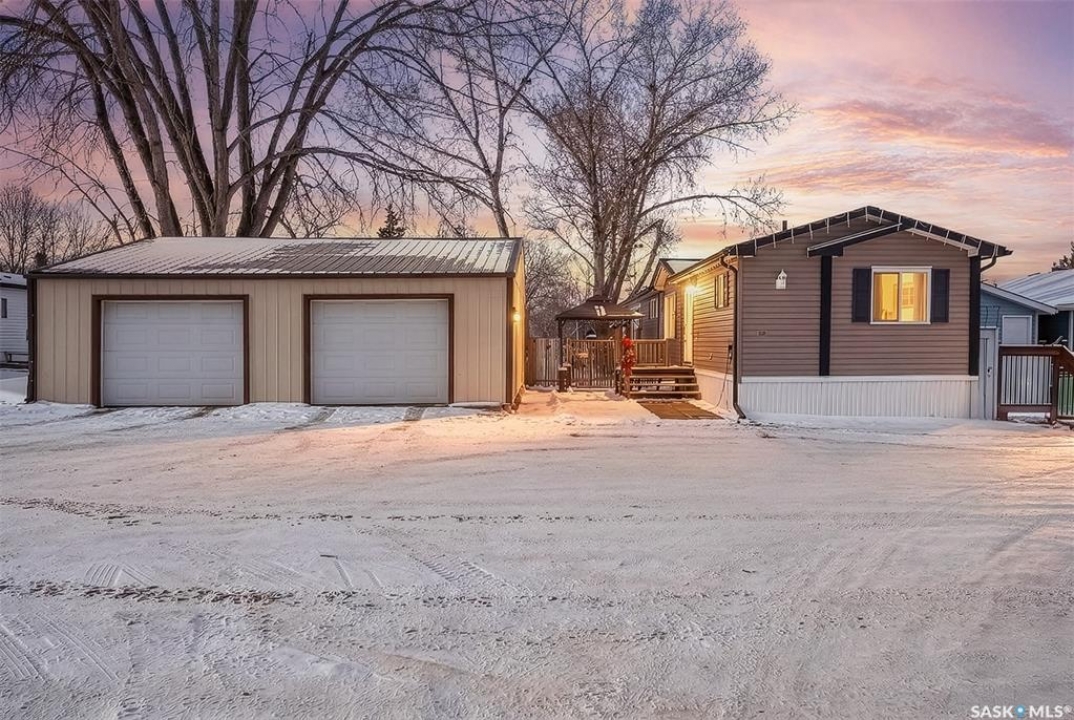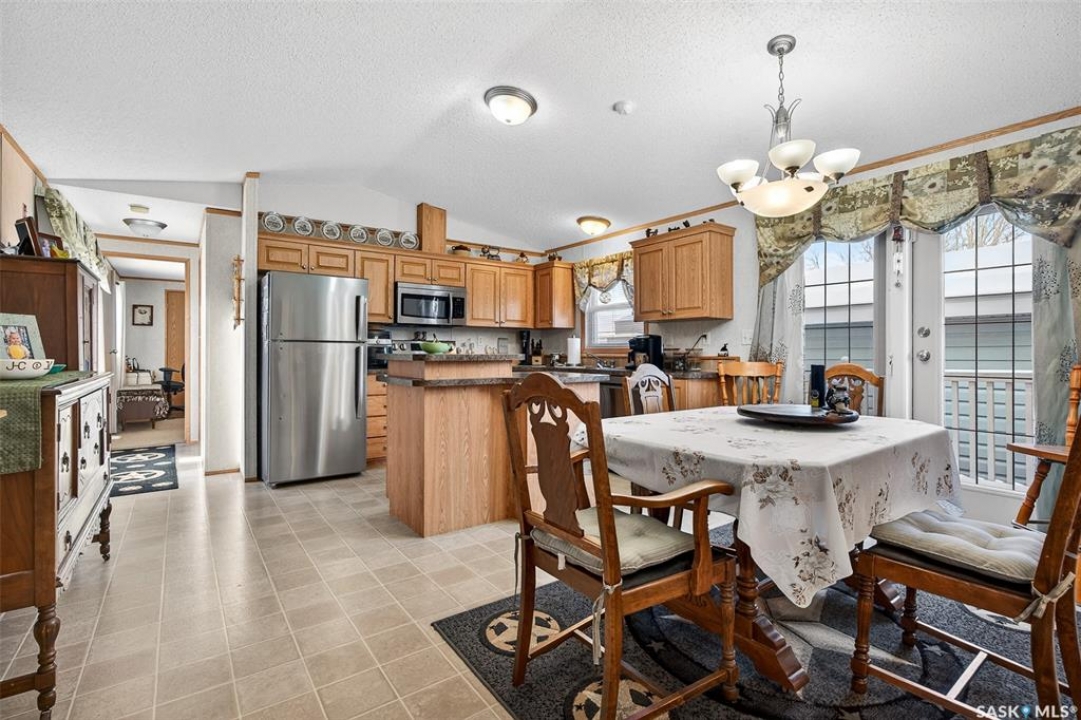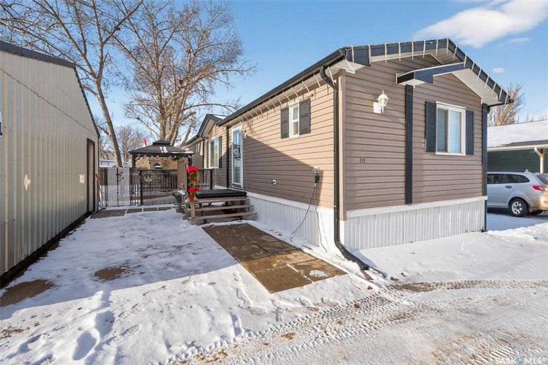 Nestled in the popular Prairie Oasis Trailer Court, this spacious 1,216 sq/ft 3-BED, 2-BATH HOME, built in 2008, offers a comfortable & modern living space. The open-concept living and dining areas are bright and inviting, featuring vaulted ceilings and abundant natural light—perfect for both everyday living and entertaining. The eat-in oak kitchen features an island, newer appliances replaced within the last five years, and is conveniently adjacent to the dining area. The primary bedroom is generously sized and includes a walk-in closet and a 4-piece ensuite. Additional highlights include central air conditioning, two decks, shingles replaced approximately three years ago, and an enormous fenced yard with plenty of lawn space, a covered gazebo, and a DOUBLE CAR HEATED garage. Monthly fees total $816.35, covering lot rent, city taxes ($95.49/month), and garbage/recycling services. With its combination of practical features, a prime location, and move-in-ready condition, this home is an excellent choice for anyone looking to settle in a welcoming community. Don't miss out on this fantastic opportunity—schedule your viewing today!