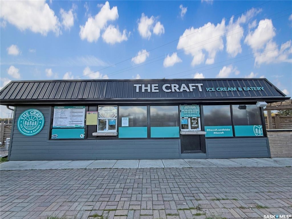 Thriving Candle Lake Favourite! Turn-key, updated, high-traffic seasonal business with that inviting southern-style outdoor eatery vibe - serving up artisan craft ice cream and a full comfort-food menu everyone loves. Perfectly located in the heart of Candle Lake, just steps from Waskateena Beach and surrounded by busy trailer parks and cabins in a sought-after Main Street location. The .28-acre lot (116' frontage) offers incredible visibility and room to grow. The 526 sq. ft. building features an order/pick-up window, fully equipped kitchen, prep area, Taylor ice cream machine, fryers, and modern commercial equipment. Includes staff bathroom, storage room, and powered storage shed. Completely renovated top-to-bottom, truly turn-key and ready for the next owner. Updates include Hardie board/metal siding, concrete work, patio seating, premium signage, powered menu board, upgraded lighting, and exterior sound system. Additional features: LG commercial A/C, water tanks, and Square POS for smooth, modern operations. A rare opportunity to own a beloved local landmark with proven success and exceptional potential to expand and thrive in beautiful Candle Lake!