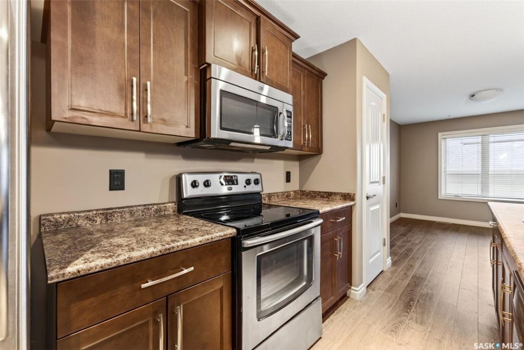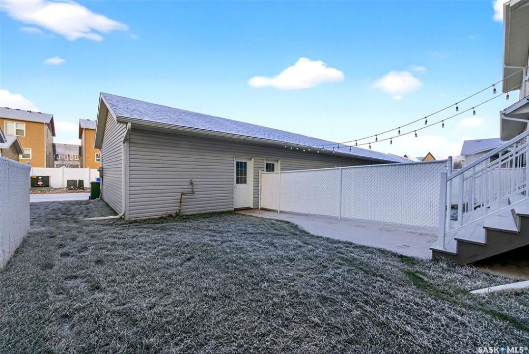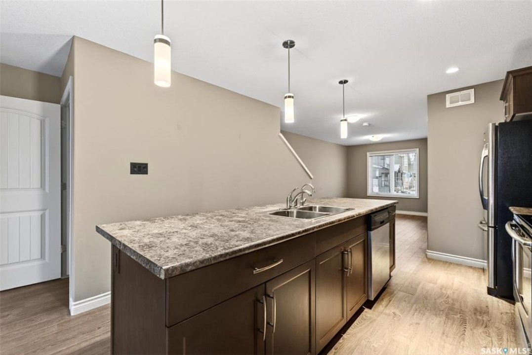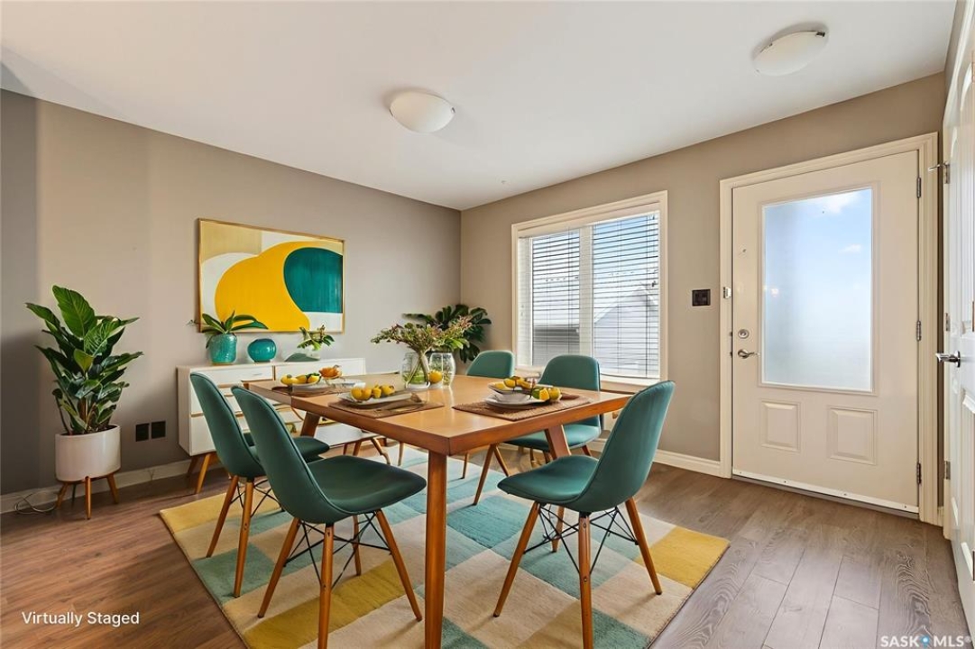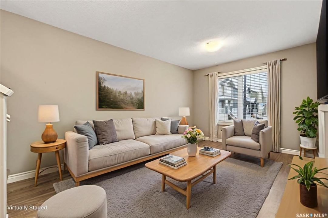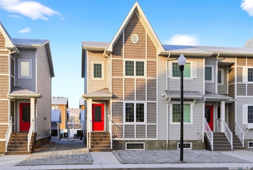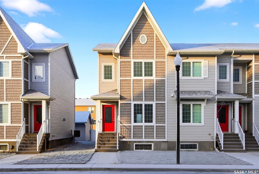 Welcome to 4348 Shaffer Street, located in Regina's highly sought-after Harbour Landing neighbourhood. This beautifully maintained freehold townhome offers exceptional value with NO condo fees and the added convenience of a single detached garage. Upon entering, you are greeted by a bright, inviting main floor featuring a modern open-concept layout that seamlessly connects the living room, dining space, and kitchen. The kitchen offers ample cabinetry, functional prep space, and a comfortable layout perfect for everyday living and entertaining. The upper floor includes 3 spacious bedrooms, including a well-appointed primary suite. The additional bedrooms are perfect for family members, guests, or a home office. A full bathroom and laundry area on this level ensure added convenience. The lower level is unfinished, offering excellent storage and the potential to customize the space to suit your needs — home gym, media room, or additional living area. Outside, enjoy a backyard space ideal for barbecues, play, or quiet mornings with a coffee. This is an end unit which provides a larger yard space, dedicated front sidewalk (other units share a sidewalk) and access between the front and back yard. Very close to walking paths, parks, schools, shopping, restaurants, and all the amenities Harbour Landing is known for, this location is unbeatable for busy families and professionals alike.