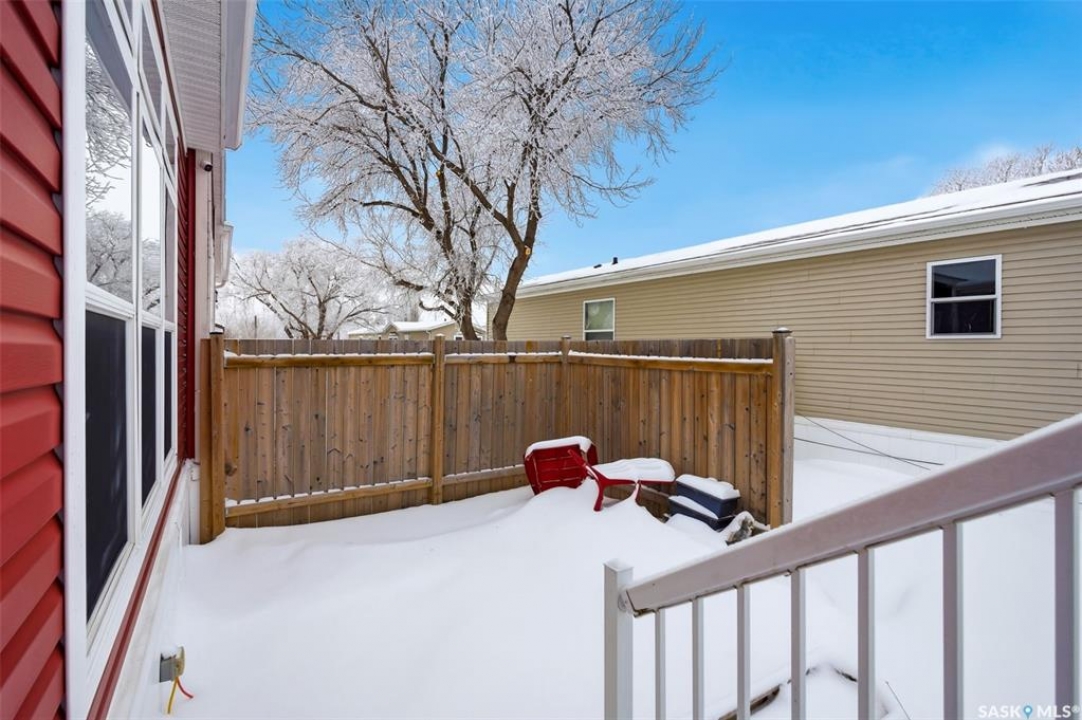 Welcome to Walters Court Mobile Home Park in Pilot Butte! Enjoy the convenience of quick access to Regina while living in a friendly community. This well-maintained 1,190 sq ft home offers excellent value with a functional 3-bedroom, 2-bathroom floor plan and vaulted ceilings that enhance the sense of space. The kitchen is thoughtfully designed with granite countertops, upgraded cabinetry, a corner pantry, and a full appliance package. The electrical panel was updated in 2023, providing added peace of mind. Outside, the fully fenced yard is perfect for relaxing or entertaining, featuring a large deck, two storage sheds, raised garden beds, and parking for up to three vehicles. Inclusions: central air conditioning, alarm system, fridge, stove, built-in oven, dishwasher, washer, and dryer. The current lot pad fee is $675/month and includes taxes, water, sewer, recycling, garbage pickup, and snow removal.