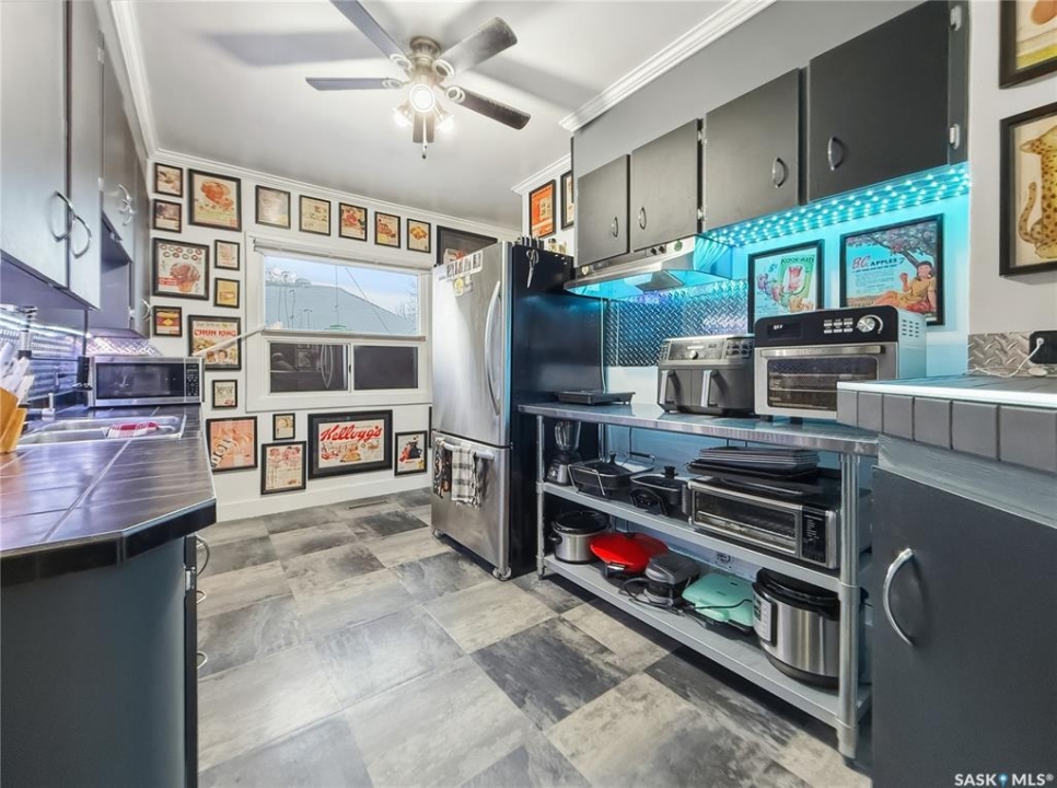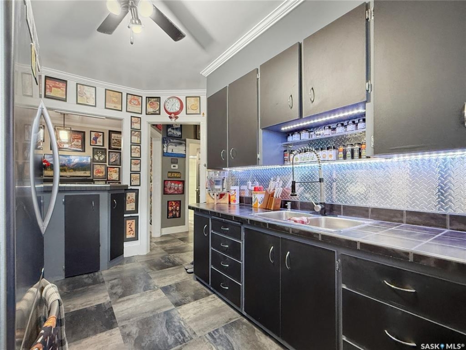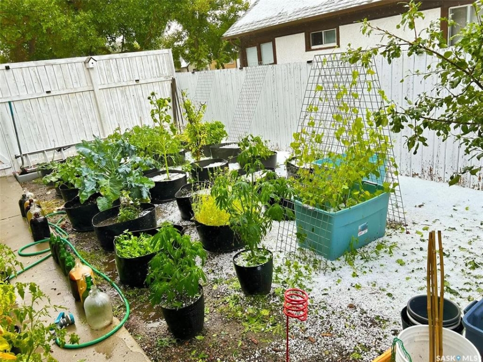 Discover your ideal move-in ready home in a cozy northwest neighbourhood! This exciting property features exceptional outdoor living spaces designed for both relaxation and entertainment. Step outside to an oversized covered deck directly off the back door, within a sectioned off private retreat complete with a barbecue station—perfect for hosting gatherings.This backyard offers versatile spaces including a sectioned area currently covered with sand over grass, ideal for a large pool or easily converted back to green space. The north side features a convenient dog run, while the south side boasts a garden plot with above-ground planters growing okra, sunflowers, cucumbers, a Honey crisp apple tree, and more, all enclosed by updated fencing creating your own private outdoor paradise.A large paved parking area accommodates extra parking. Inside, you'll be welcomed by an 8× 9 boot room with built-in closet and abundant natural light, opening into a cozy front living room. The main floor showcases modern/durable vinyl tile flooring throughout the main floor. The open-concept kitchen and dining room provide seamless access to the backyard, with a wall-integrated island that connects both spaces while offering additional seating and counter space. The kitchen features dark cabinetry with chalkboard paint panels, ceramic tile countertops, stainless steel refrigerator, and a bright south-facing window. The main floor hallway leads to a spacious master bedroom and a renovated three-piece bathroom with double sinks. The attached 1.5-car garage (21'4 × 15'4) is insulated and heated with direct yard access. The lower level currently serves as a family room with under-stair storage, two additional bedrooms, utility space, and a standalone laundry room with storage. Notable updates include additional attic insulation, modern exterior paint, 100-amp electrical panel (2007), and 220-amp garage outlet. For more information or to schedule your personal viewing, please contact. .