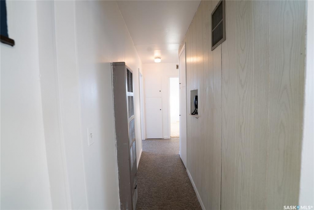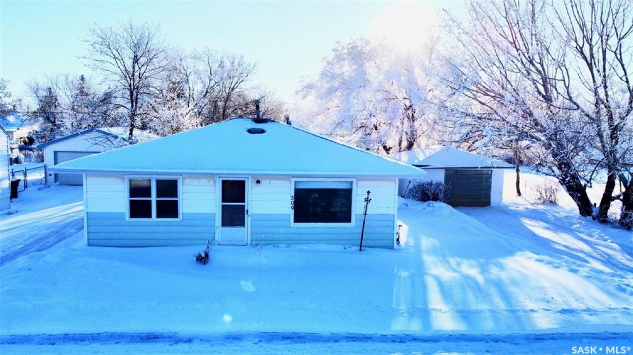 Welcome to this absolutely charming 720 sq. ft. 2-bedroom, 1-bath home with a single detached garage, located in the vibrant and welcoming community of Hanley. This home is truly a doll — lovingly maintained and full of character. Sitting on an impressive 75 x 132 lot, the yard is a standout feature with mature trees, beautiful green space, and plenty of room to garden, relax, another garage or entertain. Inside, you'll appreciate the fresh paint and refinished cabinets, creating a bright and inviting space, with opportunities to add your own personal touches over time. Hanley is a family-friendly community offering a K–12 school, grocery store, post office, coffee shop, golf course, mechanic, and more — making it an ideal place to call home. Don't miss this one — call your favourite agent today!