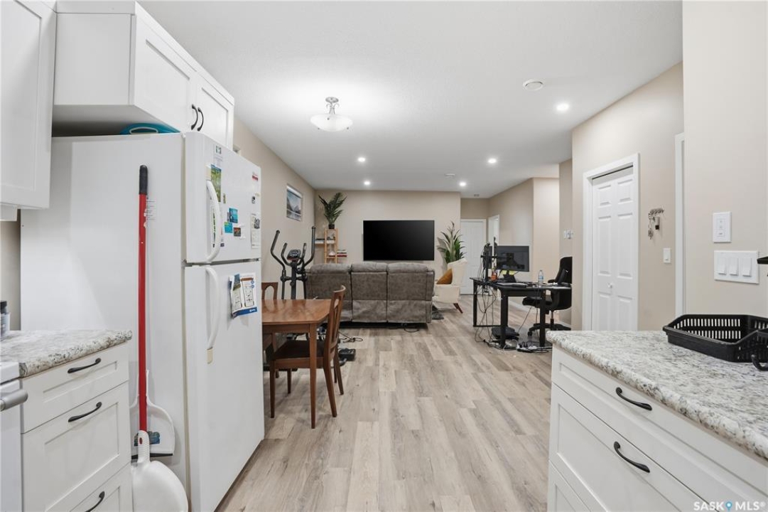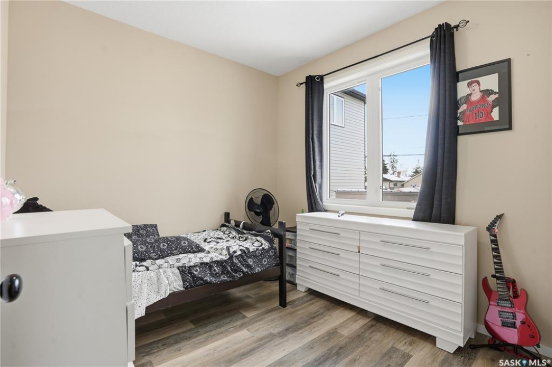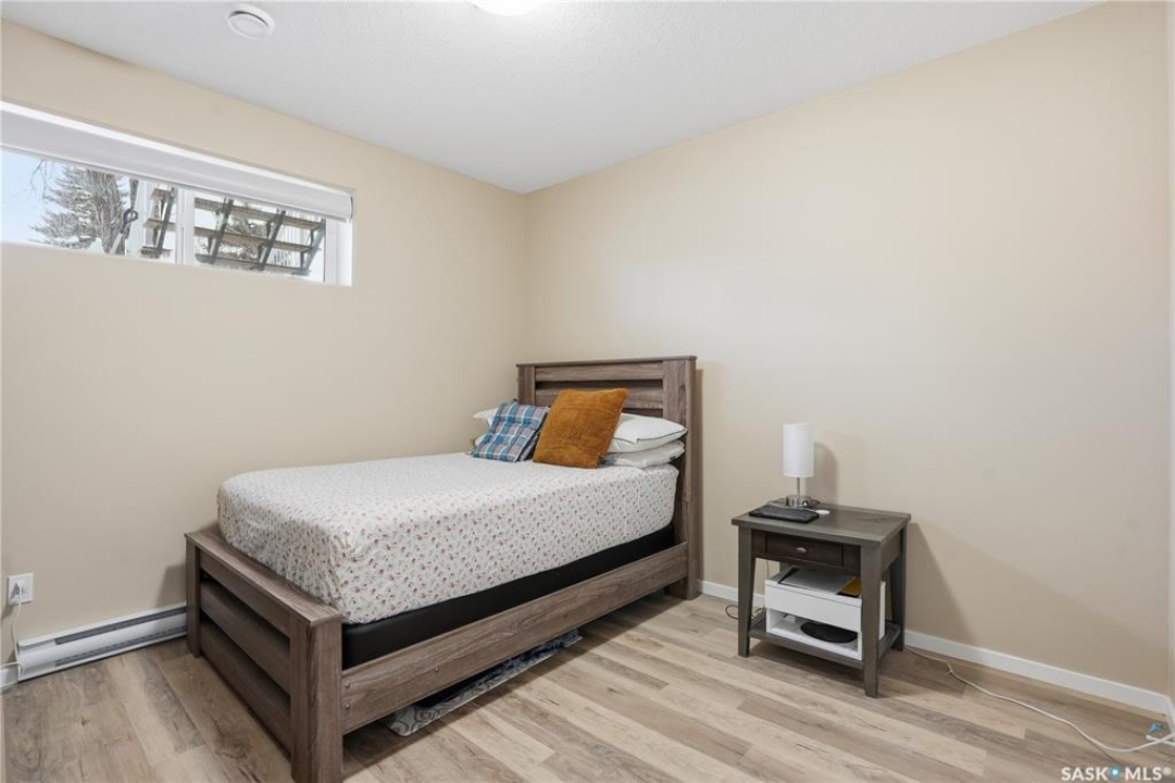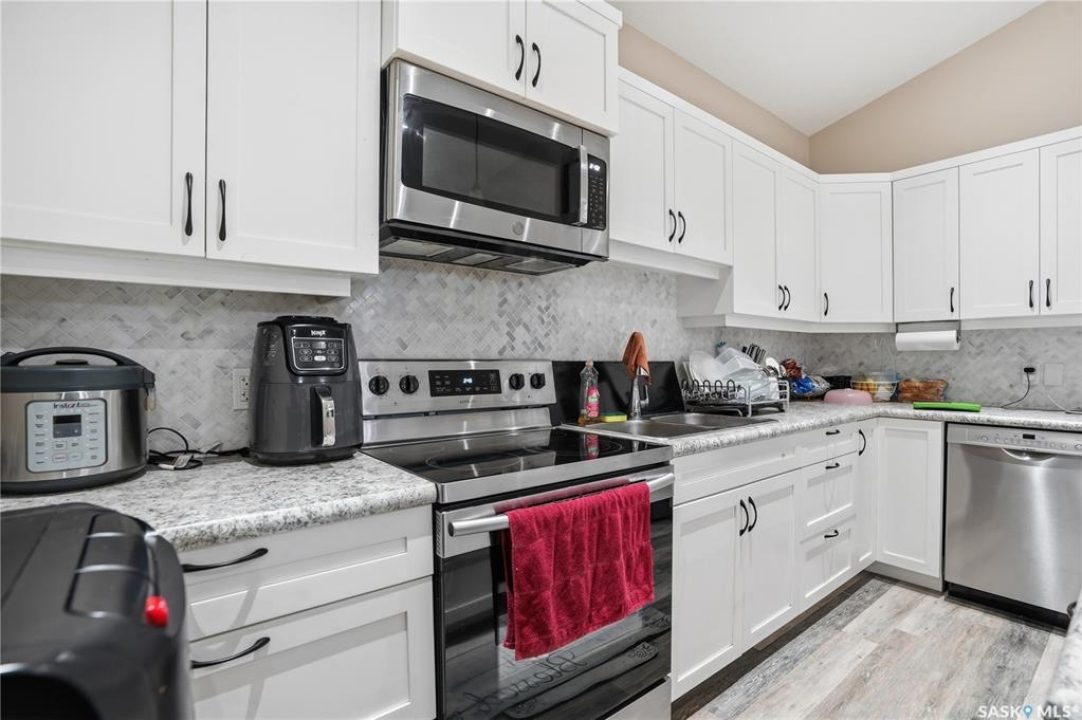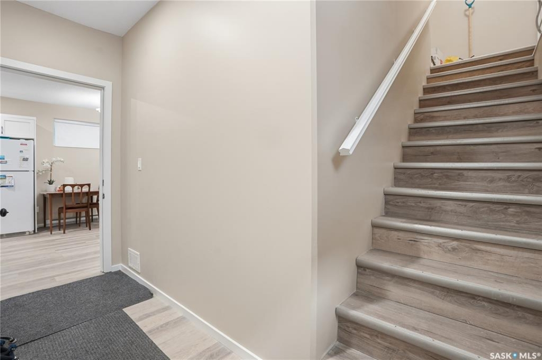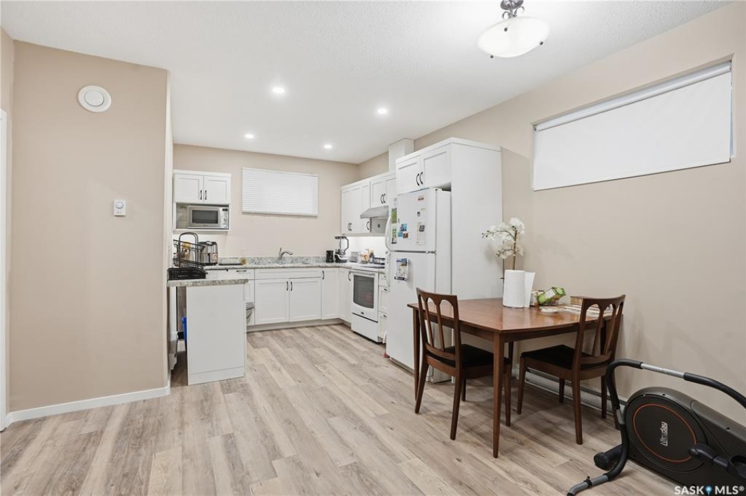 Prime investment opportunity in Eastview! Built by INS Homes in 2019, this modern bungalow offers the perfect setup to live in one suite and rent out the other. The main floor features 1,242 sq ft of bright, open-concept living with vaulted ceilings, recessed lighting, and large windows that flood the space with natural light. The contemporary kitchen is finished with white cabinetry, a large eat-in island, upgraded patterned backsplash, under-cabinet lighting, and stainless steel appliances. A main-floor laundry room adds convenience, while the primary bedroom includes a walk-in closet and three-piece ensuite. Two additional bedrooms and a full bathroom complete this level, which is heated by a natural gas forced-air furnace. A private side entrance leads to the fully developed basement suite, offering a spacious layout with a bright kitchen, dining, and living area. The basement kitchen includes white cabinetry, matching appliances, stainless dishwasher, hood fan, and pantry. The suite features two bedrooms, one with a walk-in closet, a full bathroom, separate laundry, and a utility room. The yard is partially fenced with ample rear parking and back lane access. Located on a quiet Eastview street, this home is close to parks, green spaces, and the Eastview Community Centre.