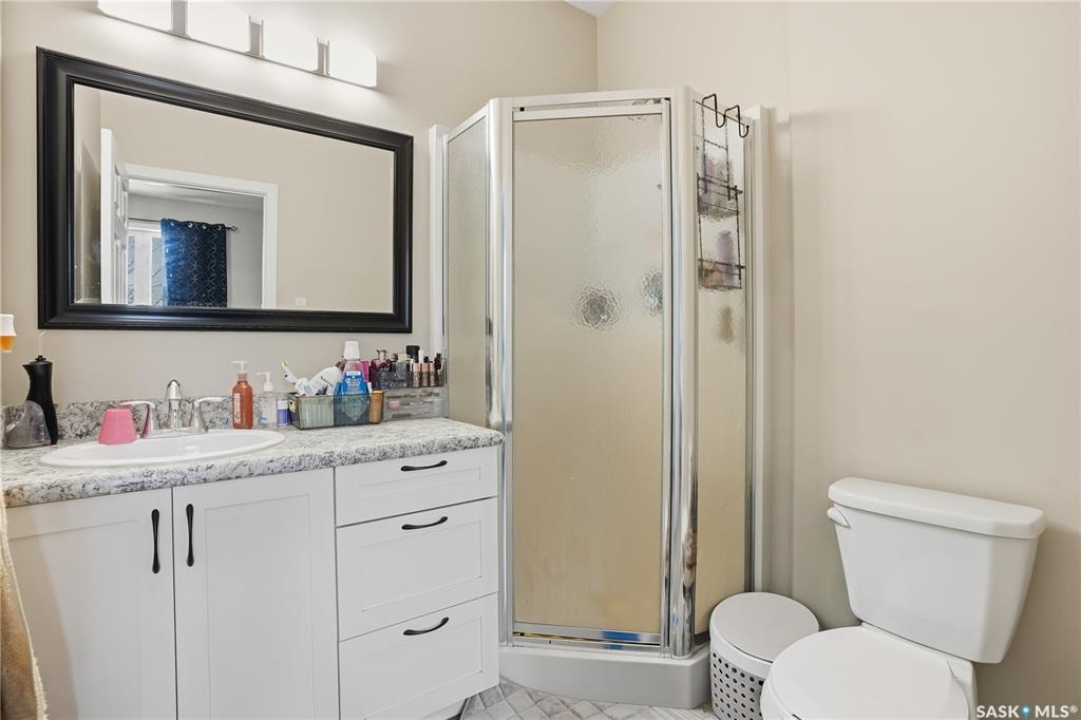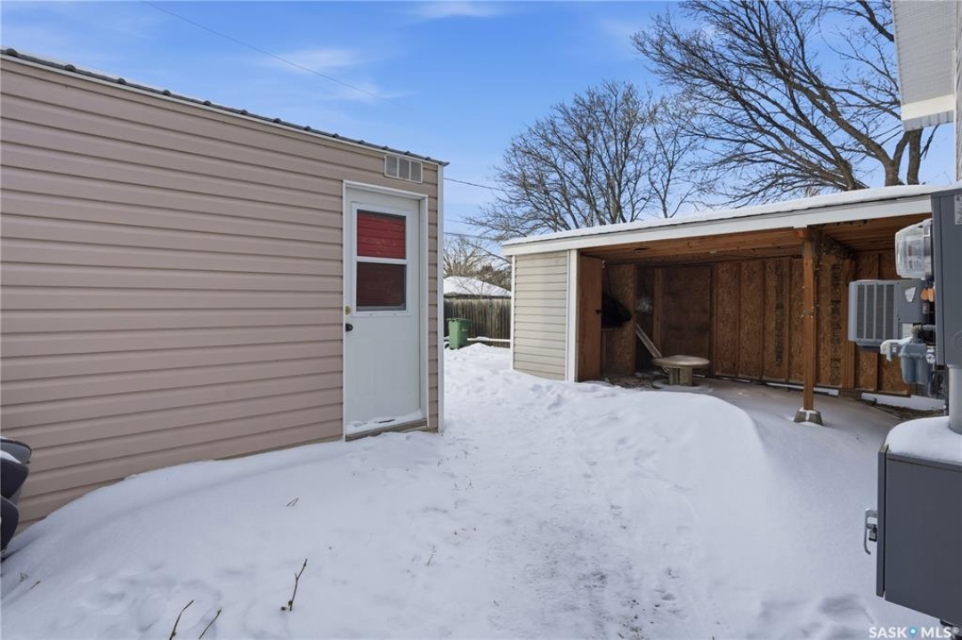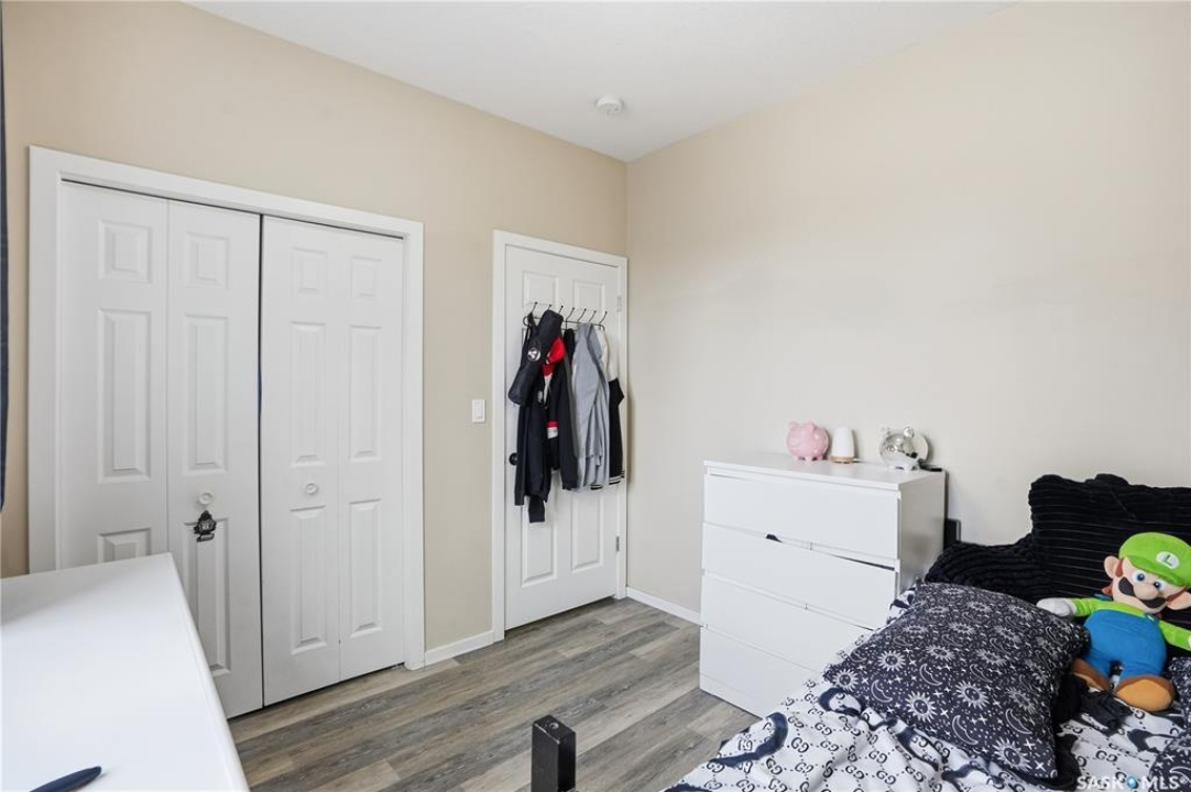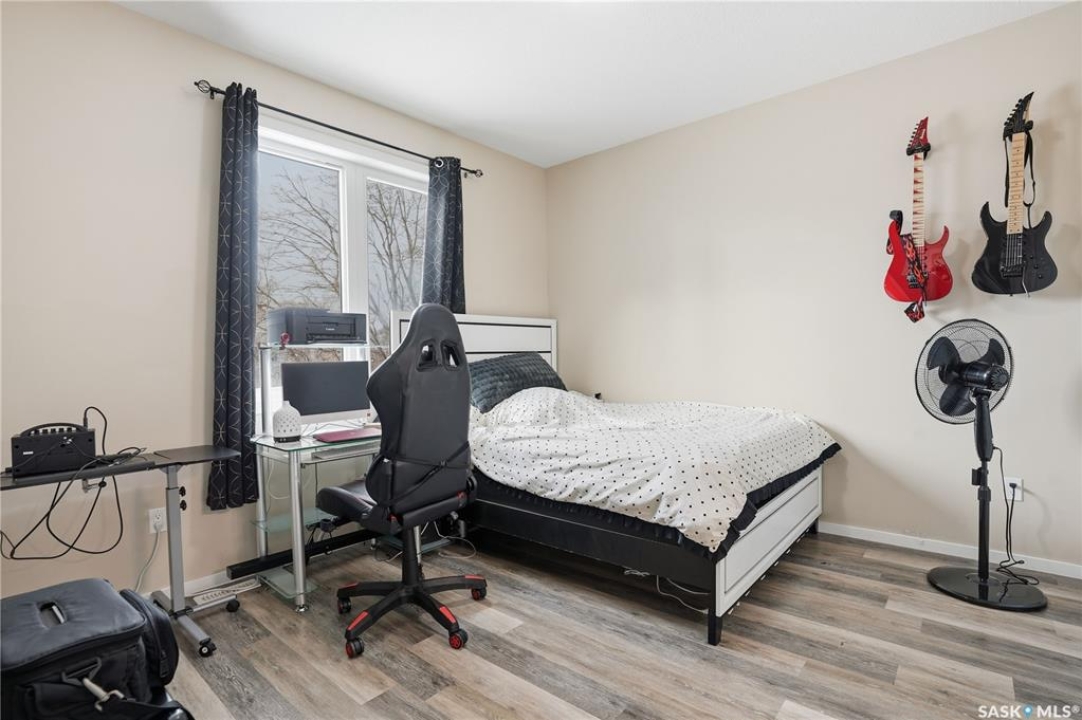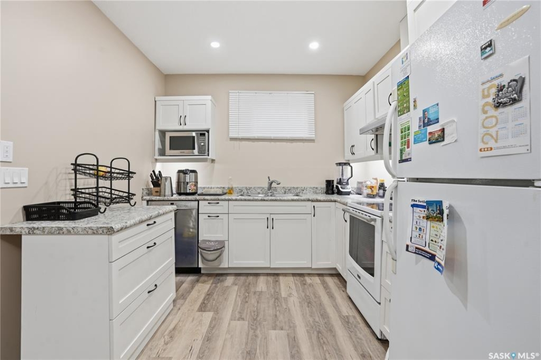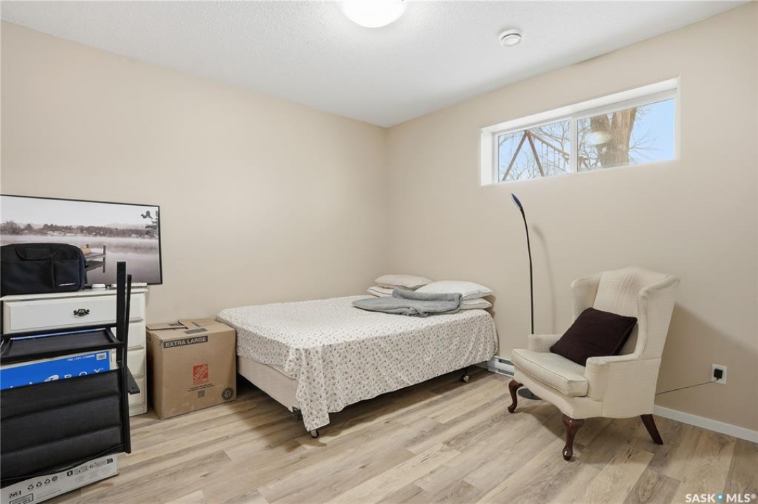Prime investment opportunity in Eastview! Built by INS Homes in 2019, this modern bungalow offers the perfect setup to live in one suite and rent out the other. The main floor features 1,242 sq ft of bright, open-concept living with vaulted ceilings, recessed lighting, and large windows that flood the space with natural light. The contemporary kitchen is finished with white cabinetry, a large eat-in island, upgraded patterned backsplash, under-cabinet lighting, and stainless steel appliances. A main-floor laundry room adds convenience, while the primary bedroom includes a walk-in closet and three-piece ensuite. Two additional bedrooms and a full bathroom complete this level, which is heated by a natural gas forced-air furnace. A private side entrance leads to the fully developed basement suite, offering a spacious layout with a bright kitchen, dining, and living area. The basement kitchen includes white cabinetry, matching appliances, stainless dishwasher, hood fan, and pantry. The suite features two bedrooms, one with a walk-in closet, a full bathroom, separate laundry, and a utility room. The yard is partially fenced with ample rear parking and back lane access. Located on a quiet Eastview street, this home is close to parks, green spaces, and the Eastview Community Centre.