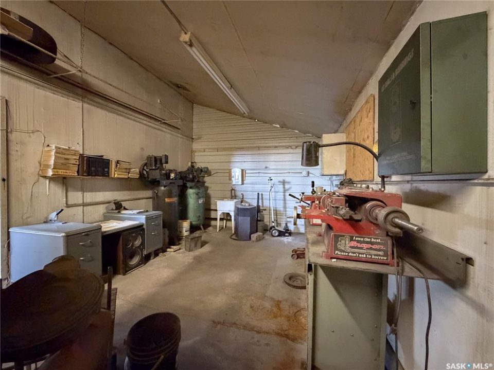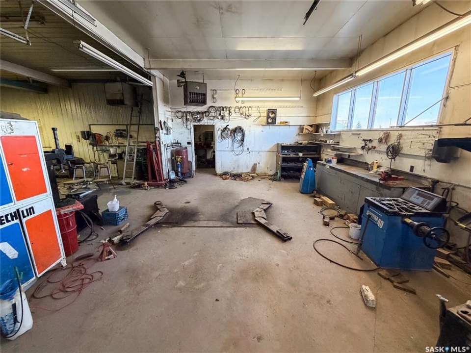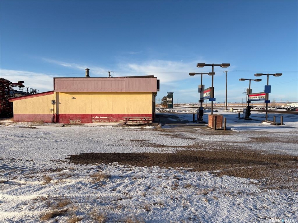 Commercial gas station and automotive service opportunity located just off the main intersection of Highways #13 and #37 in the community of Shaunavon. The site operated as a service station until 2023 and is well suited for continued fuel service, automotive repair, or redevelopment as a quick-lube or service-based business. The property features three gas pump islands plus a separate diesel pump, offering efficient fueling capacity. The main building built in 1976 includes a small retail storefront, two washrooms, and an office/storage area. Attached is a three-bay service shop equipped with two hoists and provides ample space for workbenches, tools, and equipment. A dedicated back room allows for inventory and tire storage and includes two industrial air compressors. The seller's preference is to sell the property inclusive of all existing shop equipment, tools, and inventory dependent on offer price, creating a strong turnkey opportunity. Equipment may include a tire balancer, tire machine, brake and rotor machines, hoists, air compressors, tools, and on-site inventory. A reduced purchase price may be considered for buyers seeking the real estate only, subject to negotiation. Situated on approximately 0.38 acres, the site is graveled and graded for drainage and includes existing environmental monitoring sites. Shaunavon serves as a regional hub for southwest Saskatchewan, supporting agriculture, energy, and service industries while drawing traffic from surrounding rural areas. This location presents a solid opportunity for owner-operators or investors seeking a well-positioned commercial property.