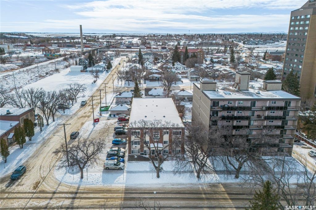 Looking to expand your investment portfolio? This strong 18-suite apartment building offering immediate, stabilized cash flow in a high-demand central Moose Jaw location is available for purchase. Property has 17/18 suites currently rented with a proven tenant base, including 6 long-term tenants with residency spanning approx 6 to 16 years, supporting predictable income & reduced turnover. The building features a desirable suite mix of 6 two-bedroom units, 11 one-bedroom units, &1 bachelor suite, appealing to a broad rental demographic. Most suites have been updated over time with improvements including flooring, paint, & bathroom vanities. All suites are equipped with newer intercom systems, solid core fir entry doors, & include fridge, stove, & hood fan. Separate electrical metering allows for efficient expense control & improved net operating income. Key capital upgrades & mechanical features include natural gas boiler with baseboard heating in all suites, 81-litre hot water heater, & all windows have been replaced. The top two floors (12 suites) are equipped with wall air conditioning, enhancing tenant retention & rental appeal. Coin-operated laundry on the lower floor provides additional income. The site includes 18 electrified parking stalls, a strong amenity in this central location. Located across from Crescent Park, steps to public transit & the Senior Activity Centre, & within walking distance to Temple Gardens Mineral Spa & Casino, restaurants, banking, retail/grocery stores, & medical clinic. This location supports consistent demand & long-term rental stability. An excellent opportunity for investors seeking a well-located, stabilized multi-family asset with long-term tenants, controlled expenses, & future rental upside in a growing rental market.