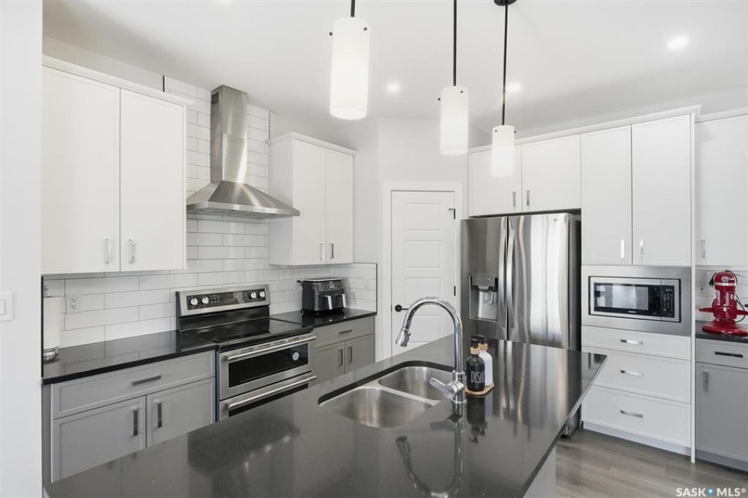 Welcome to 206 Pepper Court, a beautiful home with a 1 bedroom LEGAL SUITE located on a quiet street in Brighton, one of Saskatoon's most desirable neighbourhoods. This fully developed 1646 square foot 2-storey home, with double attached garage, offers the perfect balance of comfort, convenience, and style. The main level includes a spacious living room with fireplace, 2-pce bathroom, a bright and open kitchen, and a dining room overlooking the rear yard. The second level includes 3 bedrooms, a 4-piece bath, a 4-piece master bedroom ensuite with dual sinks, and a functional laundry room including built in cabinetry and shelving. The basement, with seperate suite entry, has been professionally developed with a 1 bedroom legal suite and includes all kitchen/laundry appliances and it's very own furnace/electric meter. The yard is nicely manicured with a deck, low maintenance vinyl fence, underground sprinklers, lawn, and numerous fruit trees. A paved rear alley provides privacy and convenient access to the yard as needed. Includes all kitchen appliances (2 sets), washer and dryer (2 sets), and window coverings. This move-in ready home is nestled in a prime family-friendly location and is only a short walk to parks/walking paths/sports fields/future school and a quick few minute drive to numerous amenities and neighbourhood access. Call to view!