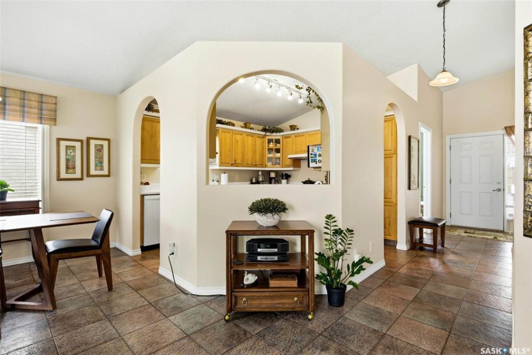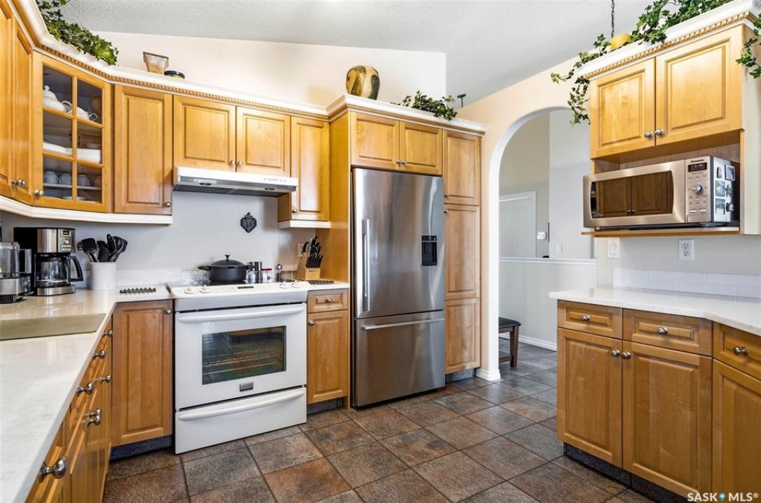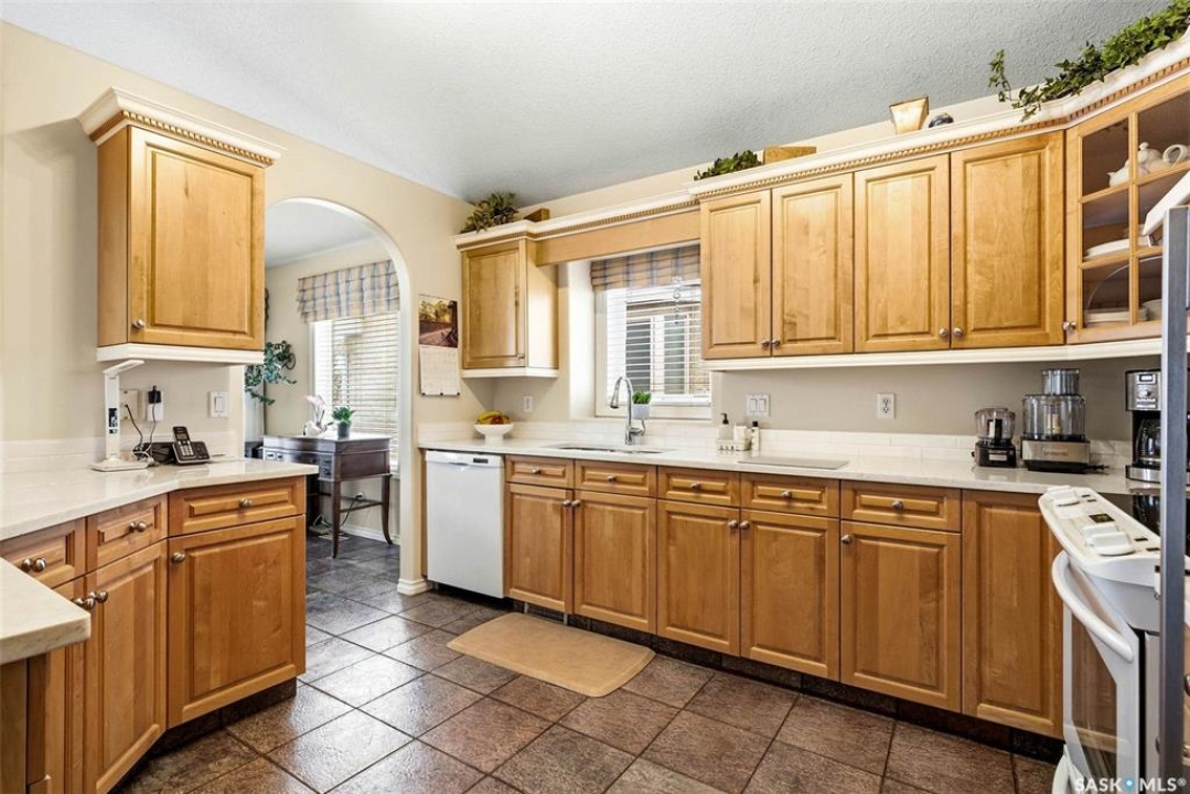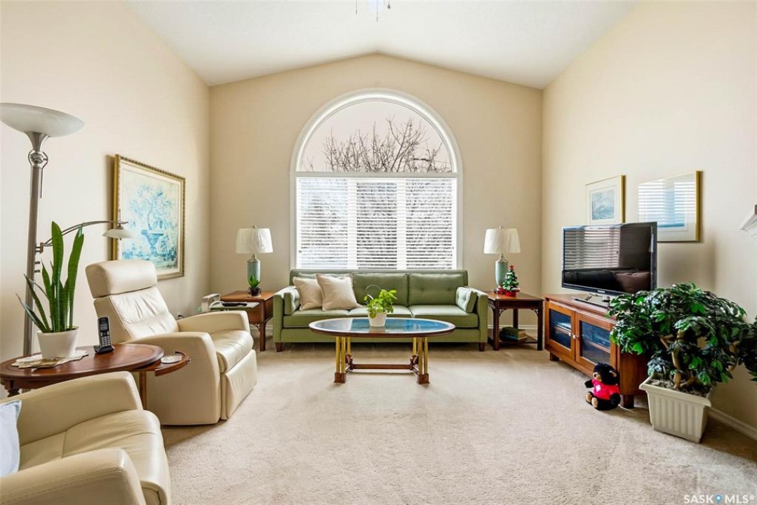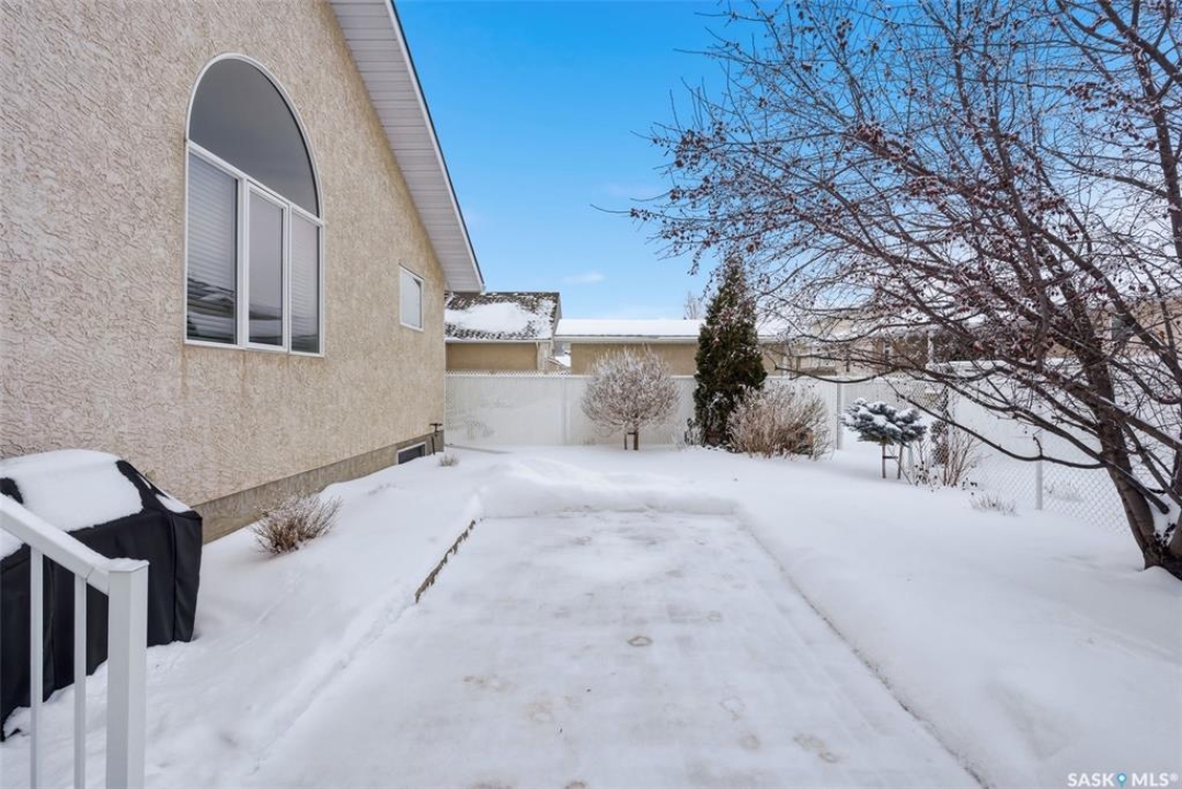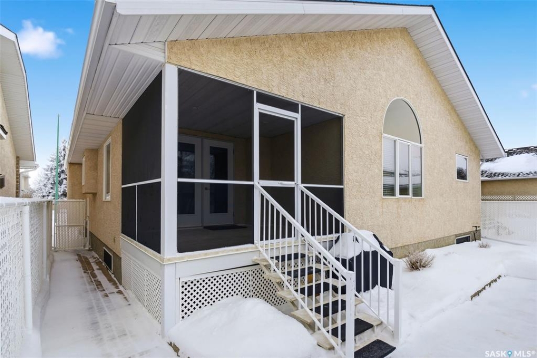 Great street appeal on this Meticulously maintained 1999 Varsity Built Show Home with maintenance free exterior featuring stucco and brick accents, maintenance free soffits, facia & eaves. This 1,497 sq. ft. bungalow with vaulted ceilings is in a great location in Windsor Park close to Saint Gabriel & Jack McKenzie Elementary Schools and Prince William Park with a 21 X 24 insulated/drywalled attached garage. Upgrades include quartz countertops in kitchen/6 yrs, HE furnace/approx. 3 yrs old, overhead garage door/3 yrs, water heater/5 yrs, c/air/5 yrs, shingles/8 yrs old, new garburator/6 yrs, fridge/5 yrs old and lovely Sunroom off kitchen eating area. Upon entering this home there is a large foyer and a walk in closet for your coats/shoes. Elegant archway kitchen features Kitchen Craft maple cabinetry with crown moldings, undermount ss sink, upgraded quartz countertops, vaulted ceiling, stainless fridge, b/I dishwasher, stove/hoodfan, microwave all included, ceramic tile flooring and overlooks the spacious diningroom area with ceramic tile flooring and garden doors to the sunroom with a privacy pull down blind. Lovely livingroom with vaulted ceiling/ceiling fan, large arched window and 3 sided high eff. gas fireplace. Main floor spacious laundry with handy shelving & cabinets with washer & dryer included. Spacious primary bedroom with walk-in closet and 4 pc ensuite with stand alone shower & jet tub. Second bedroom is a good size as well. Lovely den/flex room with arched window could be turned into a 3rd bedroom on the main floor or a formal diningroom. The main 4 pc bathroom features a soaker tub, maple cabinetry and ceramic flooring. Open stairway to basement that is insulated, polyed, electrical plugs & has a flat floor (rough in for future bathroom). The driveway has exposed aggregate with a brick sidewalk leading to the backyard as well as a brick patio and lovely sunroom to enjoy. Underground sprinklers (front & back). This is a MUST SEE HOME!!!