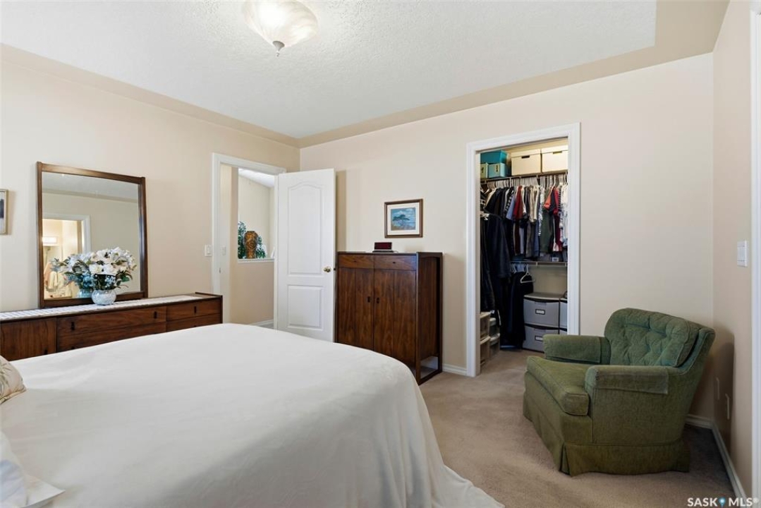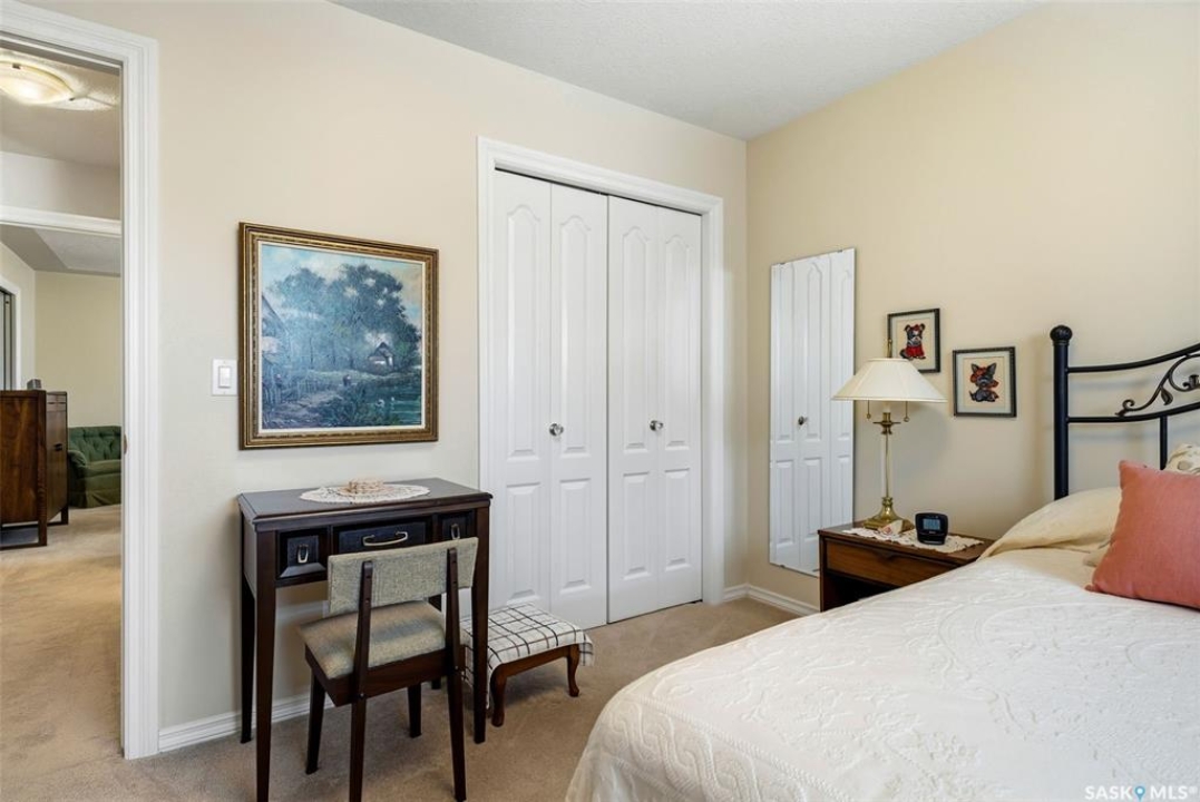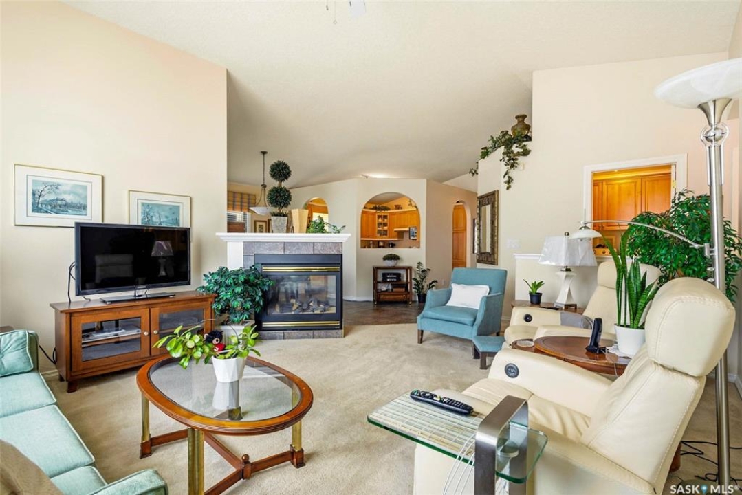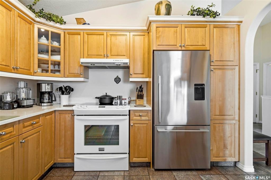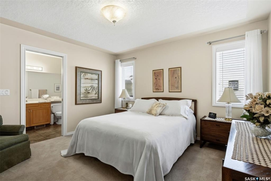 Great street appeal on this Meticulously maintained 1999 Varsity Built Show Home with maintenance free exterior featuring stucco and brick accents, maintenance free soffits, facia & eaves. This 1,497 sq. ft. bungalow with vaulted ceilings is in a great location in Windsor Park close to Saint Gabriel & Jack McKenzie Elementary Schools and Prince William Park with a 21 X 24 insulated/drywalled attached garage. Upgrades include quartz countertops in kitchen/6 yrs, HE furnace/approx. 3 yrs old, overhead garage door/3 yrs, water heater/5 yrs, c/air/5 yrs, shingles/8 yrs old, new garburator/6 yrs, fridge/5 yrs old and lovely Sunroom off kitchen eating area. Upon entering this home there is a large foyer and a walk in closet for your coats/shoes. Elegant archway kitchen features Kitchen Craft maple cabinetry with crown moldings, undermount ss sink, upgraded quartz countertops, vaulted ceiling, stainless fridge, b/I dishwasher, stove/hoodfan, microwave all included, ceramic tile flooring and overlooks the spacious diningroom area with ceramic tile flooring and garden doors to the sunroom with a privacy pull down blind. Lovely livingroom with vaulted ceiling/ceiling fan, large arched window and 3 sided high eff. gas fireplace. Main floor spacious laundry with handy shelving & cabinets with washer & dryer included. Spacious primary bedroom with walk-in closet and 4 pc ensuite with stand alone shower & jet tub. Second bedroom is a good size as well. Lovely den/flex room with arched window could be turned into a 3rd bedroom on the main floor or a formal diningroom. The main 4 pc bathroom features a soaker tub, maple cabinetry and ceramic flooring. Open stairway to basement that is insulated, polyed, electrical plugs & has a flat floor (rough in for future bathroom). The driveway has exposed aggregate with a brick sidewalk leading to the backyard as well as a brick patio and lovely sunroom to enjoy. Underground sprinklers (front & back). This is a MUST SEE HOME!!!
