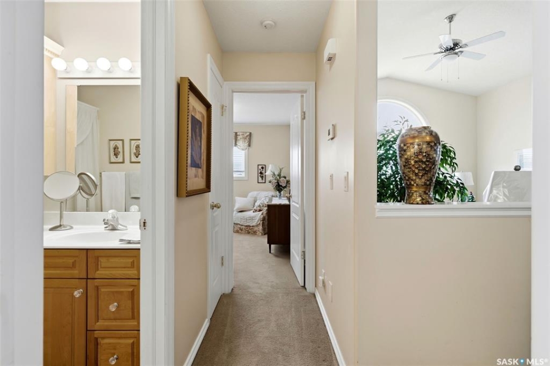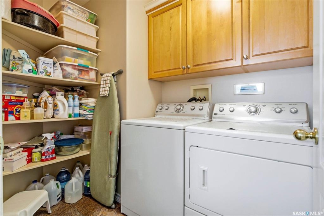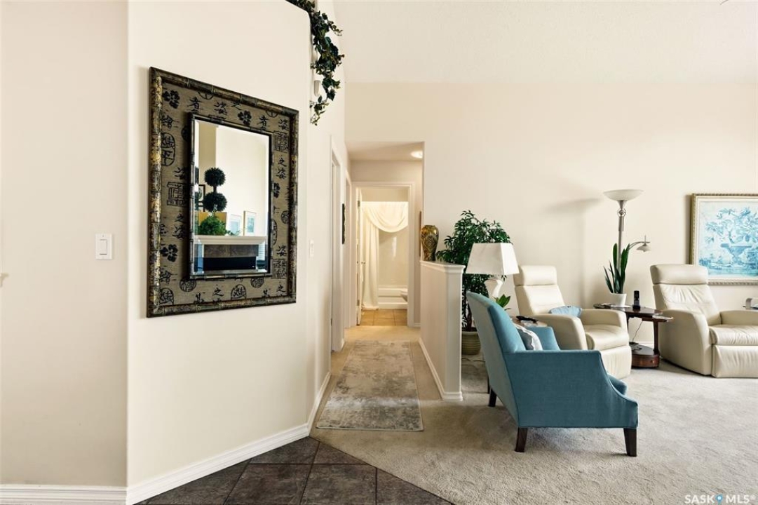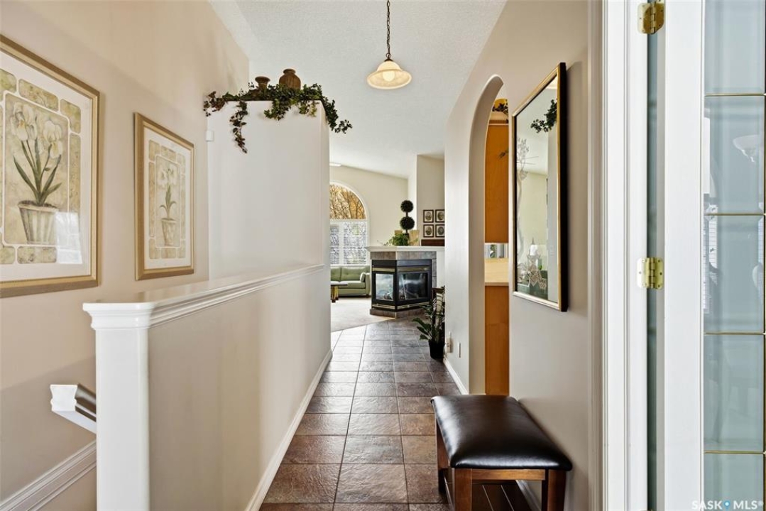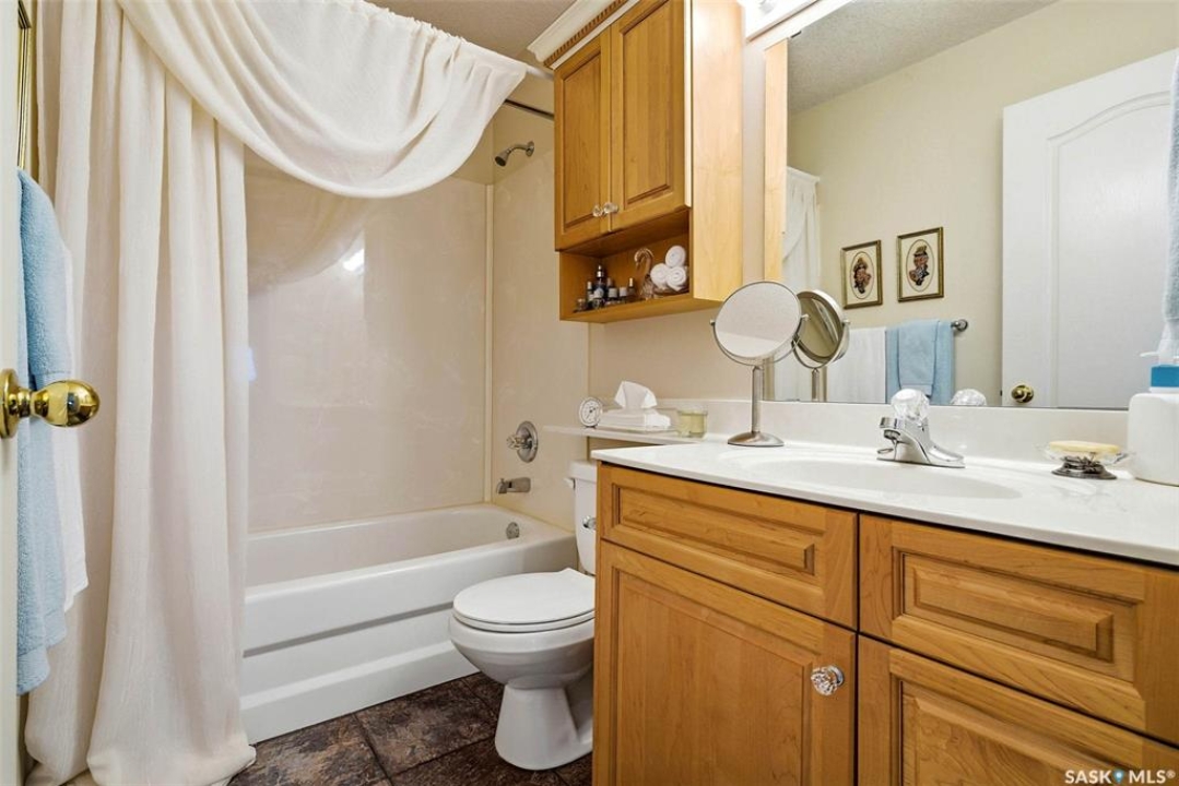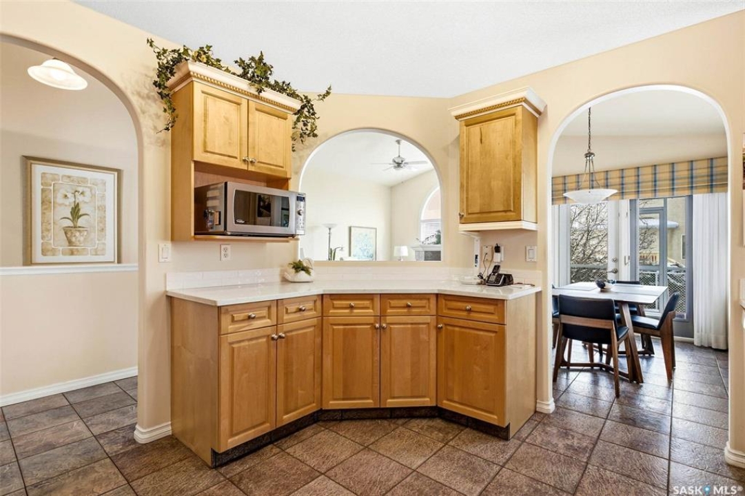 Great street appeal on this Meticulously maintained 1999 Varsity Built Show Home with maintenance free exterior featuring stucco and brick accents, maintenance free soffits, facia & eaves. This 1,497 sq. ft. bungalow with vaulted ceilings is in a great location in Windsor Park close to Saint Gabriel & Jack McKenzie Elementary Schools and Prince William Park with a 21 X 24 insulated/drywalled attached garage. Upgrades include quartz countertops in kitchen/6 yrs, HE furnace/approx. 3 yrs old, overhead garage door/3 yrs, water heater/5 yrs, c/air/5 yrs, shingles/8 yrs old, new garburator/6 yrs, fridge/5 yrs old and lovely Sunroom off kitchen eating area. Upon entering this home there is a large foyer and a walk in closet for your coats/shoes. Elegant archway kitchen features Kitchen Craft maple cabinetry with crown moldings, undermount ss sink, upgraded quartz countertops, vaulted ceiling, stainless fridge, b/I dishwasher, stove/hoodfan, microwave all included, ceramic tile flooring and overlooks the spacious diningroom area with ceramic tile flooring and garden doors to the sunroom with a privacy pull down blind. Lovely livingroom with vaulted ceiling/ceiling fan, large arched window and 3 sided high eff. gas fireplace. Main floor spacious laundry with handy shelving & cabinets with washer & dryer included. Spacious primary bedroom with walk-in closet and 4 pc ensuite with stand alone shower & jet tub. Second bedroom is a good size as well. Lovely den/flex room with arched window could be turned into a 3rd bedroom on the main floor or a formal diningroom. The main 4 pc bathroom features a soaker tub, maple cabinetry and ceramic flooring. Open stairway to basement that is insulated, polyed, electrical plugs & has a flat floor (rough in for future bathroom). The driveway has exposed aggregate with a brick sidewalk leading to the backyard as well as a brick patio and lovely sunroom to enjoy. Underground sprinklers (front & back). This is a MUST SEE HOME!!!