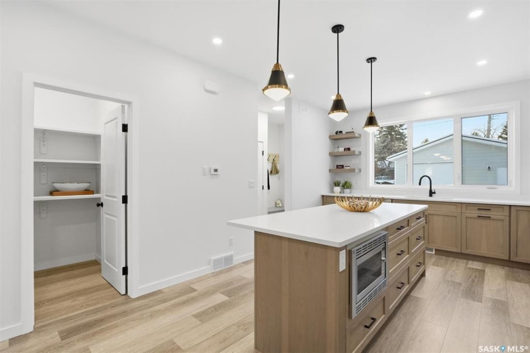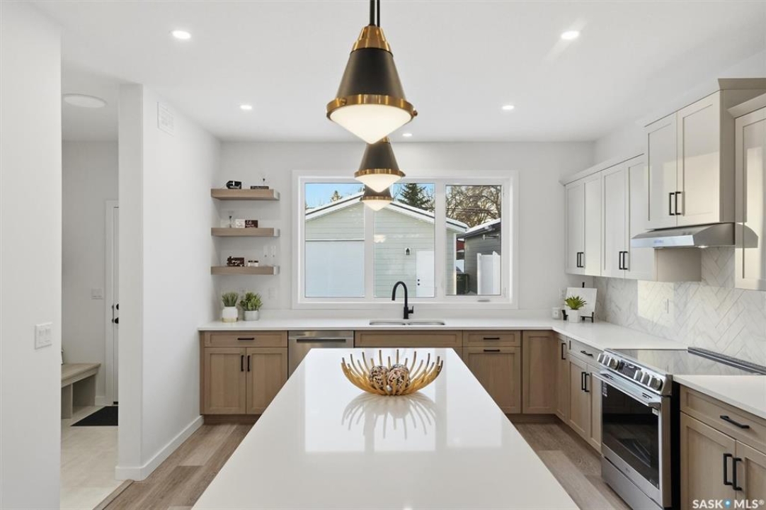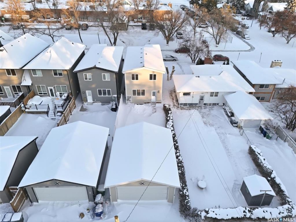 This free standing custom built 2 storey walkout home was built by Capilano Developments and is located in prime Varsity View. Given the unique opportunity of being within walking distance to the University of Saskatchewan the vision was to design a flexible plan appealing to professionals looking to be close to the hospital or University, & even students looking to get into the real estate market. The landscape of this street provided an opportunity to allow access to the basement from the front of the home, which is ideally set up for a suite, home based business, area for extended family visiting, or to use for your own enjoyment. With 1700 sqft on the 2 floors, the main level is spacious and offers a living room with feature gas fireplace with Venetian Plaster surround, dinging room, 2 tone staggered height kitchen cabinets with soft close features / tiled backsplash / garbage/recycle pullout, walk-in pantry, 2 Pc bathroom, and rear mud room with bench seating/storage. The second floor has 3 bedrooms, with the primary bedroom featuring vaulted ceilings, 5 Pc ensuite with soaker tub, walk-in tiled shower, dual sinks, and a walk-in closet. There are two more bedrooms with vaulted ceilings, 4 Pc bathroom, and walk-in laundry area with built-in cabinetry. The basement level is already set up with a secondary electrical panel, future kitchen and laundry rough-ins if a basement suite is of interest, Air B and B, Other features include: luxury waterproof laminate, quartz ctops, A/C, 20'x26' double detached garage with utility door access, majority of yard fenced, rear landscaping with underground sprinklers, front driveway for additional parking.
