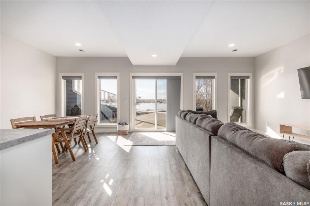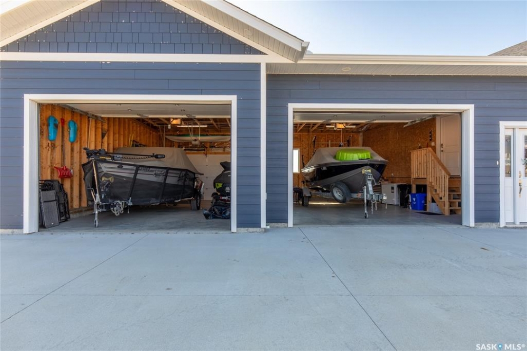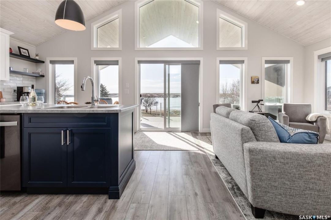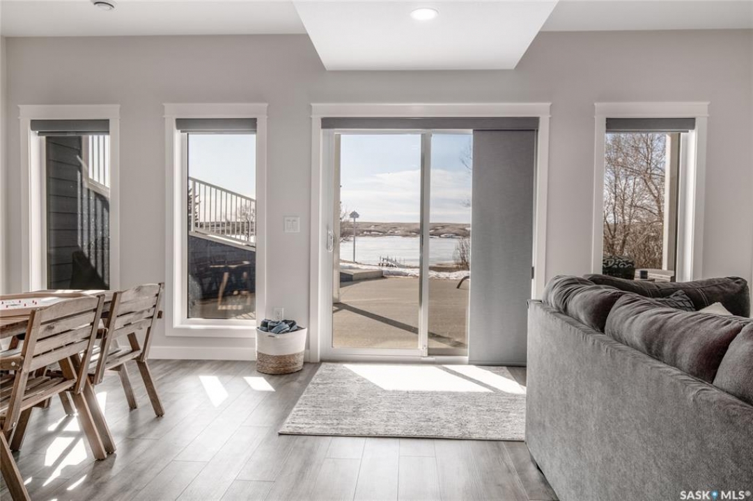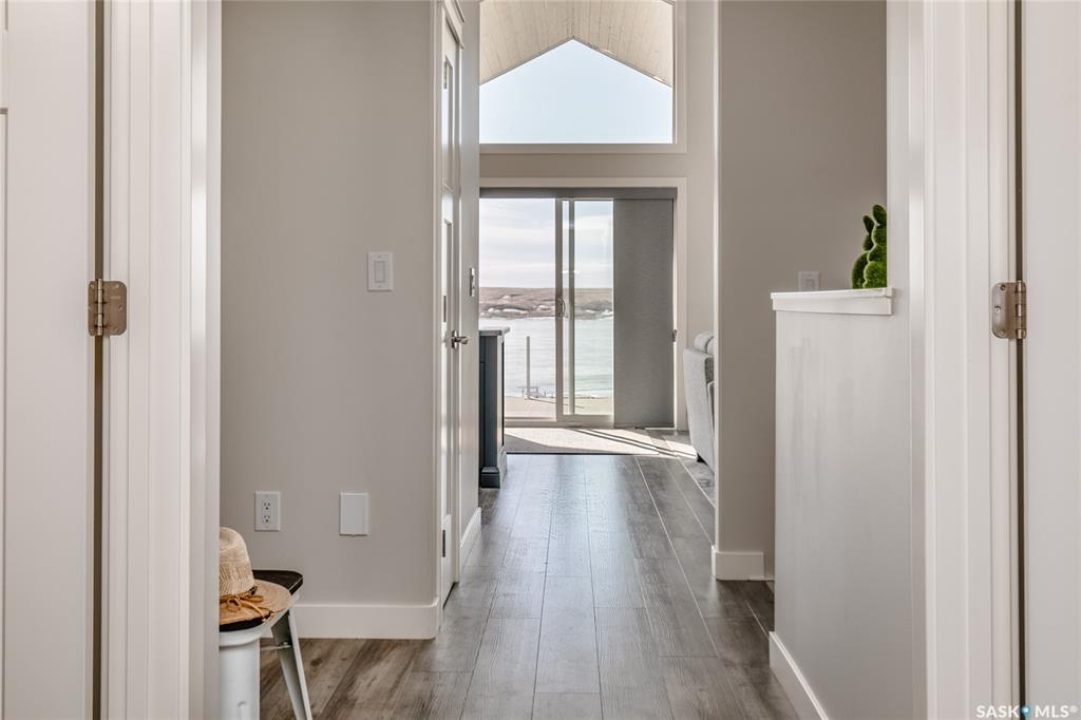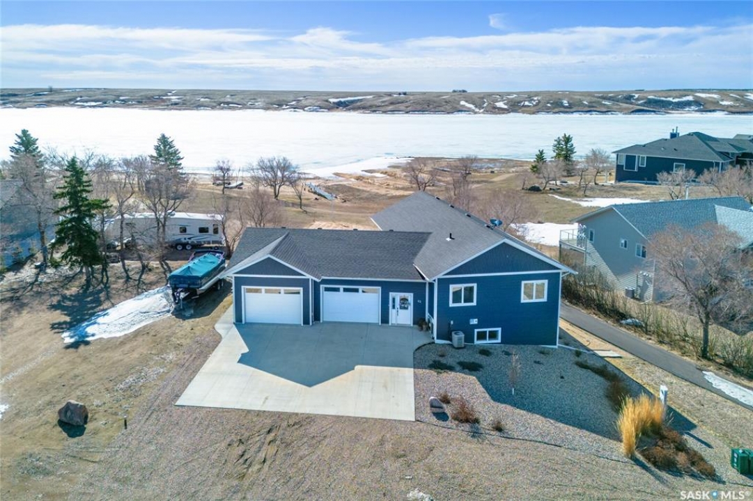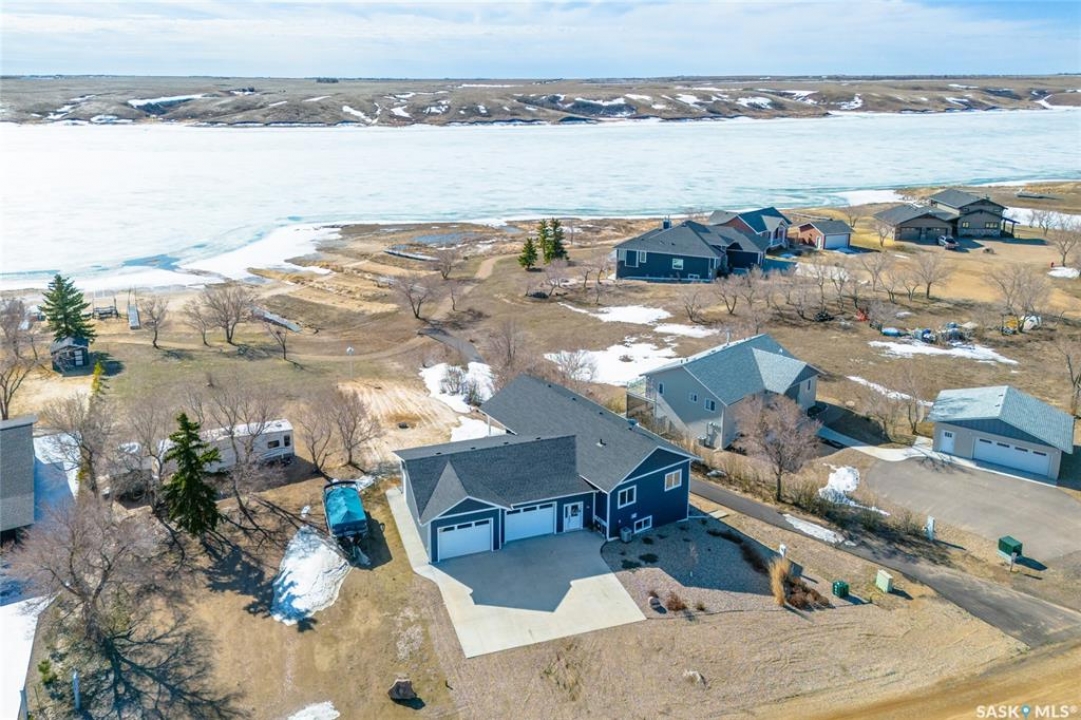 Welcome to your dream lakefront escape at Lake Diefenbaker! Step inside from the oversized double car garage—with convenient drive-through doors—and prepare to be wowed by the stunning panoramic views of the lake. The heart of the home features an A-frame style living room and kitchen, soaring with natural light thanks to the wall of windows framing the water beyond. The open-concept design makes it easy to entertain, relax, and take in the scenery from every angle. Slide open the doors to your covered deck and enjoy your morning coffee with a front-row seat to nature. This main level includes two spacious bedrooms and a full bathroom, offering comfort and function. Downstairs, you'll find two additional bedrooms, another full bathroom, laundry in the utility room, and a large family room with a games area and walk-out access to the backyard. Whether you're searching for a peaceful year-round residence or a lakefront getaway, this home delivers beauty, comfort, and that unbeatable Lake Diefenbaker lifestyle.