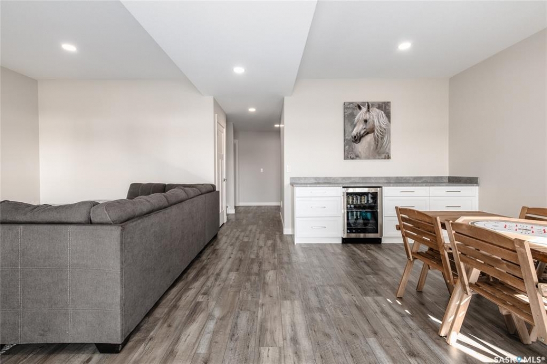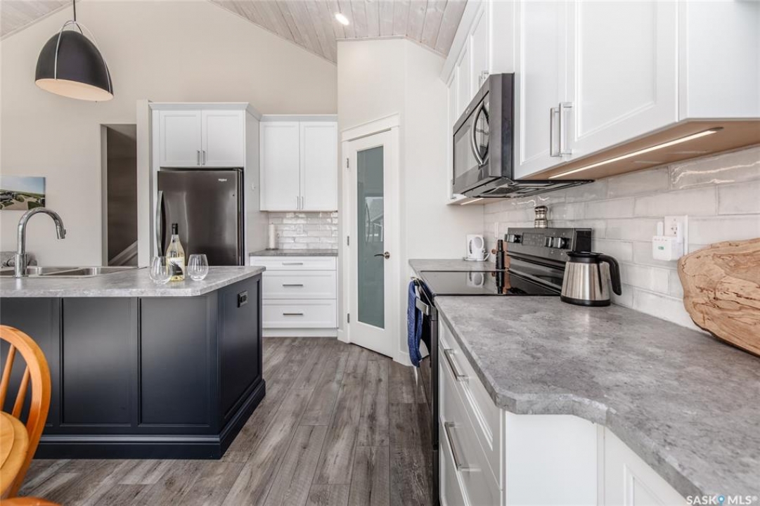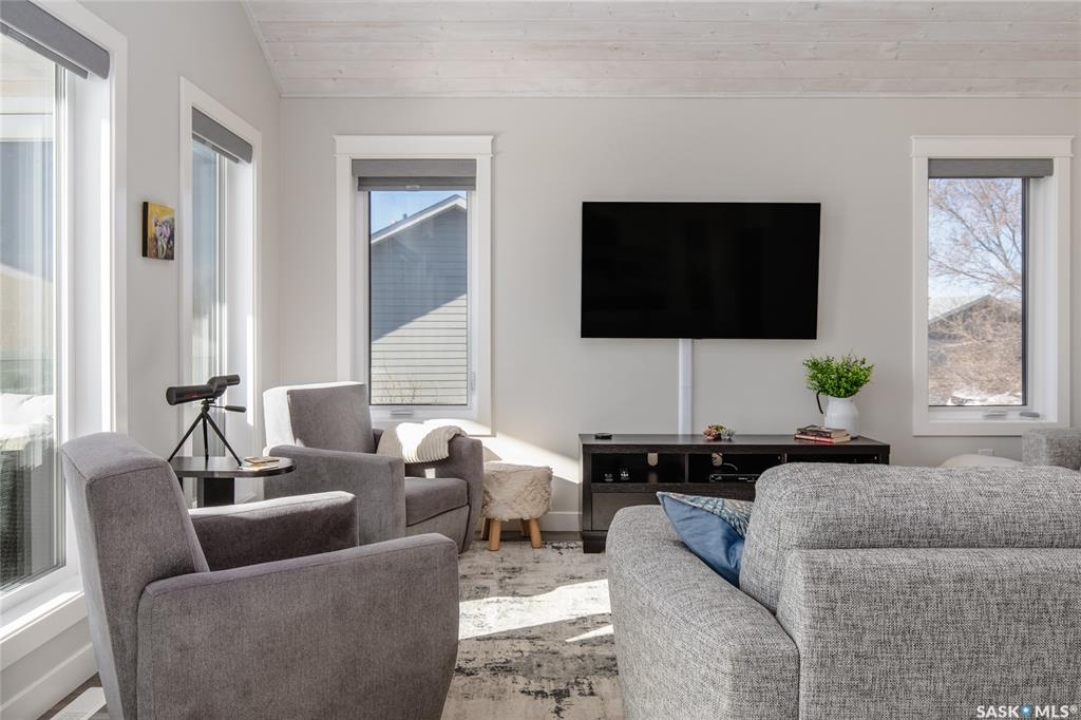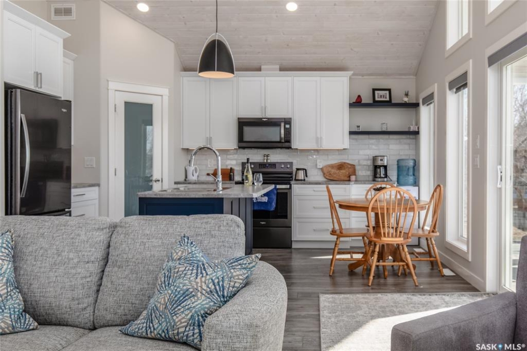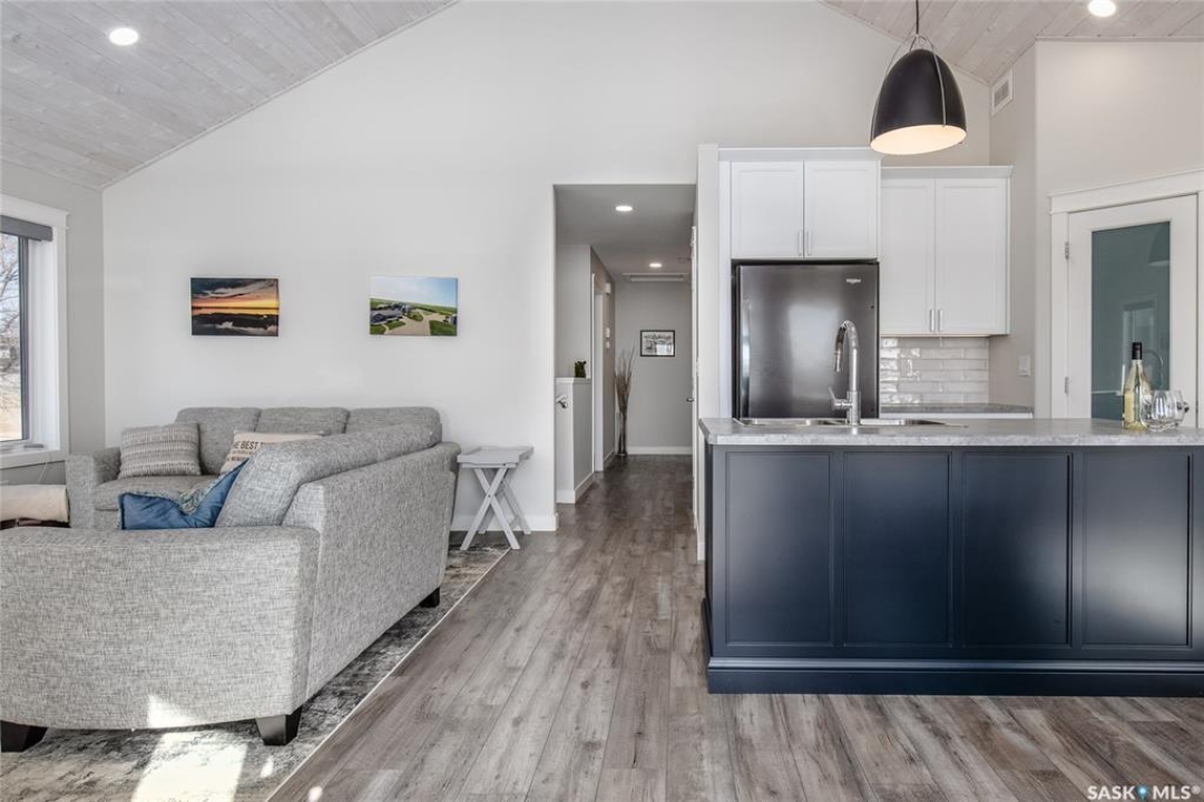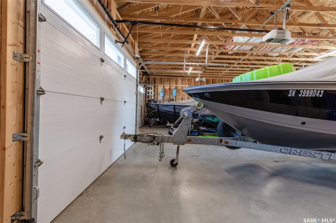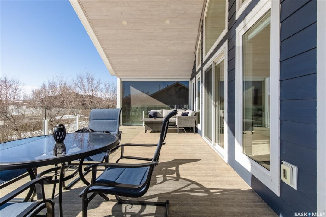 Welcome to your dream lakefront escape at Lake Diefenbaker! Step inside from the oversized double car garage—with convenient drive-through doors—and prepare to be wowed by the stunning panoramic views of the lake. The heart of the home features an A-frame style living room and kitchen, soaring with natural light thanks to the wall of windows framing the water beyond. The open-concept design makes it easy to entertain, relax, and take in the scenery from every angle. Slide open the doors to your covered deck and enjoy your morning coffee with a front-row seat to nature. This main level includes two spacious bedrooms and a full bathroom, offering comfort and function. Downstairs, you'll find two additional bedrooms, another full bathroom, laundry in the utility room, and a large family room with a games area and walk-out access to the backyard. Whether you're searching for a peaceful year-round residence or a lakefront getaway, this home delivers beauty, comfort, and that unbeatable Lake Diefenbaker lifestyle.
