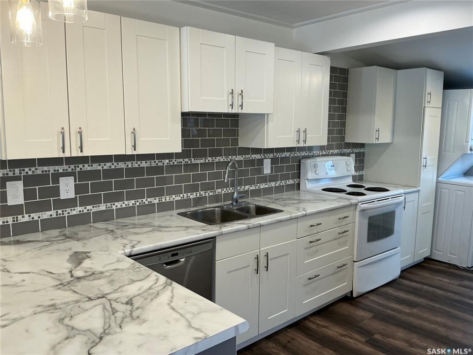 EXHIBITION! Completely renovated. Located across the street from a park/school this 910 sq. ft. raised bungalow offers a 2 bedroom main floor & a 2 bedroom LEGAL suite in basement each with a separate entrance and each their own laundry facilities. Seperate Heating.Units are bright and open with plenty of natural light & upgrades. Main floor features white lacquer kitchen cabinets with new counter tops & backsplash. Main floor Fridge, stove, built in dishwasher and stacking washer and dryer. Tastefully decorated and finished in modern decor. Newly Renovated never lived in since Reno's were completed laminate flooring through most of the main. 4 piece bath is newly renovated . painted pine ceilings. Upgraded windows up and down.. Separate electrical panels. New High efficient gas furnace. Full height lower level has been also freshly Renovated, Separate electrical panel for the upper and lower level. Detached 2 car garage 24x24 with alley access, overhead door with 1 remote control. See photo's for Renovation pictures.