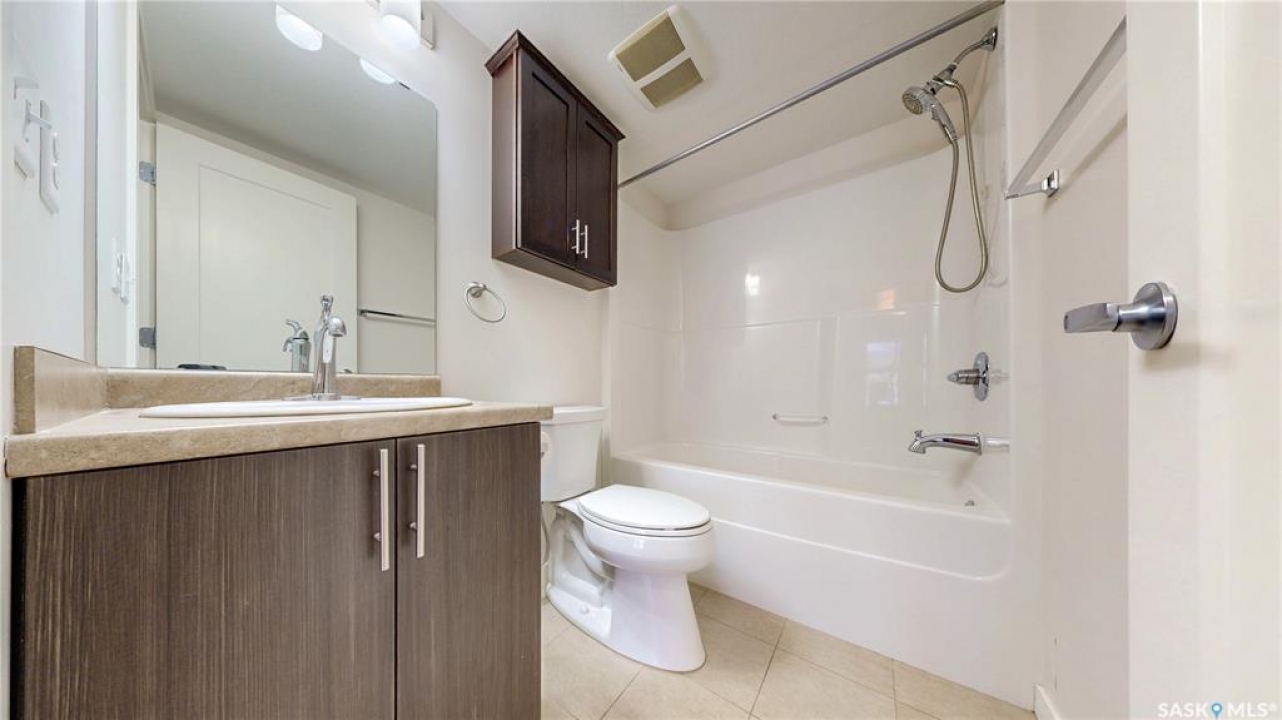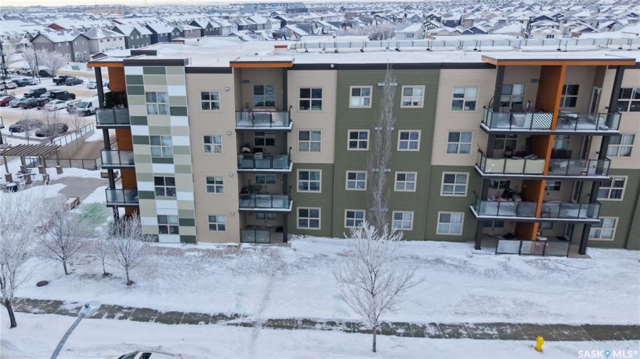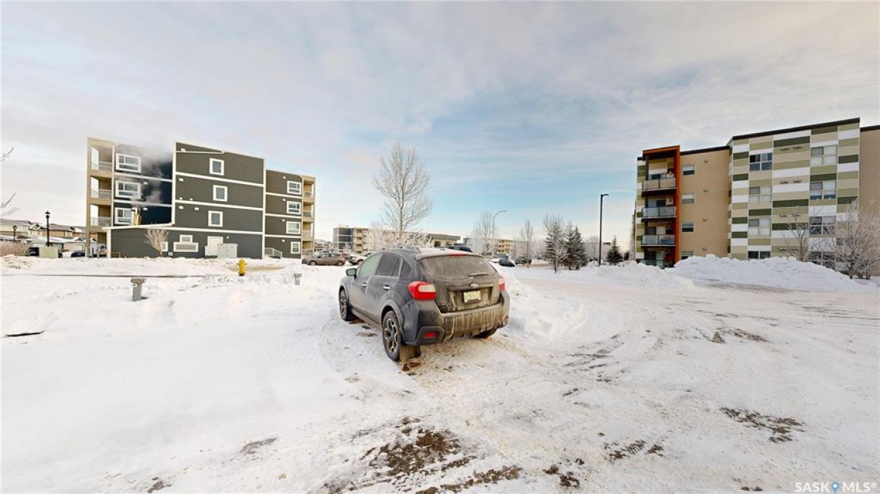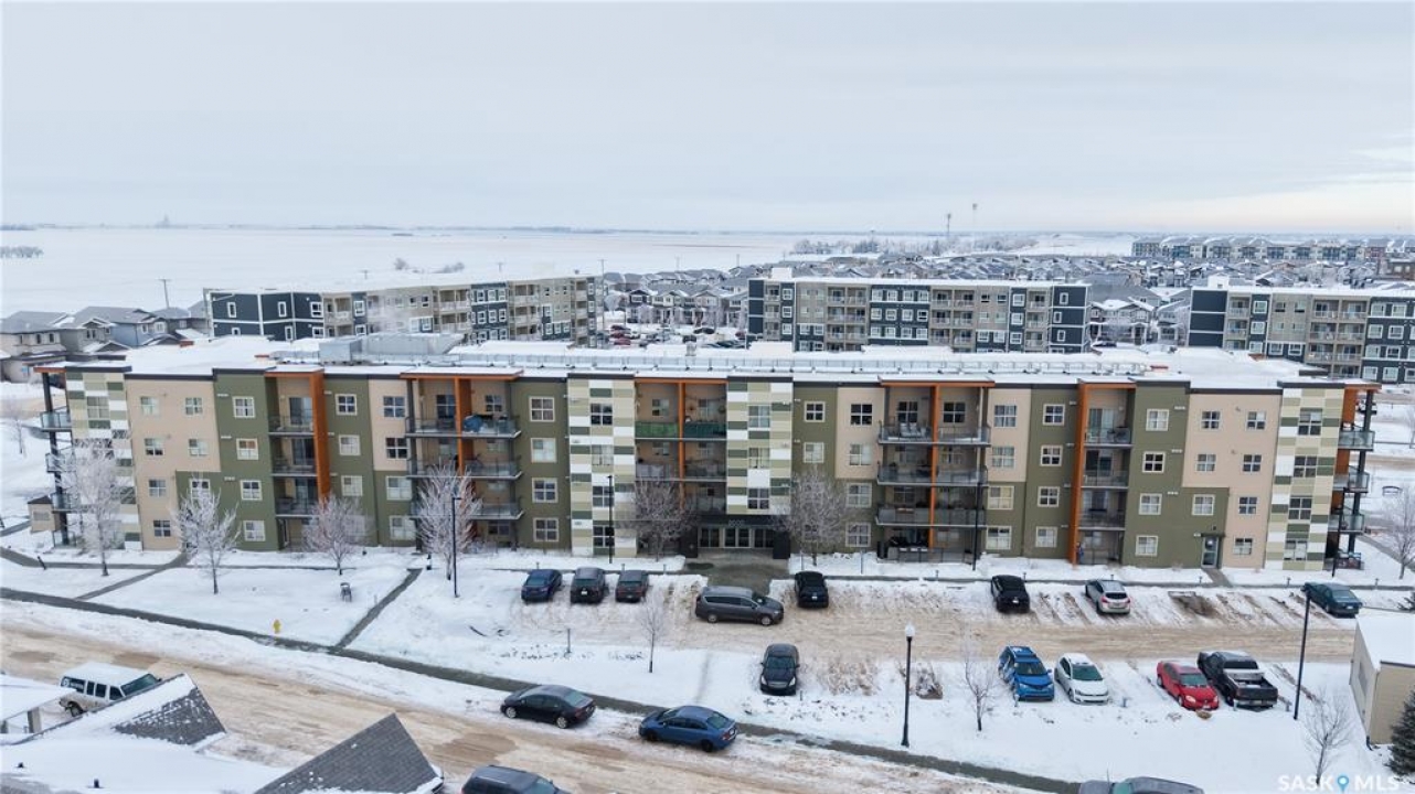 Welcome to unit 2115 at 5500 Mitchinson Way located in the highly convenient neighborhood of Harbour Landing where shopping, restaurants, parks, and everyday amenities are all just minutes from your door. This 2015 built, 812 square foot, 2 bedroom 2 bathroom plus a den apartment style condo is on the main level of the building making it wheelchair accessible. You enter the suite into the foyer with a coat closet. The kitchen features tile flooring and includes the stainless steel fridge, stove, microwave hood fan and dishwasher. The living room has a bright north facing window and access to your private patio. There is ample street parking here as well making this another great entrance to your home. All of the vinyl plank flooring in this suite is brand new! The primary bedroom has closet space and a 4 piece ensuite bathroom. The second bedroom is next followed by the main 4 piece bathroom. Finishing off the unit is a den that makes a wonderful office or storage space and your in-suite laundry with included washer and dryer is tucked neatly behind a door just outside the den! The condo fees are $519 a month and include common insurance, sewer, common area maintenance, exterior building maintenance, snow removal, lawn care, water, garbage, heat and reserve fund. You also have two personal parking spaces. One outside in the parking lot and one underground!