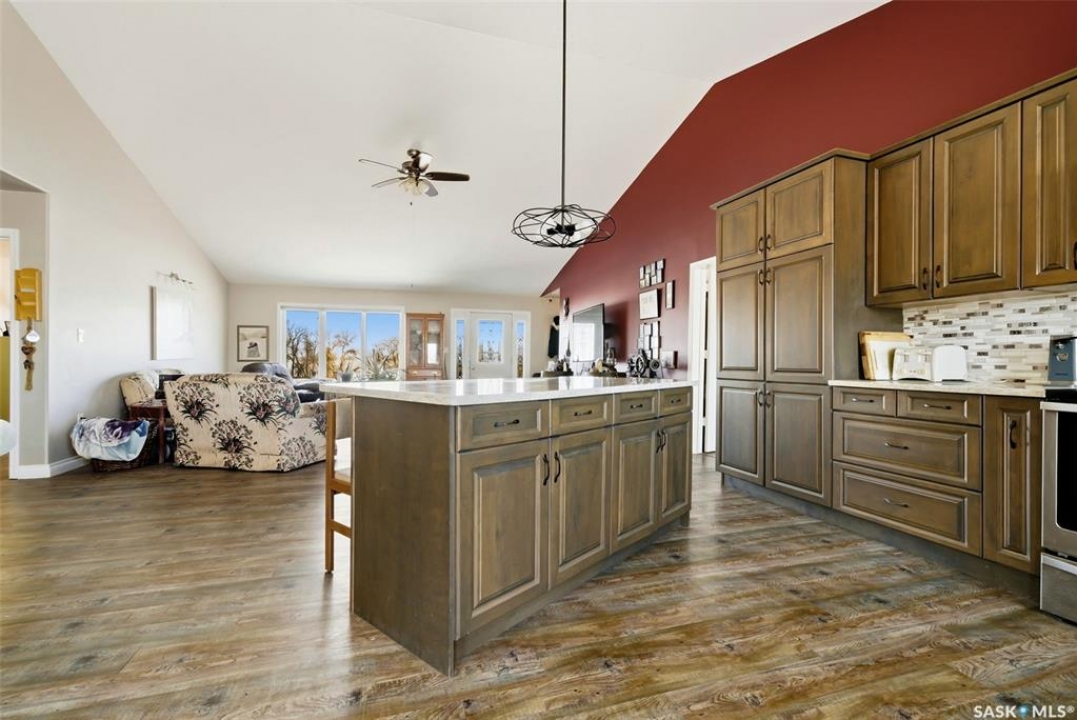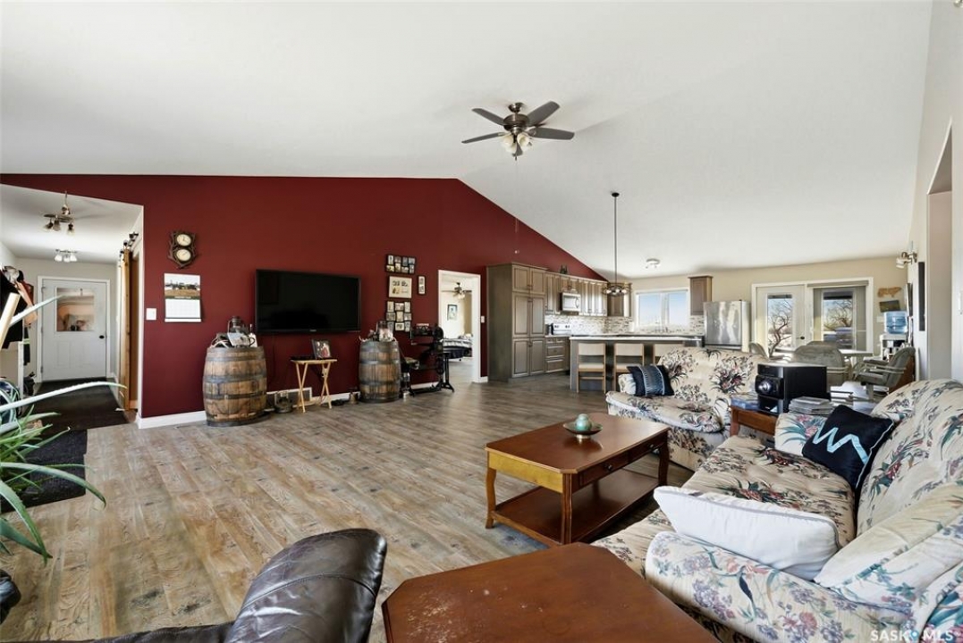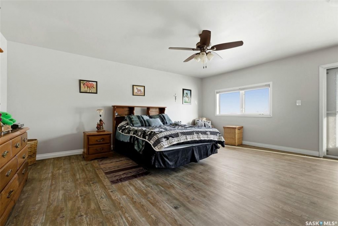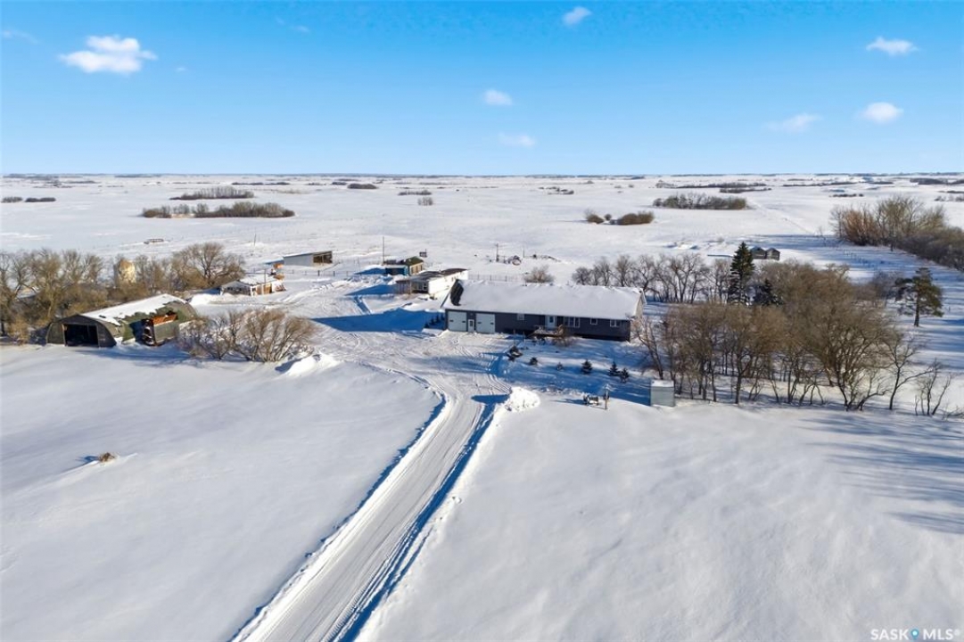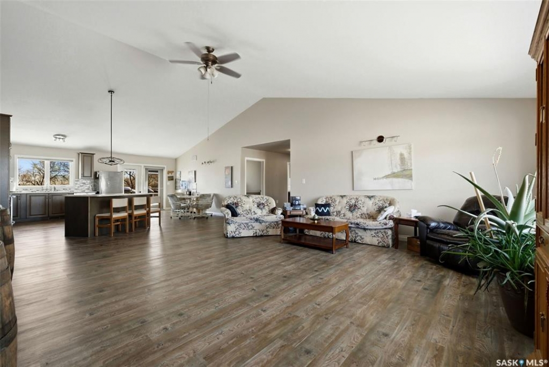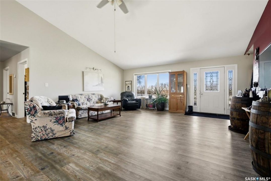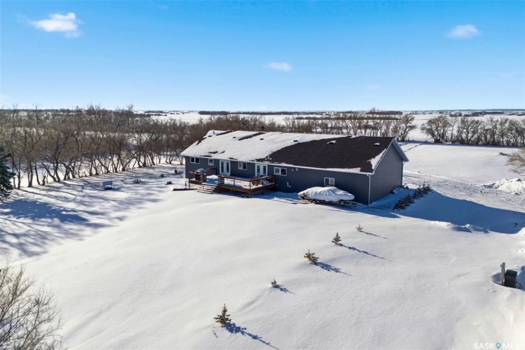 Welcome to this impressive 2,400 sq. ft. bungalow on 24.95 acres in the RM of Longlaketon, offering peaceful prairie living with convenient access to Southey, Strasbourg, & Raymore. Built in 2014 & proudly owned by the original owner, this home offers space, functionality, & endless potential. A large, welcoming foyer leads directly to the 30' x 40' attached heated garage featuring oversized doors, perfect for trucks, toys, or workshop space. Inside, the home boasts a wide-open layout with soaring vaulted ceilings & large windows that flood the space with natural light. The spacious living room easily accommodates a dream sectional and large TV, flowing seamlessly into the kitchen complete with a large eat-up island, ample cabinetry, & stainless steel appliances. The adjacent dining area features doors opening onto a large back deck, where you can enjoy sweeping prairie views. The MASSIVE primary bedroom offers outstanding potential & has a walk-in closet, private en-suite, & direct access to the back deck. The opposite wing of the home includes a large laundry room, den/office, two additional bedrooms, & a 4-pc bathroom—an ideal layout for families. The partially finished basement is already framed, drywalled, painted, & equipped with a drop ceiling. It includes an additional bedroom, bathroom roughed-in & started, & a huge rec/family room with space for more bedrooms if desired. The oversized mechanical room offers abundant storage & has high ceilings, making it an excellent candidate for a home gym or golf simulator. Outside, the property includes older outbuildings & some corrals, providing a great foundation for a hobby farm. A mobile home on the property is currently rented as a mortgage helper, adding extra value. The land is fenced & ready for new owners to make it their own. With school bus routes available, a central location between welcoming communities, and wide-open space to enjoy, this is a rare acreage opportunity.