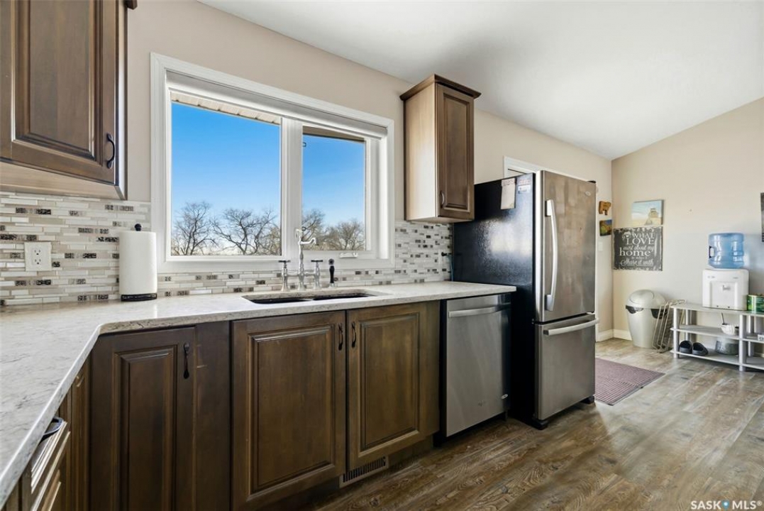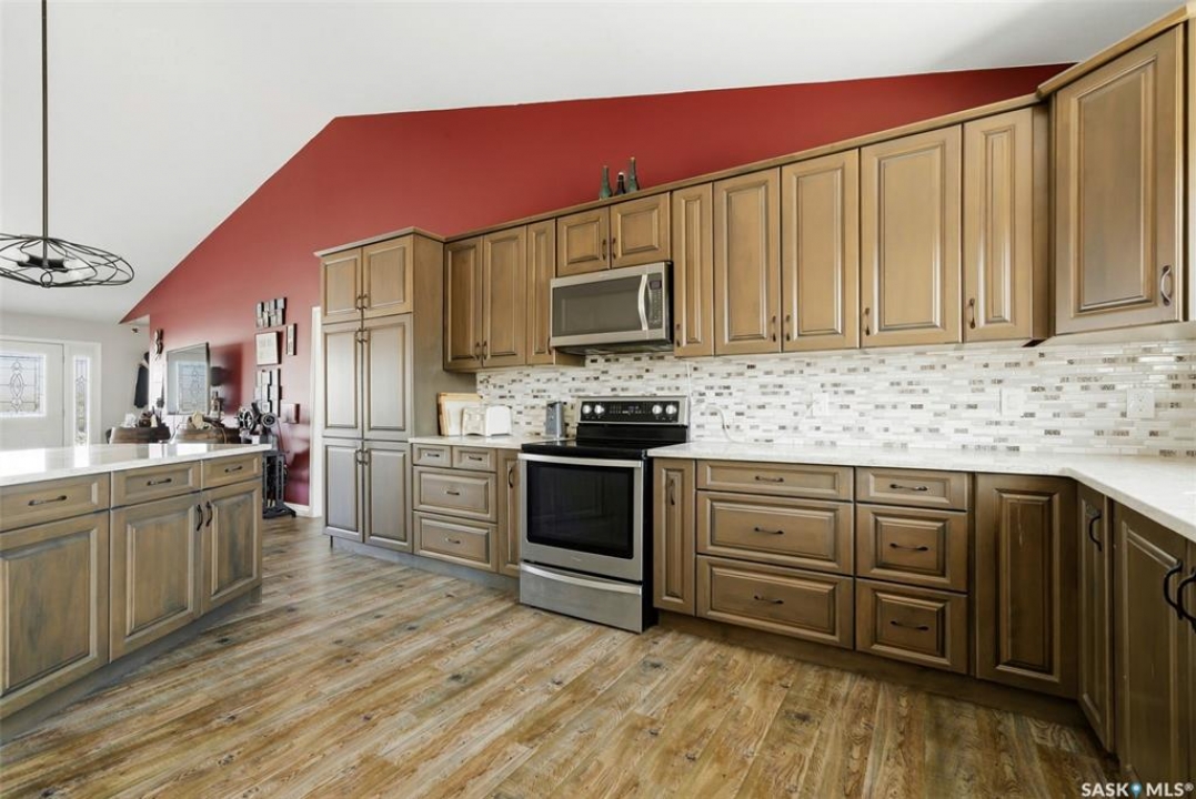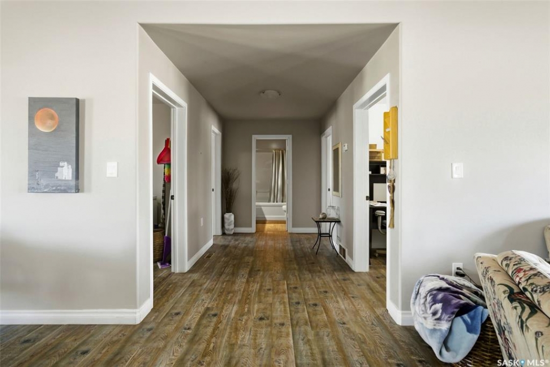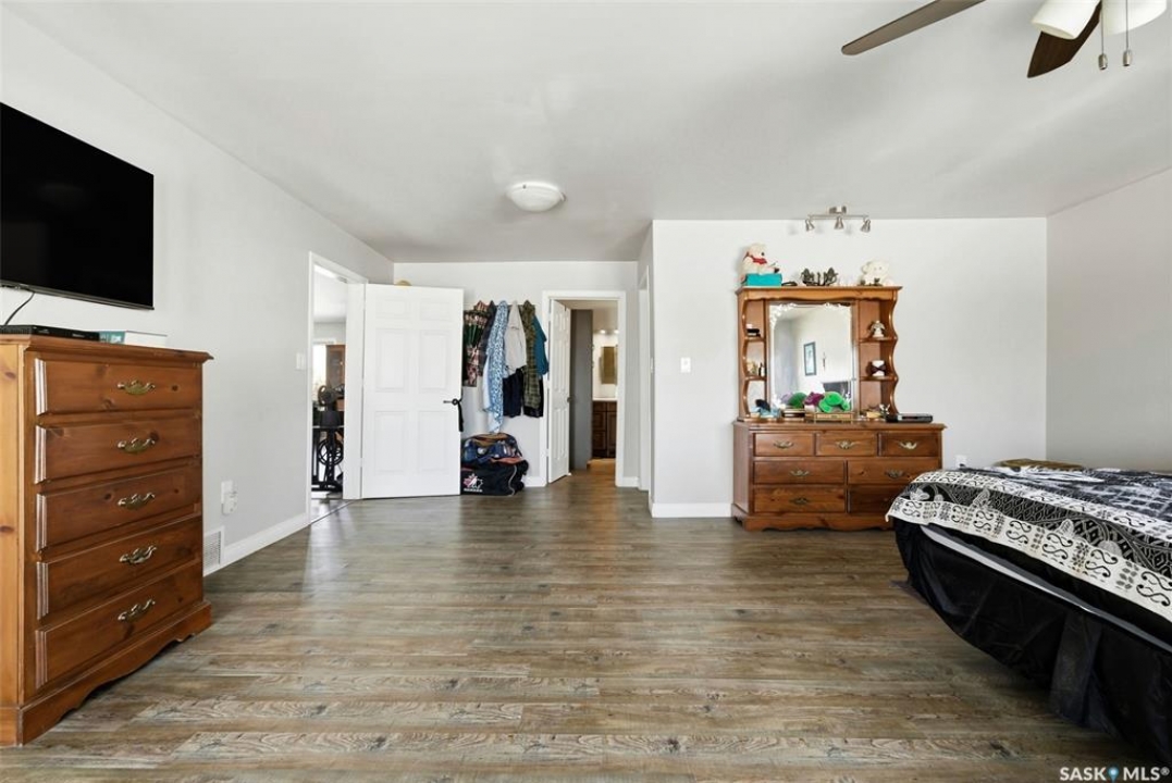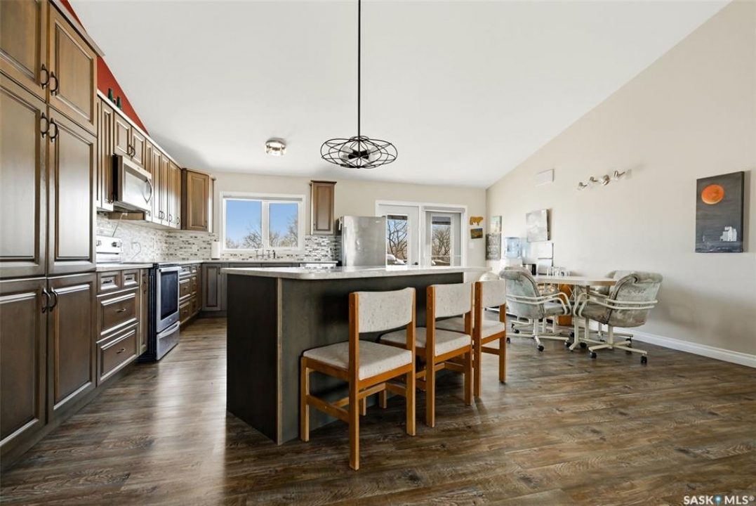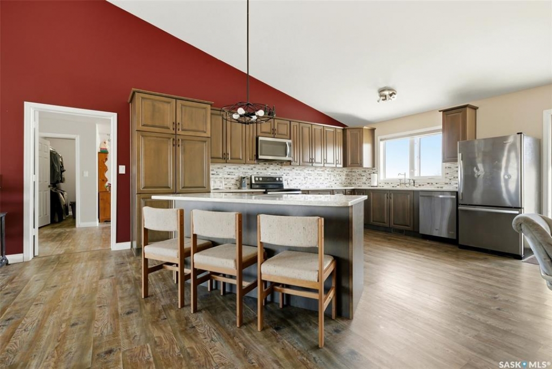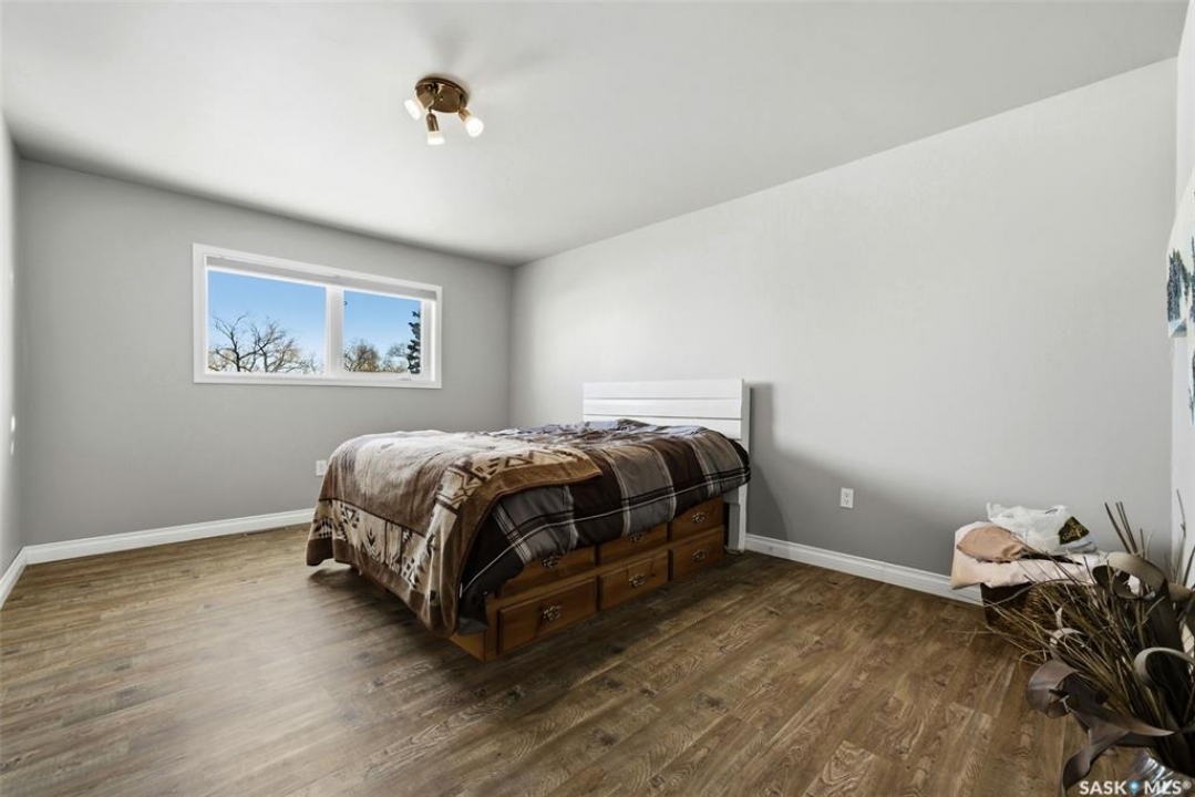 Welcome to this impressive 2,400 sq. ft. bungalow on 24.95 acres in the RM of Longlaketon, offering peaceful prairie living with convenient access to Southey, Strasbourg, & Raymore. Built in 2014 & proudly owned by the original owner, this home offers space, functionality, & endless potential. A large, welcoming foyer leads directly to the 30' x 40' attached heated garage featuring oversized doors, perfect for trucks, toys, or workshop space. Inside, the home boasts a wide-open layout with soaring vaulted ceilings & large windows that flood the space with natural light. The spacious living room easily accommodates a dream sectional and large TV, flowing seamlessly into the kitchen complete with a large eat-up island, ample cabinetry, & stainless steel appliances. The adjacent dining area features doors opening onto a large back deck, where you can enjoy sweeping prairie views. The MASSIVE primary bedroom offers outstanding potential & has a walk-in closet, private en-suite, & direct access to the back deck. The opposite wing of the home includes a large laundry room, den/office, two additional bedrooms, & a 4-pc bathroom—an ideal layout for families. The partially finished basement is already framed, drywalled, painted, & equipped with a drop ceiling. It includes an additional bedroom, bathroom roughed-in & started, & a huge rec/family room with space for more bedrooms if desired. The oversized mechanical room offers abundant storage & has high ceilings, making it an excellent candidate for a home gym or golf simulator. Outside, the property includes older outbuildings & some corrals, providing a great foundation for a hobby farm. A mobile home on the property is currently rented as a mortgage helper, adding extra value. The land is fenced & ready for new owners to make it their own. With school bus routes available, a central location between welcoming communities, and wide-open space to enjoy, this is a rare acreage opportunity.