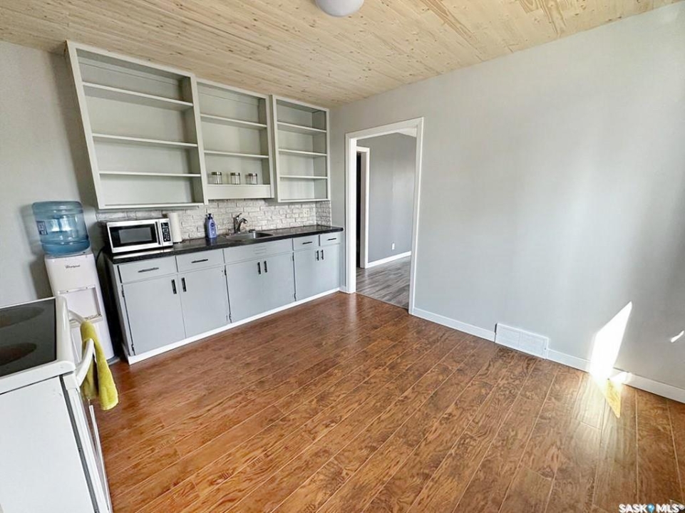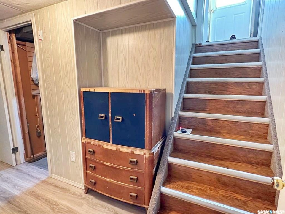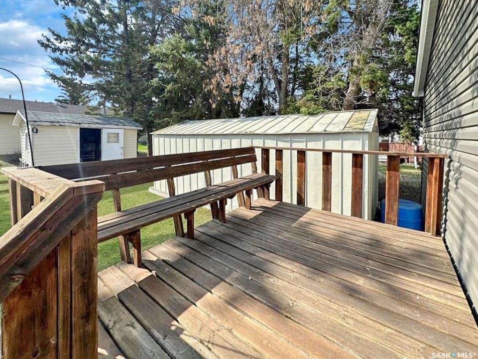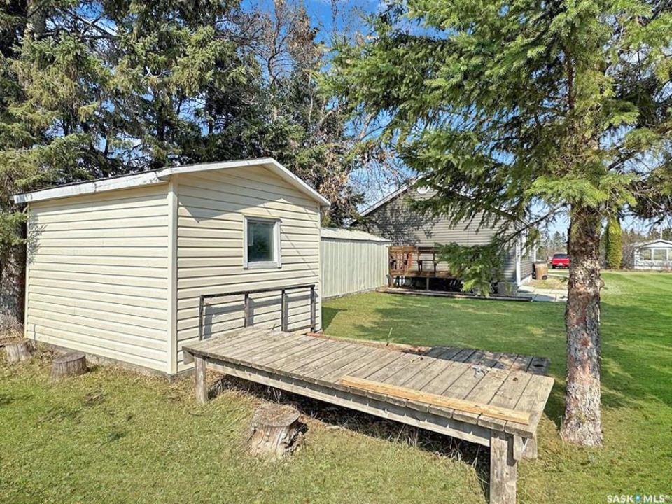 Quiet, affordable small-town living in Meath Park. This updated 4-bedroom, 2-bath home offers a practical layout and great value. The main level features a bright kitchen and dining area, a spacious living room, two comfortable bedrooms, and a full 4-piece bath. The basement level adds two more bedrooms, a 3-piece bath, family room, laundry, and utility space. Situated on a corner lot with newer front and back decks, this home has seen extensive updates in recent years, including vinyl siding, shingles, soffits, fascia, eavestroughs, windows, flooring, light fixtures, backsplash, and hot water heater. Meath Park is a small town located a quick 25 minute drive from Prince Albert on the way to lake country. Meath Park has a K-12 school, Credit Union, Post Office, bar and small store. Worth checking out....this might be #yourhappyplace.