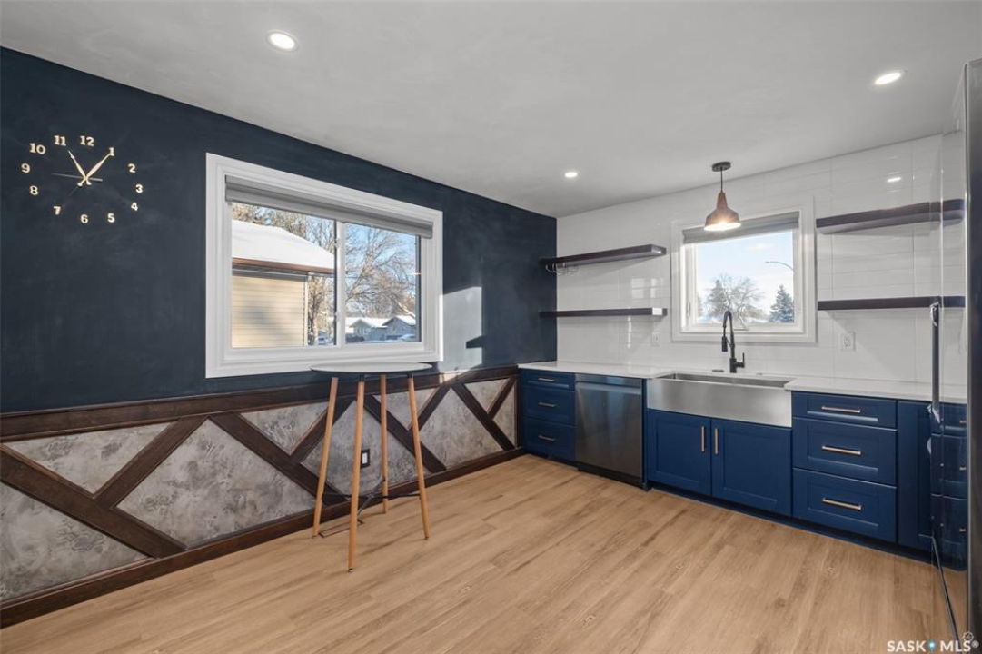 This stunning turn key home is completely renovated and showcases high quality finishes, venetian plaster throughout and striking accent walls that elevate the design from top to bottom. The main floor welcomes you with a bright living room highlighted by a large picture window that fills the space with natural light. The modern eat in kitchen is thoughtfully designed with quartz countertops, a white tile backsplash, open shelving, a venetian plaster range hood, a pot filler above the stovetop and a spacious walk in pantry. The primary bedroom includes dual closets and a chic 2 piece ensuite, while a second bedroom and a versatile den offer flexibility, with the den easily convertible into a third bedroom. Completing the main level is a beautifully finished 4 piece bathroom with a microcement tub surround and flooring, a vessel sink, a live edge wood vanity and a convenient toe kick drawer. The fully developed lower level continues the home's impressive design with a custom built in laundry area and wet bar complete with butcher block countertops, white tile backsplash and a mini fridge. A large family room provides the perfect space for relaxing or entertaining, complemented by two spacious bedrooms and a stylish 3 piece bathroom featuring a walk in shower with a microcement surround and a quartz topped vanity. Enjoy a partially fenced yard with mature trees and shrubs, a patio with a gas BBQ hookup and a concrete driveway. A single heated detached garage adds everyday convenience. The home is also equipped with central air conditioning to ensure year round comfort. Ideally located in the Riverview neighbourhood close to parks, schools and everyday amenities, this exceptional home offers modern design, quality craftsmanship and a great location. Book your showing today.