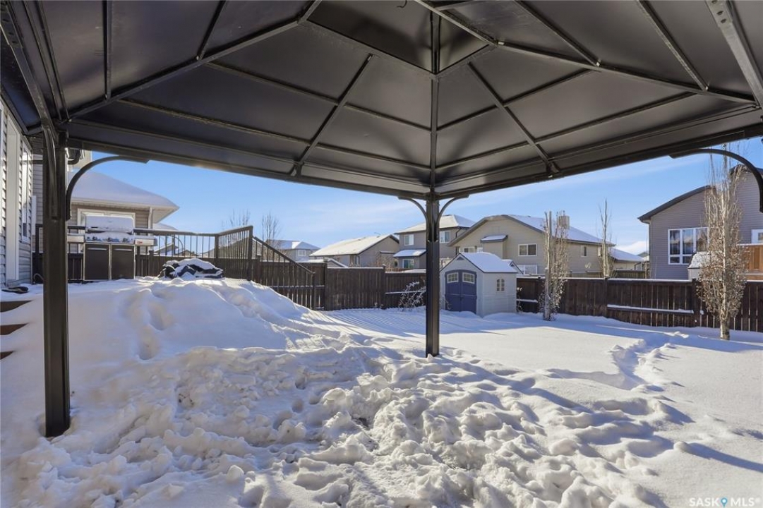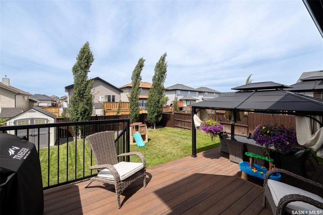 Welcome to 819 Korol Way in Hampton Village—an original-owner, 2012-built two-storey that offers the space, functionality, and turnkey comfort today's buyers are looking for. With 4 bedrooms and 4 bathrooms, a fully developed basement, and a double attached heated garage, this home checks all the boxes for growing families and busy professionals alike. The main floor is bright and inviting with a practical front foyer, convenient powder room, and an open-concept layout that makes everyday living easy. Large windows bring in natural light, while the living room flows effortlessly into the dining area which is ideal for entertaining. The kitchen features rich cabinetry, plenty of prep space, and stainless steel appliances, with direct access to the backyard for seamless indoor/outdoor living. Upstairs you'll find three bedrooms, including a comfortable primary suite complete with a walk-in closet and private ensuite. Two additional bedrooms and a full bathroom complete the upper level, creating a smart layout that keeps everyone close while still offering privacy. The fully finished basement adds excellent versatility with a spacious family room for movie nights or game days, a fourth bedroom that works perfectly as a guest room, home office, or workout space, plus another full bathroom. The utility/laundry area offers added storage and keeps things organized. Step outside to enjoy a fully fenced backyard with a raised composite deck, gazebo, and a storage shed which is perfect for summer BBQs, relaxing evenings, and keeping seasonal items tucked away. The attached garage is fully finished with a natural gas unit heater and includes great storage solutions for bikes, tools, and toys. Located close to parks, schools, shopping, and all the conveniences of Hampton Village, with quick access to major routes. Move-in ready with neutral finishes and a floor plan that simply works. Possession available March 1st, come take a look!