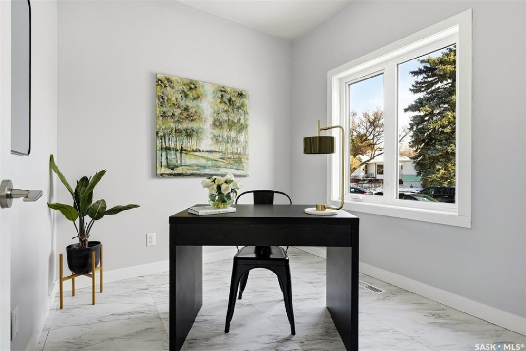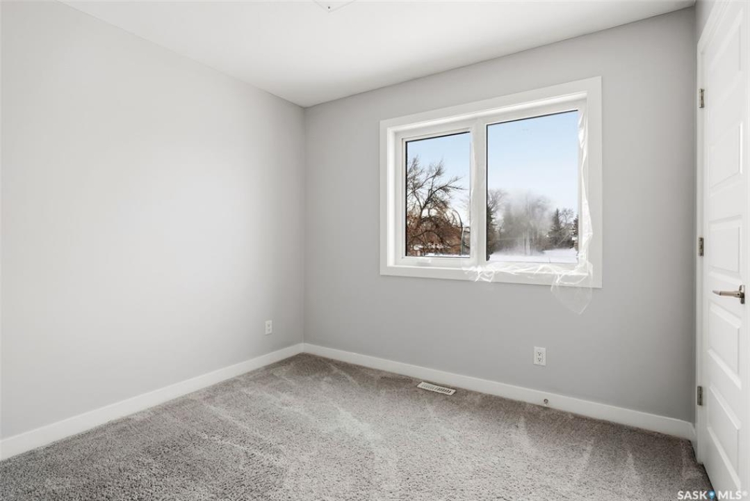 Welcome to this thoughtfully designed 2017 Alair Homes infill, ideally situated on a quiet, tree-lined street in the heart of Cathedral. This two-storey home offers 3 bedrooms, 3 bathrooms, and a functional layout well suited to modern living. The main floor features 9-foot ceilings, a dedicated office, a convenient 2-piece bath, and an inviting open-concept design. The kitchen is both stylish and practical, showcasing beautiful cabinetry, quartz countertops, a peninsula island, corner pantry, and stainless steel appliances, all seamlessly connected to the dining and living areas. The living room is anchored by a gas fireplace, creating a warm and welcoming space. Upstairs, you'll find three spacious bedrooms, including the primary suite with a large walk-in closet and a well-appointed ensuite featuring a separate shower and soaker tub. A second full bathroom and upstairs laundry add everyday convenience, with 9-foot ceilings continuing throughout the second level. The basement is insulated and ready for development, offering high ceilings, large windows, and a truss floor system, meaning no bulkheads to limit future design options. Notably, the separate back door entrance provides direct access to the basement, creating excellent potential for a future basement suite, ideal as a mortgage helper or additional income opportunity (buyer to verify zoning and approvals). Additional highlights include triple-pane windows, a high-efficiency furnace, central air conditioning, and a poured double garage pad with alley access. Both the front and back yards are designed for zero maintenance, featuring artificial turf, mulched landscaping, and established rhubarb, raspberry, and strawberry plants.