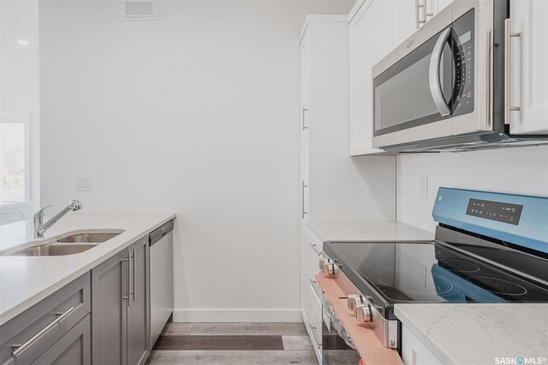 Last unit available! 2 bedroom unit. Open concept plan. Quartz counter tops, stainless steel appliances, laminate flooring. Laundry on 2nd floor. Comes with one electrified parking stall. Optimist Park outside your door. Condo fees $208. Pictures are of a different unit at the same complex.