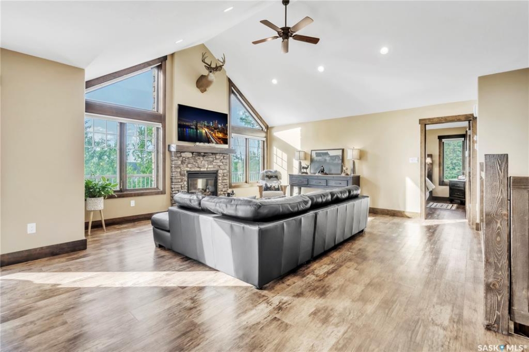 Luxurious 2,200 sq. ft. year-round home in Laumans Landing at Lac des Îles Lake, offering panoramic lake views and a bright open-concept layout. This exquisite 4-bedroom, 3-bathroom residence features vaulted ceilings, vinyl plank flooring throughout, a gourmet kitchen with a spacious butler's pantry, and a natural gas fireplace. The main-level primary suite includes a spa-like ensuite, while the fully developed walkout basement offers a private entrance, three additional bedrooms, a full bathroom, a comfortable family room, heated floors throughout, and ample storage. Year-round comfort is ensured with hot water on demand (supplied by the subdivision's reverse osmosis system), air conditioning, and a 15 kW auto-transfer Generac generator. Outdoor living shines with a 12' x 24' screened-in area with electrical and water, overlooking a seating area with a built-in rock fireplace, plus over 500 sq. ft. of Duradek decking. Built to last with Hardie Board siding and 50-year Malarkey shingles, the property also includes a 24' x 30' detached garage and storage shed, with the adjacent lot available for added privacy. Enjoy easy access to the boat launch and community playground, just 5 minutes from Northern Meadows 18-hole Golf Course, all within Meadow Lake Provincial Park—ideal for fishing Northern Pike, Walleye, Yellow Perch, and Whitefish. Conveniently located approximately 2 hours north of Lloydminster, 4 hours north of Saskatoon, and 3 hours and 45 minutes northeast of Edmonton.