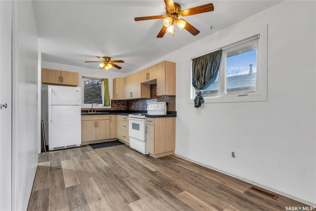 This bungalow is a perfect fit for first time buyers or growing families. The main floor has a spacious floor plan with a bright living room which is open to the kitchen and dining area, three bedrooms and a full bathroom. The living room has a large newer window for lots of natural light. The kitchen has newer cabinets and counter tops, a pantry and a spacious dining area. The lower level offers lots of potential with some development started for a family room, games area, laundry space, and workshop. Many upgrades including newer windows, exterior doors, high efficient furnace, on-demand water heater, added insulation, newer flooring and paint. A large mature fully fenced yard with a patio area, and a newer front concrete driveway. Alley access to the yard for extra parking or future garage. Close to schools, parks, and easy access to all conveniences!