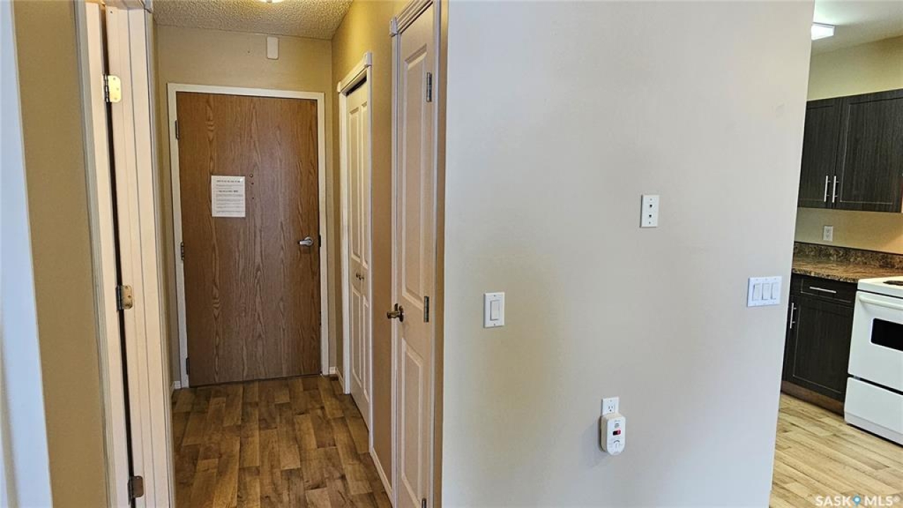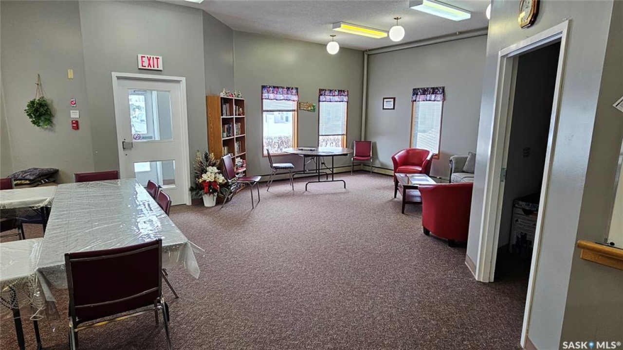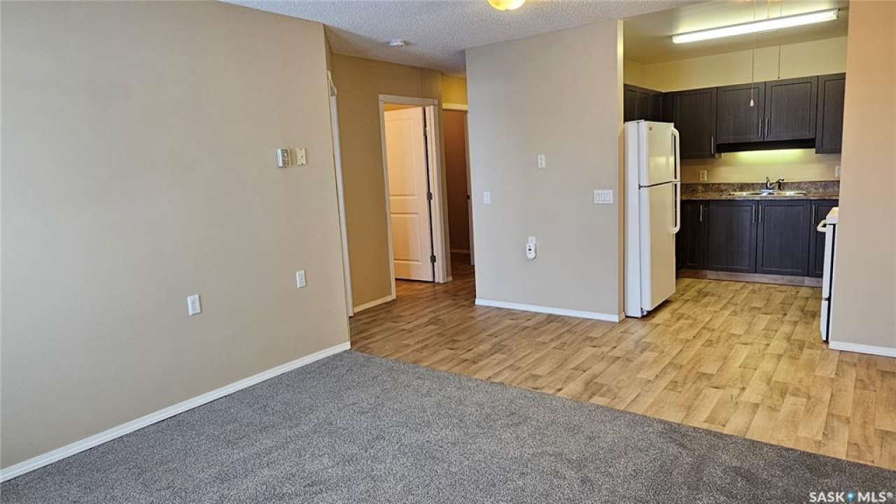 #103 Kinsmen Court, Humboldt. Affordable 55+ condo offering 595 sq. ft. of comfortable, low-maintenance living. This east-facing 1-bedroom, 1-bath unit overlooks the courtyard and is in great condition with new carpet and an updated kitchen. Functional layout includes a 4-piece bathroom and a convenient in-suite storage room. The building is wheelchair accessible and features two amenities rooms, complimentary shared laundry, and one electrified parking stall. Vacant and ready for quick possession. Ideal for downsizers or anyone seeking quiet, affordable living in a well-managed building.