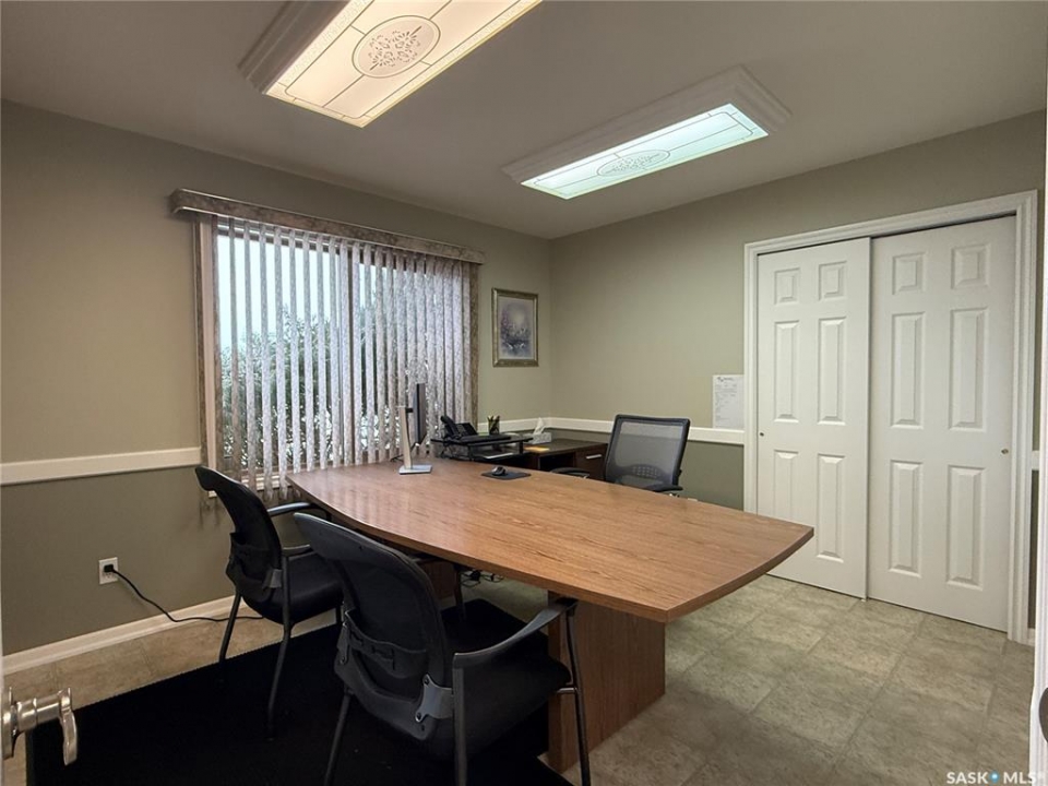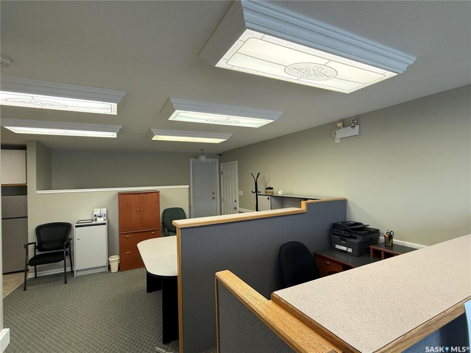 Available for immediate rent, this prime office space total 1358 sqft on 2 levels. Features 3 pvt offices spaces, 4 cubical office spaces, a reception area, kitchenette, 2 baths, comes with 7 parking stalls, and is suitable for a variety of office uses, making it a perfect opportunity for entry-level to mid-sized office complex. Previously operated as Accounting firm for many yrs. Exterior signage space on front pedestal available. Lease is gross lease inclusive of all operating costs and utilities includes snow removal + GST. Located in Martensville North commercial district.
