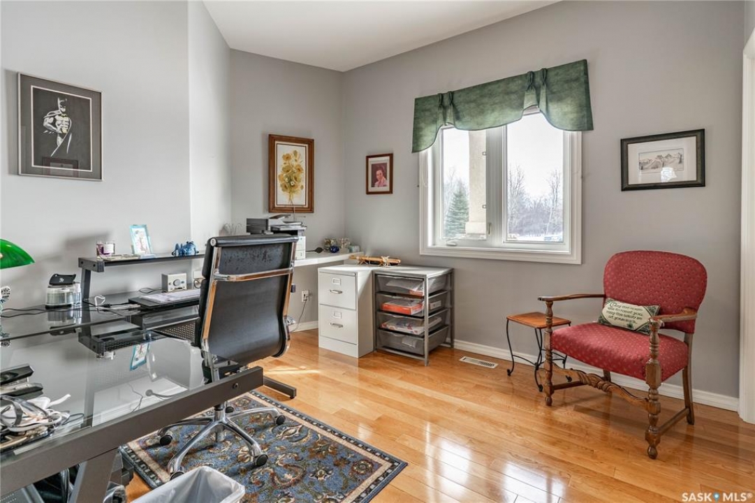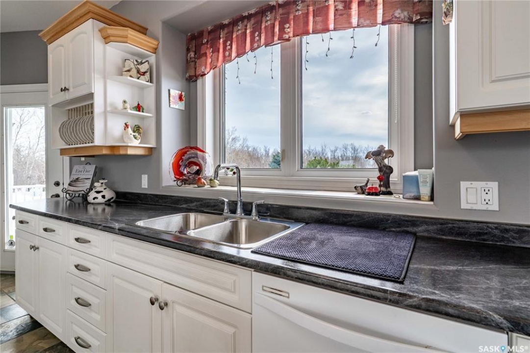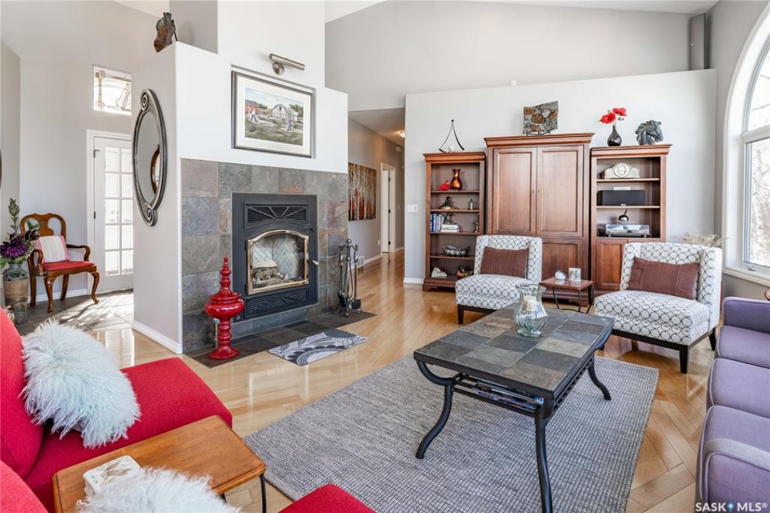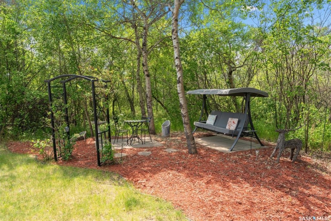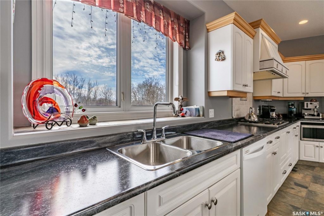 Welcome to The Meadow, 80 acres of pure serenity on the southeast doorstep of Saskatoon. This peaceful paradise offers the privacy and tranquility of country living, just minutes from Costco and Greenbryre Golf & Country Club. This sprawling, custom-built Ehrenburg bungalow is designed for comfort, beauty, and connection to the nature. The grand front entry welcomes you with soaring vaulted ceilings and a sweeping sense of space. The centerpiece of the great room is a stunning wood-burning fireplace, creating a warm, inviting atmosphere enhanced by floor-to-ceiling windows that frame breathtaking views of the wilderness waiting for you out your back door. White oak hardwood gleams throughout the main floor, paired with slate tile in the foyer and kitchen. The spacious kitchen features a large 8-foot granite island, gas stove, built in oven, ample cupboard space, and easy flow into a turret-shaped sun porch—perfect for morning coffee or sunny, lazy afternoons. This south-facing gem is flooded with natural light and designed to make the most of every season. The main floor also includes laundry, three well-appointed bathrooms, and three bedrooms. The primary bedroom offers a peaceful retreat, complete with a three-piece ensuite and a private turret-shaped sunroom for year-round quiet moments of rest and reflection. Additional features include a heated double attached garage and a wide single detached garage with shower and bathroom facilities—an ideal workshop with ample space for storage and tons of room for any project. The full basement is ready for your custom development, with in-floor heating lines already roughed in. Whether you're looking to raise a family, escape the city, or simply enjoy life in harmony with nature, The Meadow delivers the best of all worlds—privacy, space, and proximity to everything you need. Must be experienced to be fully appreciated. Call your favourite Realtor � to arrange a private viewing today!