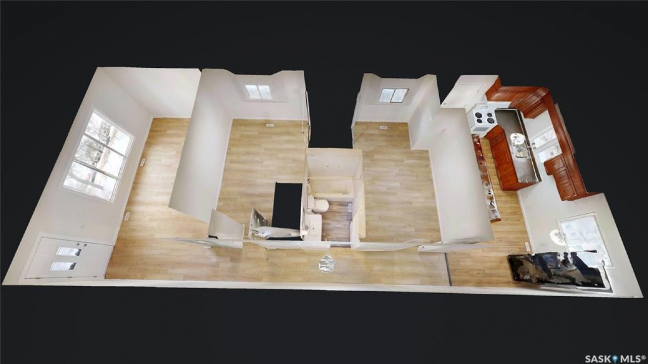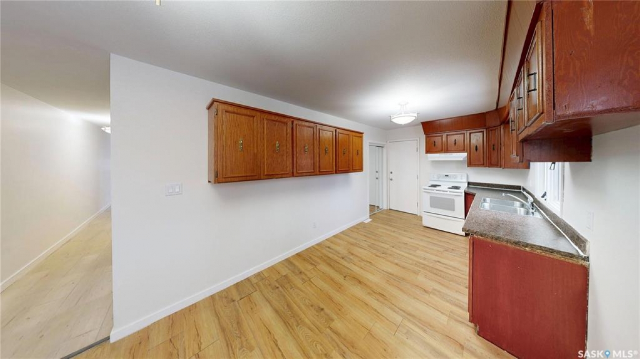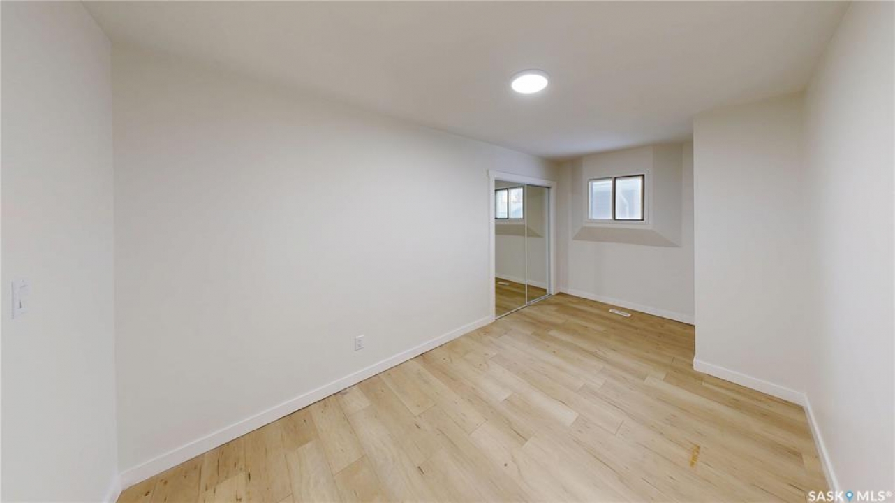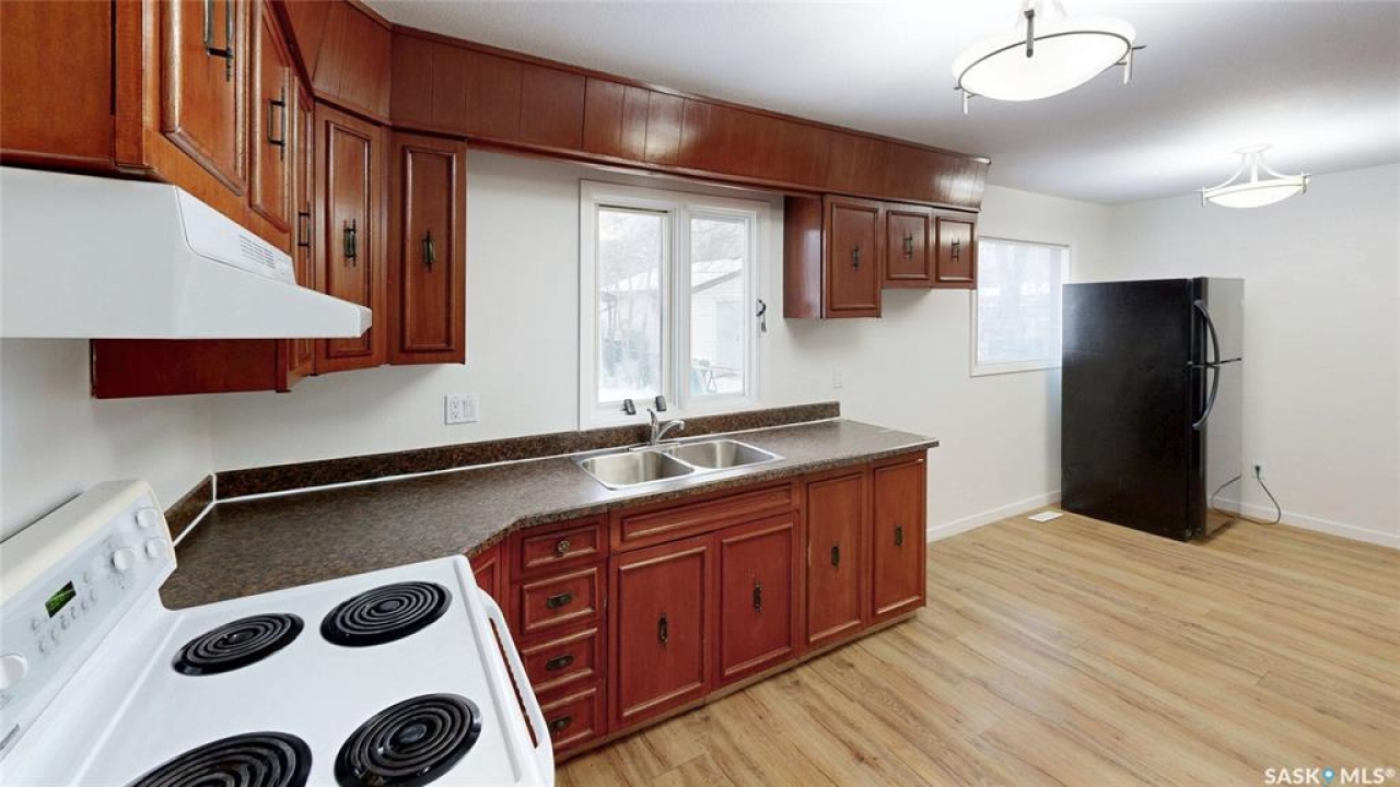 Welcome to 2130 Atkinson Street in the highly convenient Borders Annex neighborhood. This desirable location is just moments away from the General Hospital, St. Augustine and Arcola Elementary Schools, the public library, the Al Ritchie Outdoor Spray Park, and a variety of parks, shops, and essential amenities. This 1916 built, 900 square foot, 2 bedroom 1 bathroom bungalow sits on a 25 x 125 rectangular lot backing a lane. The front yard has a lawn and large trees. The brick finish on the front of the house makes it unique. The fully fenced backyard also has a lawn and trees and access to the single detached garage! You enter the home into the living room with a bright east facing window and modern vinyl plank flooring. The entire home has been freshly painted and is move in ready! The first bedroom has a spacious closet! The 4 piece bathroom is next followed by the large primary bedroom. The dine-in kitchen finished off the main floor with plenty of cupboard space, access to the back yard and the fridge and stove are included! The partial basement is where you'll find the included washer, dryer, furnace and gas water heater!