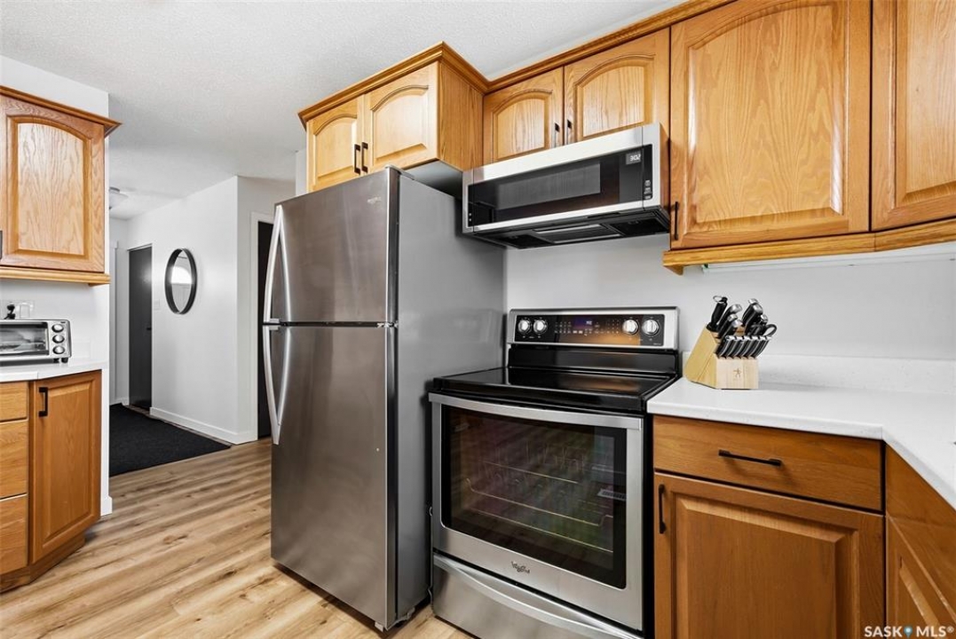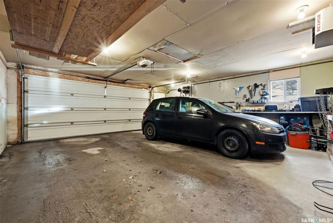 Welcome to this standout, lovingly maintained bungalow tucked away on a quiet crescent in Regina's desirable East End! Pride of ownership is obvious from the moment you pull up. The clean concrete driveway and patio set the tone for a home that's been thoughtfully cared for over the years, and the large double detached heated garage is the kind of feature you'll appreciate year-round for parking, projects, and extra storage. Step inside to a classic bungalow layout that feels instantly comfortable, with an inviting L-shaped living and dining area that's perfect for relaxing evenings or hosting family and friends. The timeless oak kitchen has been refreshed with new hardware and comes fully equipped with stainless steel fridge and stove, plus a built-in dishwasher and microwave-ready for move-in day. Down the hall, you'll find a beautiful 4-piece main bathroom, and a generous primary bedroom with plenty of space for larger furniture and a convenient 2-piece ensuite. The fully developed basement adds even more room to spread out, featuring a large recreation area complete with built-in oak cabinetry and a wet bar-ideal for movie nights, game day, or entertaining. A cozy den with a natural gas fireplace offers the perfect spot to for hobbies, and it connects directly to a 3-piece bathroom-great for guests or extended family. Finishing the lower level is a practical laundry/utility room, along with key mechanical upgrades including an owned water heater (2025) and a high-efficiency furnace (2021) for added peace of mind. Out back, enjoy a fully fenced yard-perfect for kids, pets, and summer get-togethers plus a handy shed for seasonal items and outdoor storage, while keeping your tools and gear organized in the heated garage. This home is an absolute pleasure to show and offers exceptional value in a fantastic East End location!