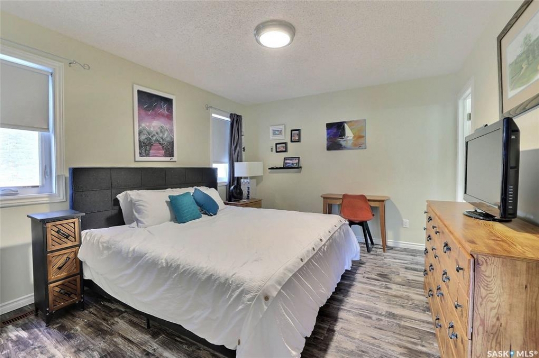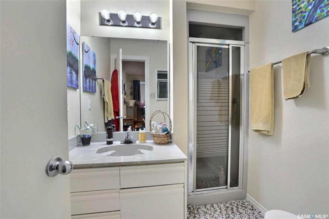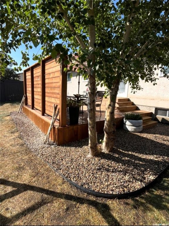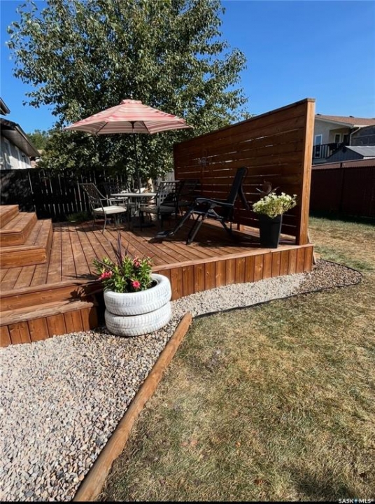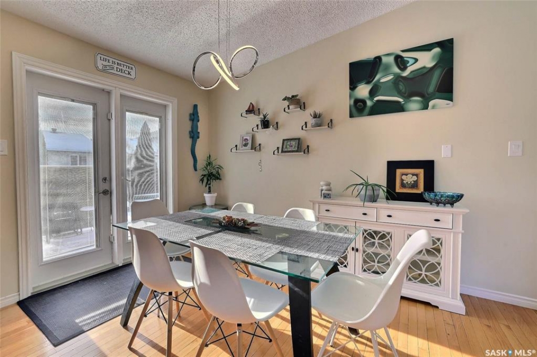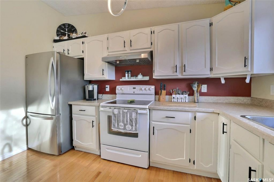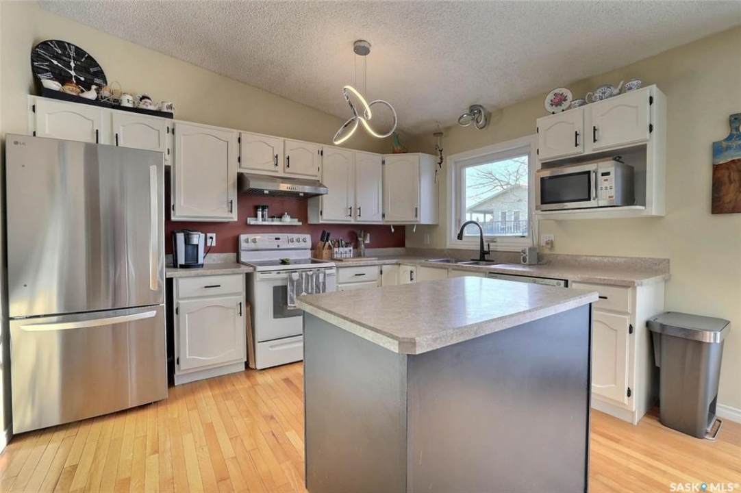 Welcome to this beautiful 3-bedroom, 2-bath bungalow offering 1,200 sq. ft. of comfortable living space in the desirable Lakewood neighborhood. Fabulously located within walking distance to park, schools, and green spaces! Step inside to a bright and inviting living room featuring vaulted ceilings, a cozy wood-burning fireplace, and warm hardwood floors that flow seamlessly into the kitchen and dining area. The kitchen/dining space opens through garden doors to a spacious deck, perfect for summer BBQs and relaxing evenings outdoors. The primary bedroom is generously sized, complete with a 3-piece en suite for your convenience. Two additional bedrooms on the main level provide plenty of room for family, guests, or a home office. Downstairs, the fully finished basement offers a large, versatile space ideal for entertaining, games, or a home theater setup. Outside, enjoy a beautifully landscaped backyard with a firepit area—great for gathering with friends and family. The double attached garage adds extra comfort and convenience. View of Lakewood park from back deck and within 1/2 block walking distance. Tons of upgrades to this property, some of which include but not limited to: 2021; shingles, main floor painted, back chain link fence installed, kitchen cabinet and island refinished/new hardware, main floor new baseboards and trim, main floor and basement doors refinished and new hardware. 2022: trellis installed, front down spout relocated, fence and exterior house repainted, new deck, main floor electrical switches and outlets. 2023; new dryer, bedroom new vinyl plank flooring, main floor lighting throughout. 2024: water filtration system, gravel landscaping-firepit area (benches installed) gravel added to side house and front (between properties). 2025: new fridge, bedroom 2 vinyl plank flooring, primary bedroom vinyl plank flooring. main bath cabinet and mirror refinished, main bath repainted and new baseboard and trim.