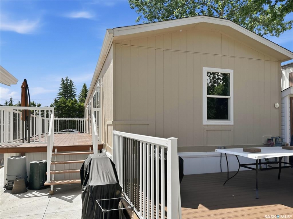 Year-Round Lake Life at Bayview Heights! Discover your perfect escape in Battleford's Provincial Park—just steps from the public beach! This fully renovated, turn-key property offers all the perks of lake living without the hassle of waterfront upkeep. Inside, you'll find 2 cozy bedrooms, a full bathroom, laundry, and a beautiful solid oak kitchen overlooking the living room. Built with 2x6 construction, this home is well-insulated for year-round comfort and low utility costs. Everything you need is included—furnishings, TVs, dishes, cutlery, and more. Just bring your clothes and move in! The detached, heated, and insulated single garage adds extra convenience and is being upgraded with a 2-piece bath. The fully fenced yard is private and low maintenance, featuring a composite deck (no sanding or staining!), a wood shed, and a charming firepit area—perfect for relaxing evenings. A massive driveway offers plenty of parking, including space for RVs. Plus, there's a 220V plug and rear-lot RV dump for added convenience. Enjoy all the amenities of the park: a stunning beach, playground, and the nearby Jackfish Lodge with its 18-hole golf course and fantastic restaurant. Whether you're looking for a summer retreat or a winter getaway, this home has it all. Don't miss your chance to own a slice of paradise at Jackfish Lake—call today for a viewing!