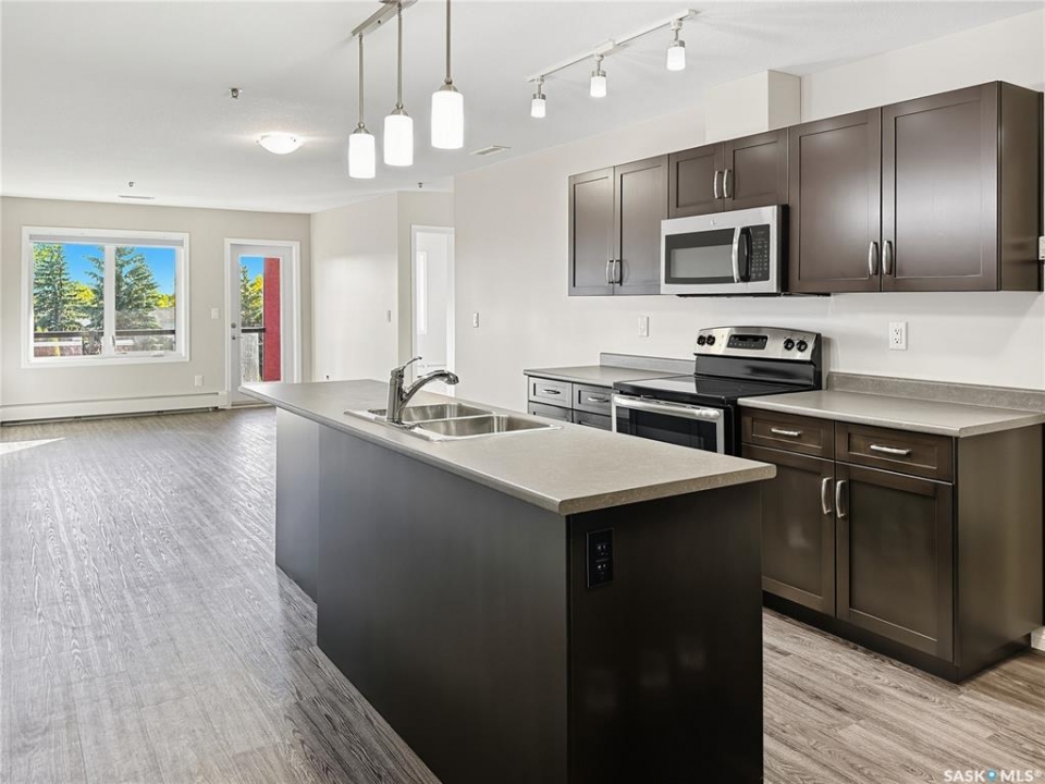 Welcome to Unit 304 at The Signature in Kildeer Park, a stunning condo offering over 1,000 sqft of modern, comfortable living. Built in 2015, this well-designed unit features 2 bedrooms and 2 bathrooms, making it an excellent option for a variety of buyers. The kitchen is the heart of the home, complete with a large island, ample storage, and a contemporary design that flows seamlessly into the dining and living areas. Patio doors open to your south-facing balcony, the perfect spot to relax and enjoy the sunshine. You'll love the neutral tones and vinyl plank flooring throughout, creating a warm and inviting space. Additional features include in-suite laundry and a heated underground parking stall. Enjoy the security, simplicity, and low-maintenance lifestyle that comes with condo living in one of Kildeer Park's premier buildings. Contact your agent today to book your private showing.