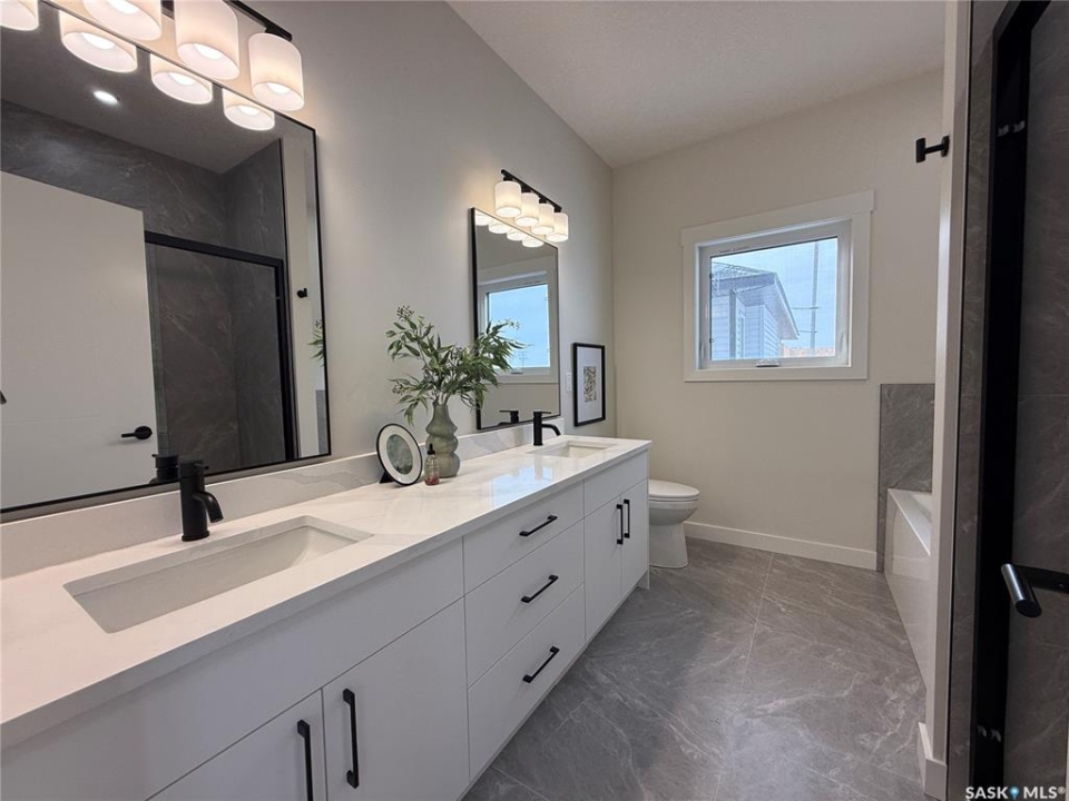 This stunning brand new 1,420 sq. ft. bi-level home in the City of Warman is an absolute must-see and is sure to impress from the moment you arrive. Thoughtfully built with care and precision by Taj Homes, this home showcases eye-catching curb appeal with modern white and black exterior accents that set it apart. Step inside to a bright and inviting open-concept layout featuring 9-foot ceilings, beautiful stained railing, oversized windows that flood the space with natural light, and a beautiful fireplace—creating the perfect setting for cozy evenings and entertaining alike. The modern kitchen is both stylish and functional, offering custom ceiling-height cabinetry, sleek quartz countertops, a large island with seating, and a convenient walk-in pantry for easy storage and everyday living. The spacious primary suite is a true retreat, complete with a striking feature wall, walk-in closet, and a luxurious 5-piece ensuite finished with elegant tile work. Two additional well-sized bedrooms with ample closet space, a 4-piece main bathroom, and a dedicated laundry room featuring cabinetry and quartz countertops complete the main floor layout. Additional upgrades include an on-demand water heater, high-efficiency furnace, triple-pane all-weather windows, full appliance package, Taiga Curate luxury vinyl plank flooring throughout, Delta shower trims, central air conditioning, and an insulated and drywalled garage. Outside, enjoy the added privacy of no rear neighbours, making the backyard the perfect space to relax, entertain, or enjoy peaceful views with a partially fenced yard already in place. This home is covered by Progressive New Home Warranty for added peace of mind. GST/PST is included with rebates back to the builder. Don't miss your opportunity to own a beautifully finished new home in one of Warman's most desirable locations—contact your favourite agent today to book your private showing! NOTE SOME PICTURES ARE VIRTUALLY STAGED