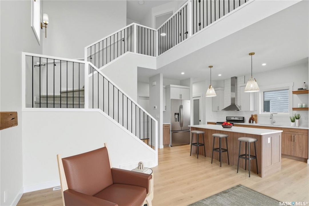 Welcome to the "Summit" Edgewater's newest plan in the desirable neighbourhood of Brighton. This 2 storey is sure to impress. Entering from the drywalled and insulated garage, you step into a mud room with a bench and hooks to store your outerwear. You continue through the walk through pantry into the spacious kitchen has lots of cabinets, quartz countertops and beautiful tiled backsplash. The island is 7' long with an eating ledge. Over sized patio doors in dining room. The living room has 18' ceilings, giving the home a very large presence and large windows in the living room create a spacious light filled area. The fireplace centers the room and finishes it nicely. On the second floor, the Primary bedroom includes a feature wall, the ensuite has double sinks in the vanity and a beautifully tiled shower and a stand alone tub. You will find 2 secondary bedrooms and a 4 piece bath as well. 2nd floor laundry completes this floor. All Pictures may not be exact representations of the home, to be used for reference purposes only. Errors and omissions excluded. Prices, plans, specifications subject to change without notice. All Edgewater homes are covered under the Saskatchewan New Home Warranty program. PST & GST included with rebate to builder.