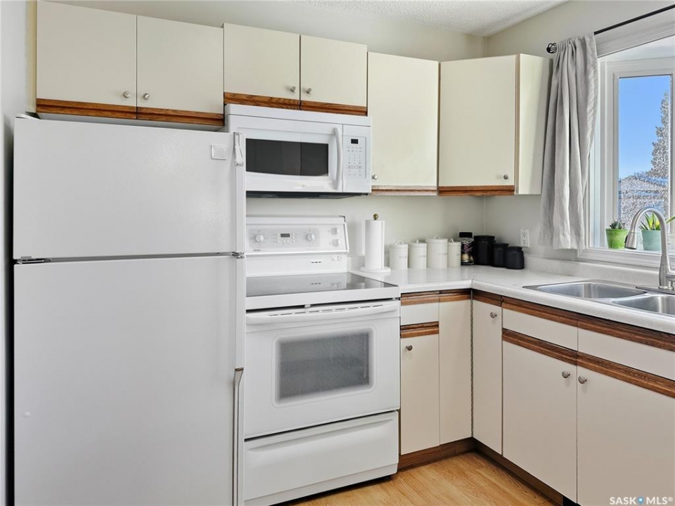 Welcome to this extremely well-maintained family home, perfectly located on a quiet, highly desirable street close to multiple schools, parks, and everyday amenities. Offering 1,172 sq. ft. of thoughtfully designed living space, this home is ideal for growing families or anyone looking for comfort and functionality. The main floor features 3 spacious bedrooms and a full 4-piece bathroom complete with a deep soaker tub and tiled surround—perfect for unwinding at the end of the day. The layout is fantastic, highlighted by a huge living room that easily becomes the heart of the home for family time and entertaining. Natural light pours in through the beautiful bay windows in the kitchen, dining room, and living room, creating a bright and welcoming atmosphere—ideal for plant lovers. Downstairs, you'll find a fourth bedroom with a legal egress-size window, plus roughed-in plumbing for an additional bathroom, offering excellent future potential. The basement has recently been refreshed with new flooring throughout, updated ceiling tiles, and new windows, making it feel clean and modern. Outside, the property continues to impress. Large trees have been removed, underground sprinklers have been added to both the front and back yards, and the massive backyard features updated fencing—perfect for kids, pets, or summer gatherings. A solid home in a prime location, lovingly cared for and move-in ready. This is one you won't want to miss.