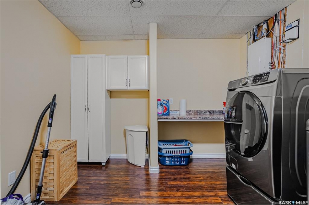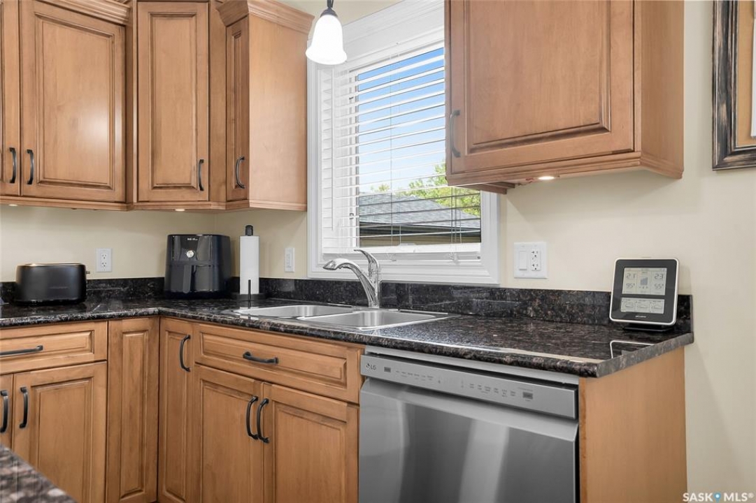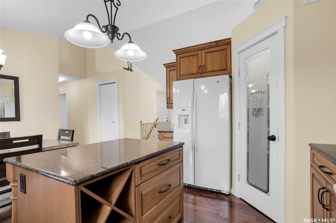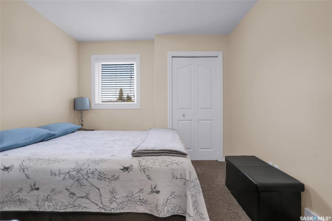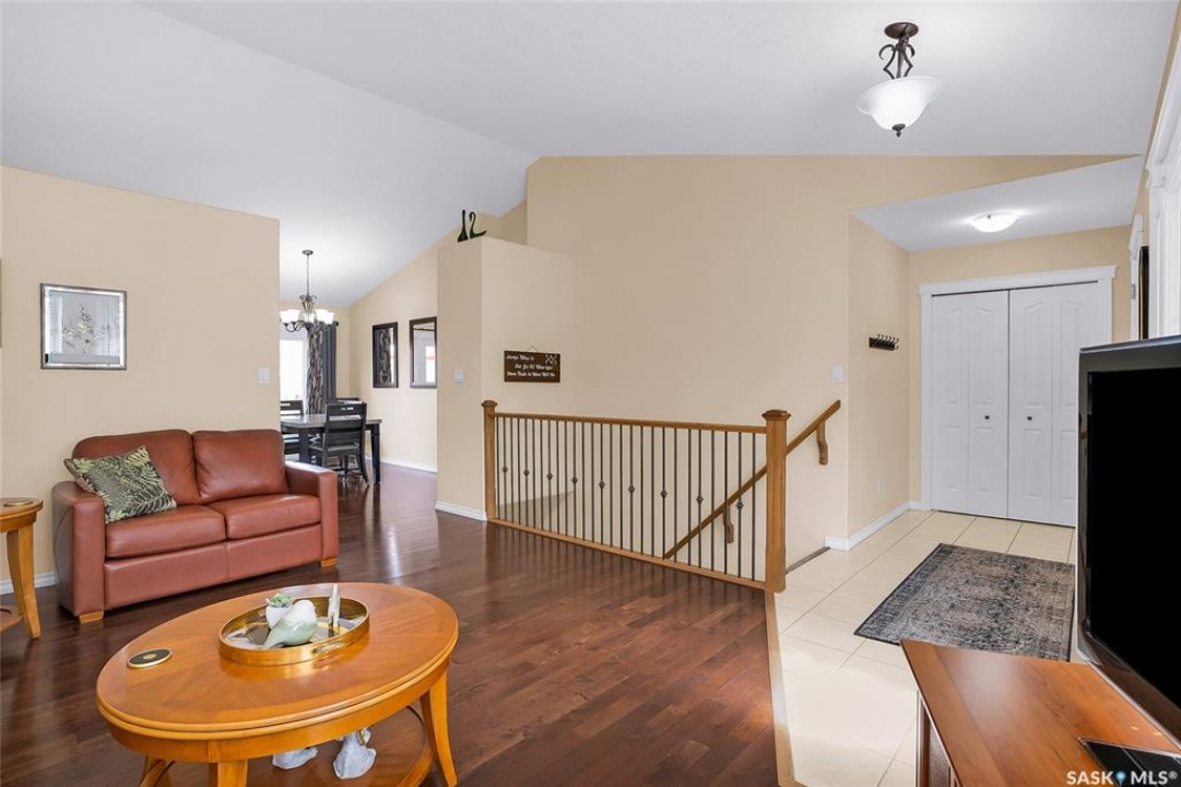 Stunning Executive Home Just 30 Minutes to Saskatoon! Discover luxury living in this absolutely gorgeous home where quality and craftsmanship are evident from the moment you arrive. Nestled on an oversized, fully landscaped 81.5 x 200-foot lot offering exceptional privacy, this property is a beauty. Step inside to vaulted ceilings and an open floor plan that seamlessly blends elegant living with everyday comfort. Beautiful hardwood floors flow throughout, while the kitchen showcases granite countertops and rich maple cabinetry. The thoughtfully designed layout includes three spacious bedrooms, with the primary suite featuring a 4-piece ensuite and generous walk-in closet. The open-concept basement expands your living space dramatically, boasting impressive 9-foot ceilings making you feel like you are not in a basement! Here you will find a games room, family room with electric fireplace, an oversized bedroom, large storage room, 3-piece bathroom, and laundry room with additional storage solutions. Entertain in style on the oversized deck, perfect for gatherings and quiet relaxation. Vehicle and storage enthusiasts will appreciate the exceptional 24x24/26-foot attached garage with 10-foot ceilings and 8-foot doors, PLUS a fully insulated 16x30-foot detached garage. New shingles 2025. Conveniently located near the school, park, and post office, this home offers the perfect blend of peaceful country living with easy access to urban amenities. This is more than a house, it's a lifestyle.