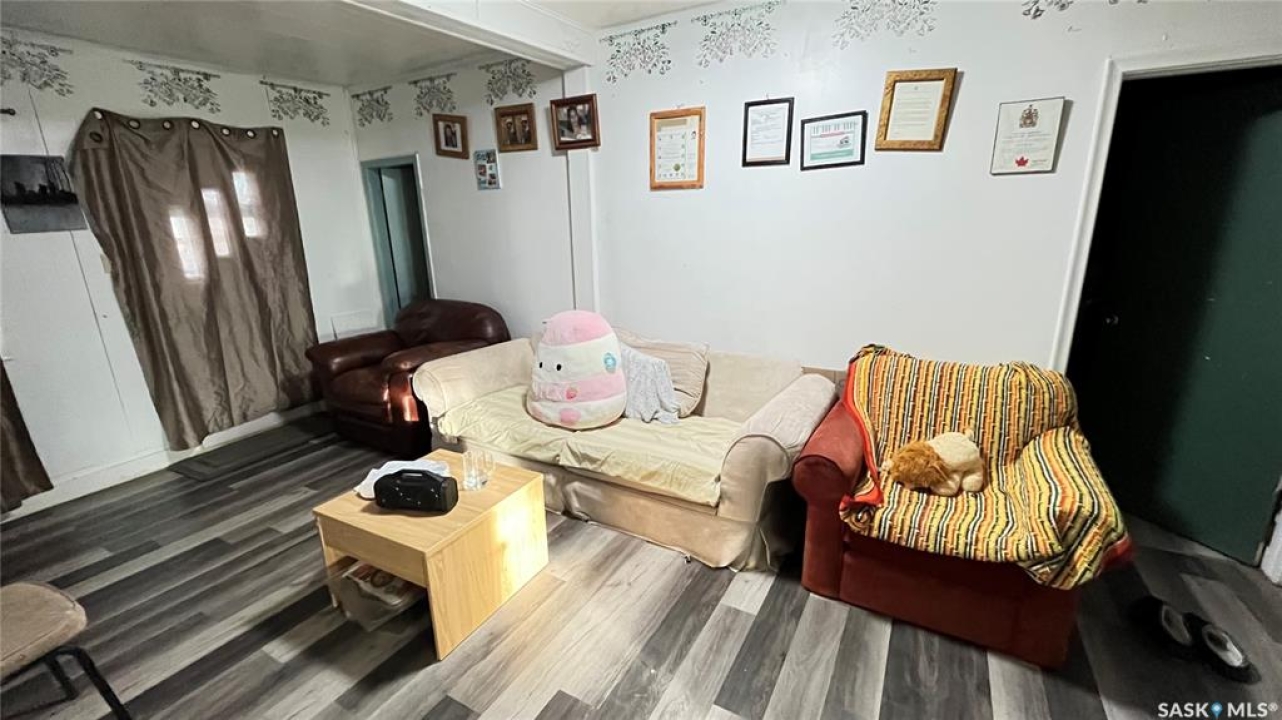 This delightful 4-bedroom, 1-bathroom home in Maple Creek's commercial district is sure to pleasantly surprise you. With updated floors and a spacious kitchen currently housing the laundry, you'll find plenty of potential to reimagine the space—whether by creating a dedicated laundry room or expanding the bathroom to include laundry facilities. Easy access to plumbing from the approximate 6.5 foot crawl space another bathroom could be added as well. The generous yard features two garages that, with some TLC, could become great assets. Zoned commercial yet grandfathered as a residential non-conforming property, this home offers unique flexibility and is perfectly situated just steps from the grocery store and local shopping amenities. Stop paying rent and buy this affordable starter home or open your own business with 21 highway exposure. Opportunities are endless. Call for a tour.