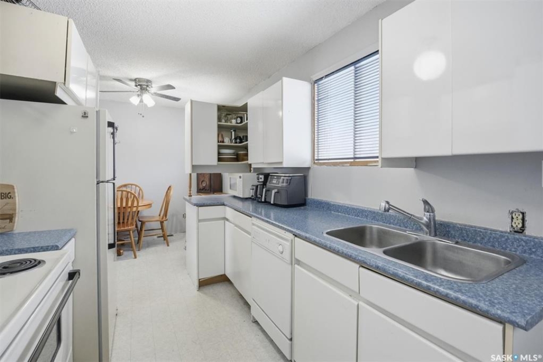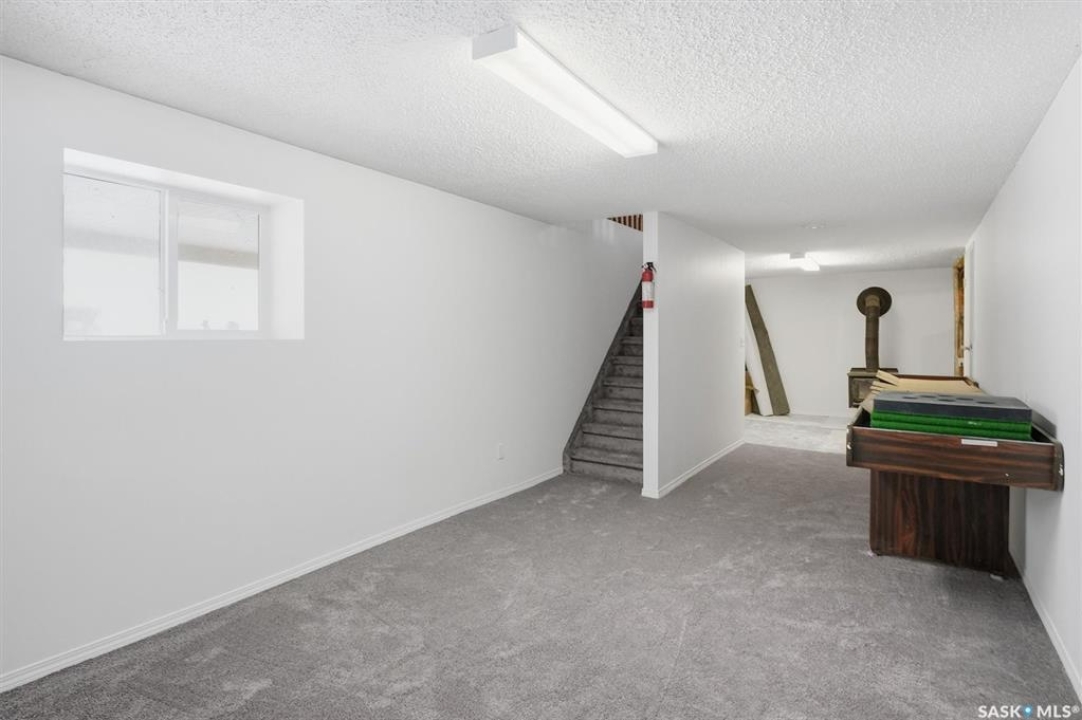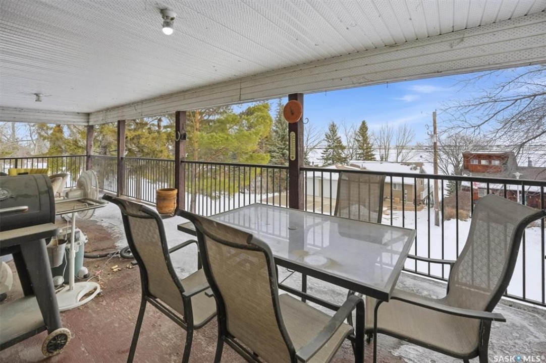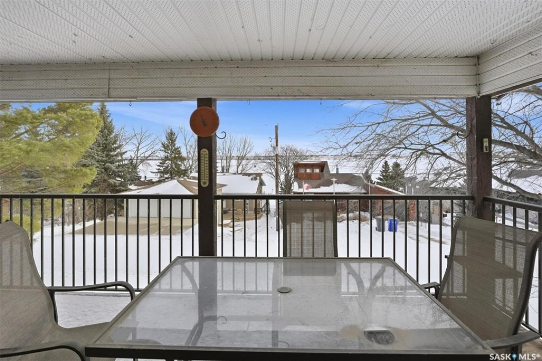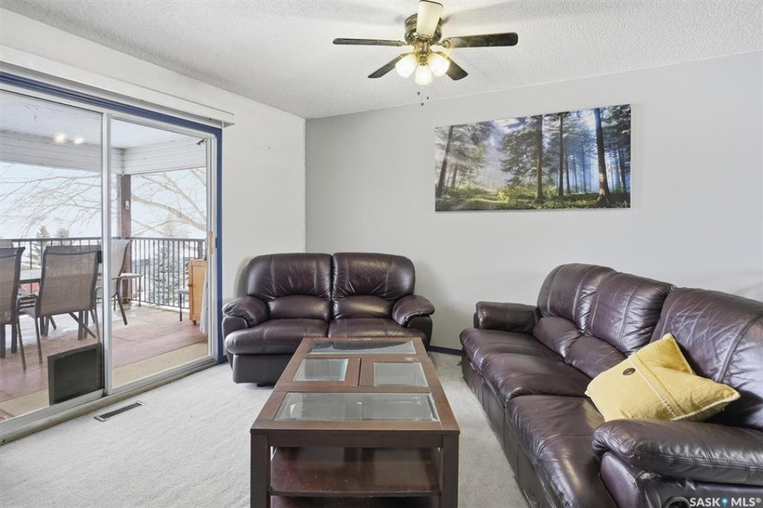 Welcome to 48 Procter Drive, located in the charming Resort Village of Shields at Blackstrap. This beautiful four-season home offers stunning lake views from its spacious 36' x 11' covered balcony, complete with updated railing — the perfect spot to relax or entertain. Inside, the main level features three comfortable bedrooms and a full four-piece bathroom. The cozy living room boasts a wood-burning fireplace and patio doors leading out to the deck, creating a warm and inviting atmosphere. The galley-style kitchen offers ample cabinetry and includes all appliances for your convenience. The lower level features a walkout with double doors to a covered patio, brand new carpet in the rec room, and an updated two-piece bathroom with a shower rough-in for future completion. The large utility room/laundry room has tons of room for additional storage. Recent upgrades include a new furnace (2025) and hot water heater (2023), making this home move-in ready and efficiently updated. Please note: the wood stove in the lower level is not included.