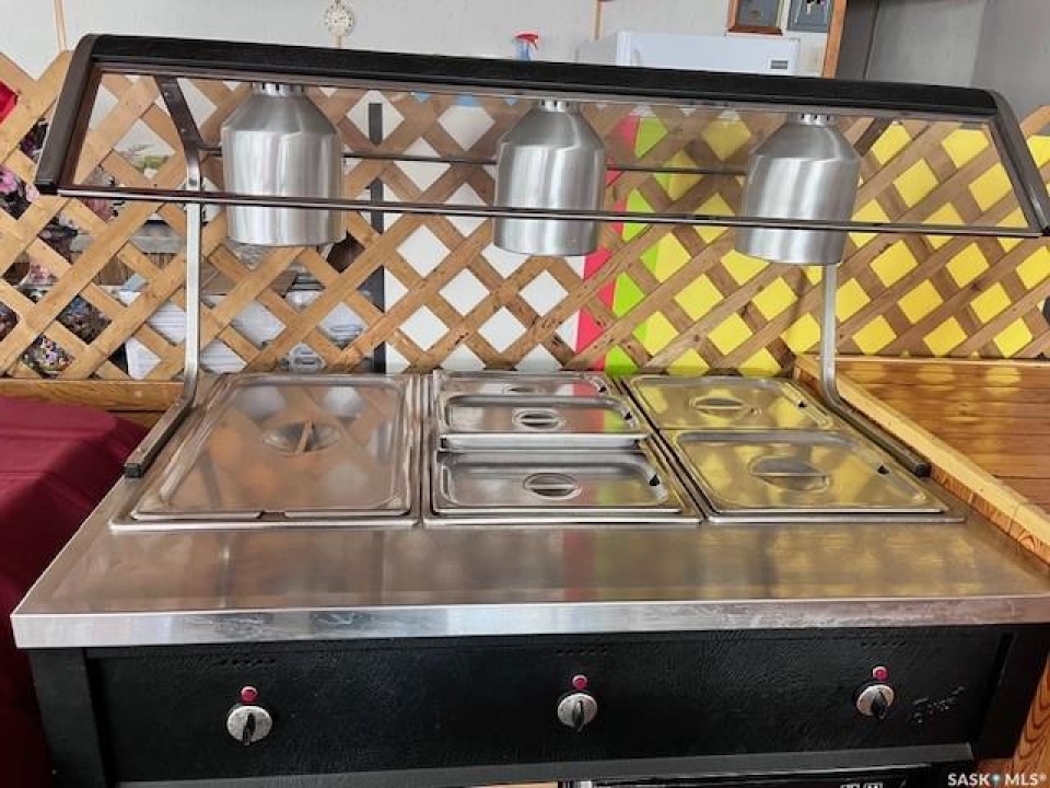 KEN'S RESTAURANT. This turn key family owed business is well known in Kinistino and surrounding area. Included in the sale is the land, buildings,attachements, fixtures, equipment,counters, appliances, plus the dishes and cutlery. The inventory to be negotiated at the time of the sale. The roof was reshingled in Seot of 2025 and the electrical panel was upgraded to a 200 amo service. The purchaser can open the day after taking possession. There is room to park 2 cars in the attaced garage. There are two A/C units in the restaurant and 4 in the back. An affordable way to be your own boss. Kinistino is a progressive family community with K to grade 12 school, skating arena, public library, Affinity Credit Union. Co-op grocery store, Hotel and other assorted businesses.