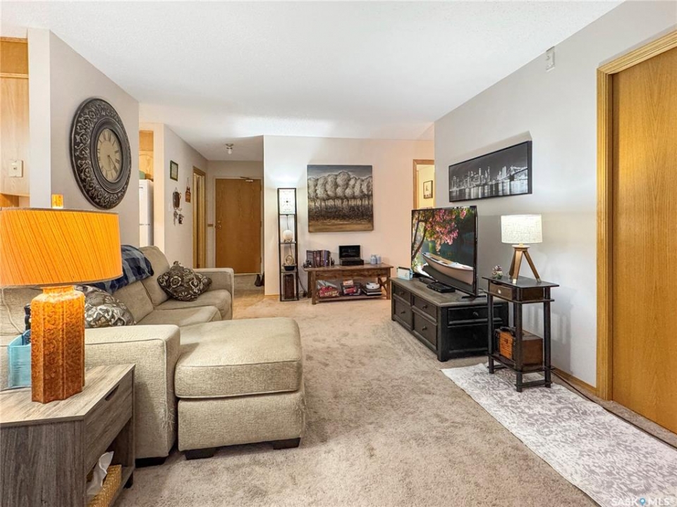 Enjoy simple, stress-free living in this second-floor condo located in the well-maintained Parkview Manor. With 993 sq. ft. of thoughtfully designed space, this unit offers two comfortable bedrooms, a 4-pc bathroom, and the convenience of in-suite laundry. The open living and dining area creates a relaxed, welcoming atmosphere, perfect for quiet evenings or hosting guests. The kitchen is practical and efficient, complete with all appliances included (recently upgraded), so you can move in and enjoy right away. The kitchen has lots of cupboard space and a convenient storage room has extra space for small appliances. The building features an amenities room, electrified parking, and condo fees that cover all utilities except power, keeping monthly expenses simple and predictable. Located close to everyday conveniences, this condo is an excellent choice for those looking to downsize without compromise or enjoy a low-maintenance lifestyle. Call today for a private showing.