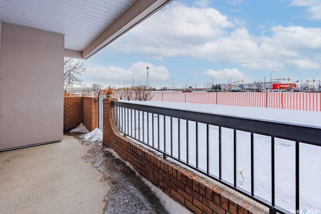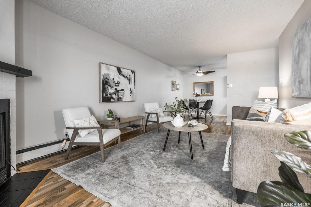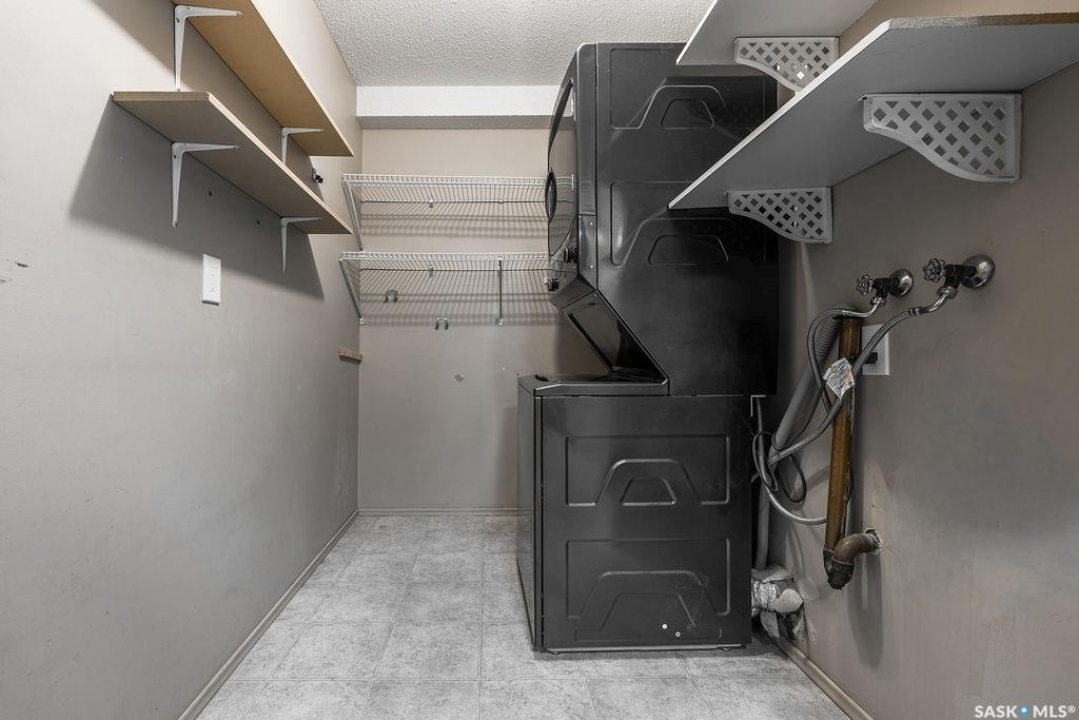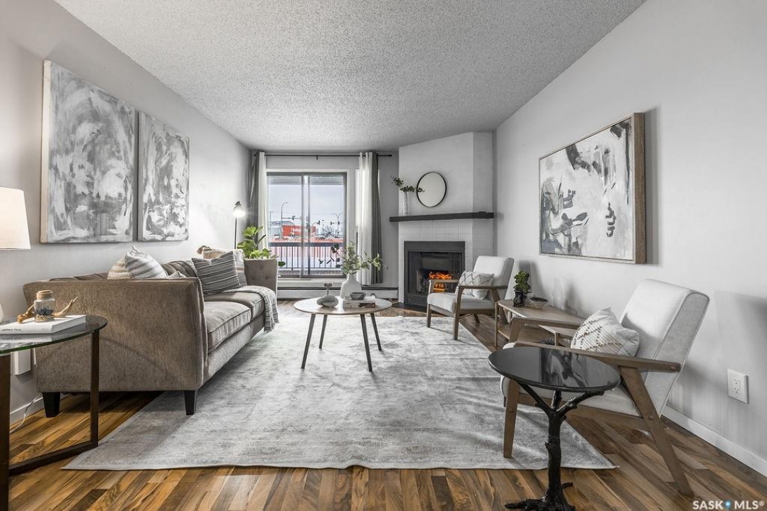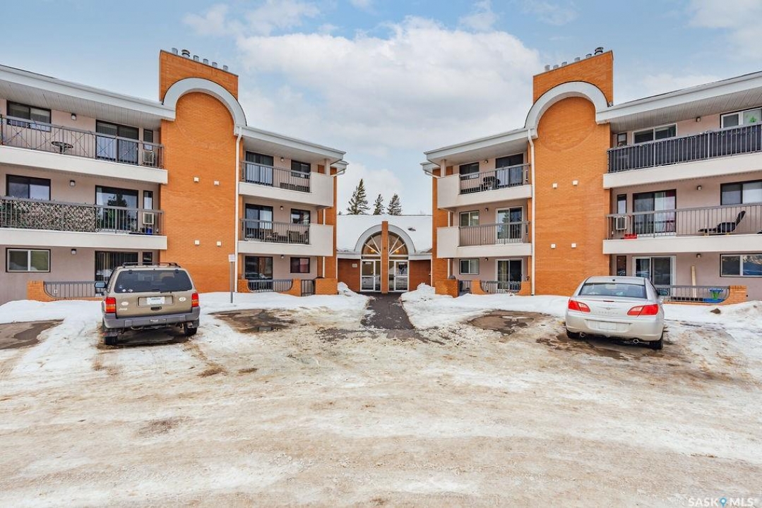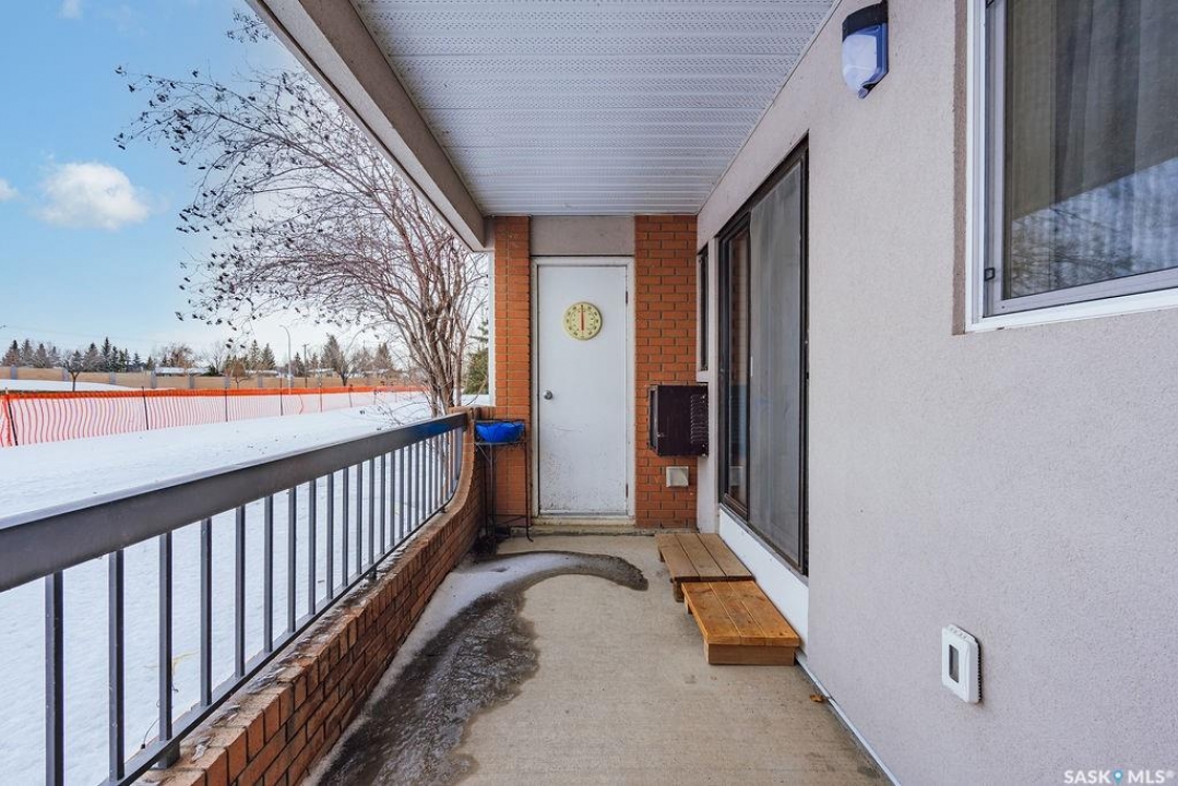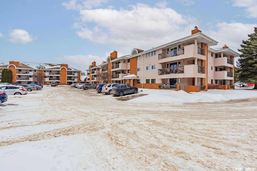 Welcome to Unit 107 at 209A Creek Place — a bright, sunny main-floor condo that checks all the right boxes for comfort and convenience. This spacious 936 sq. ft. unit offers two generously sized bedrooms and two bathrooms, making it ideal for first-time buyers, downsizers, or anyone who loves a smart, functional layout. The large living room is warm and inviting, featuring an electric fireplace and direct access to a private, oversized balcony (with outdoor storage)—perfect for morning coffee or relaxing at the end of the day. The kitchen is roomy and functional and opens to a large dining area. The in-suite laundry within the unit's huge storage room makes condo living easy and practical. The building is well maintained and thoughtfully designed, with an easy-access parking stall located close to an entrance plus plenty of visitor parking for guests. There is also a large amenities room for your use. Set in the neighbourhood of Lawson Heights, you'll love being close to it all—grocery stores, restaurants, Lawson Heights Mall, schools, dental and medical services, and quick access to the river and Meewasin trails for walking, biking, or simply enjoying the outdoors. Bright, comfortable, and incredibly well located—this is main-floor condo living done right.