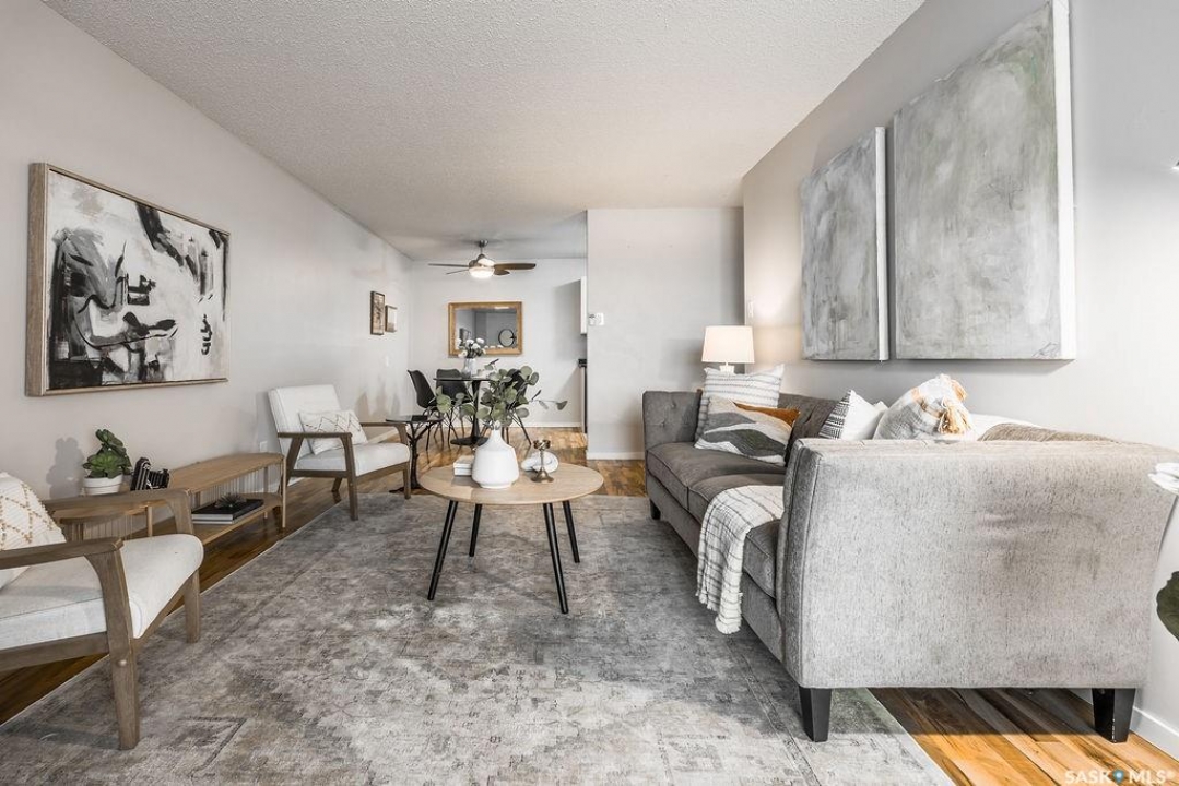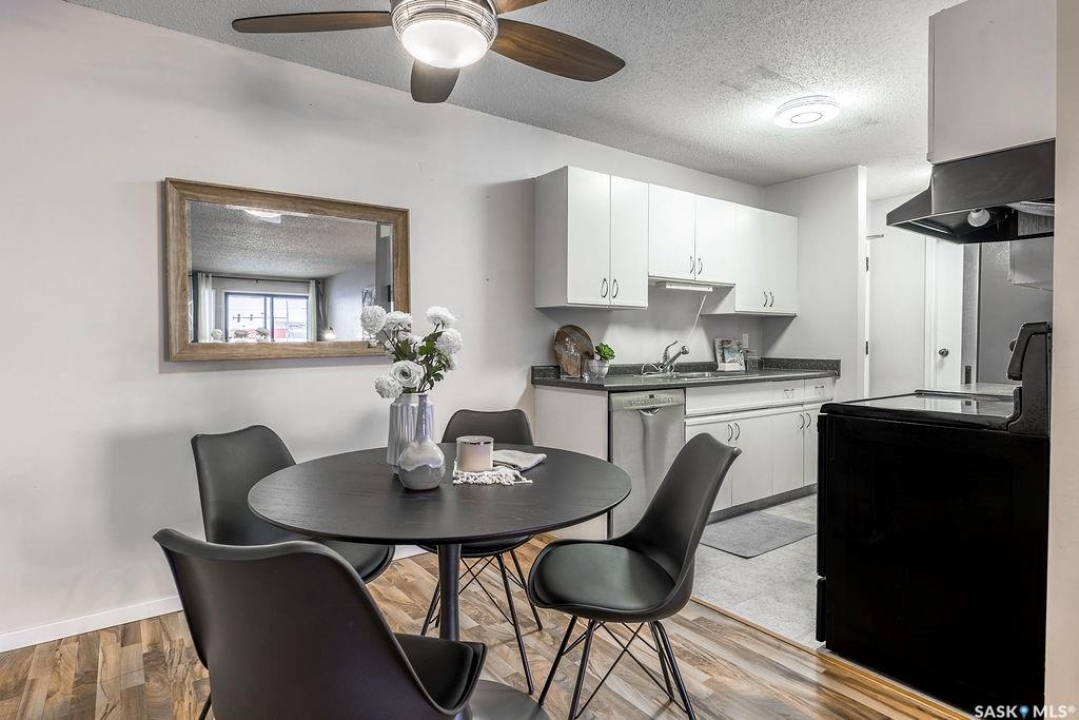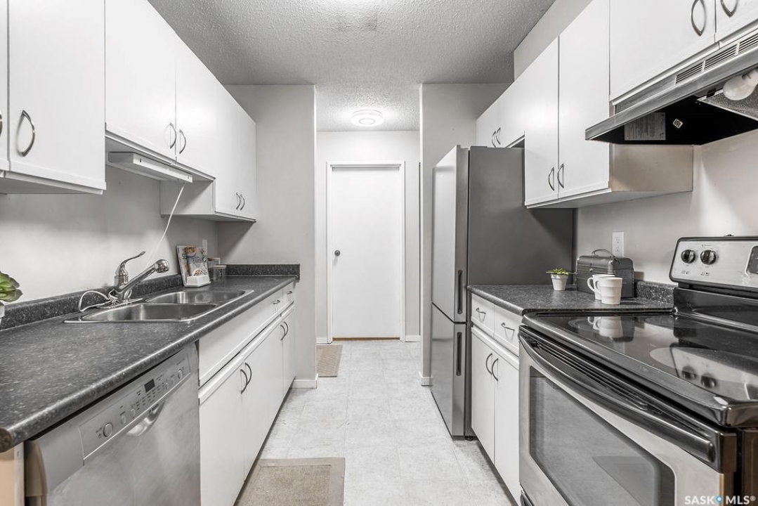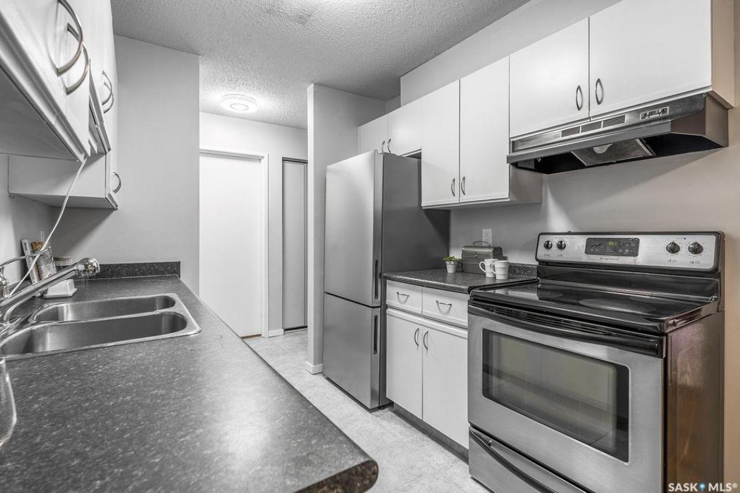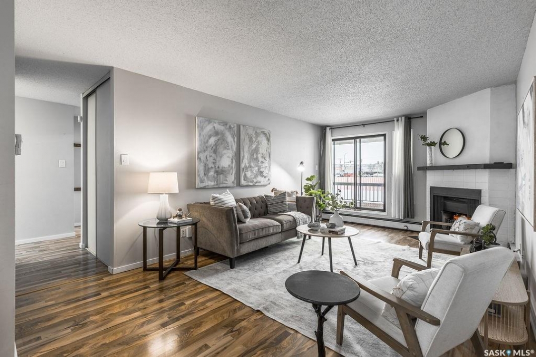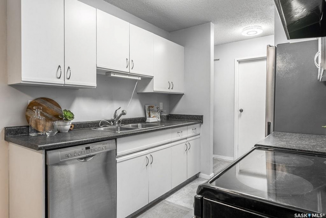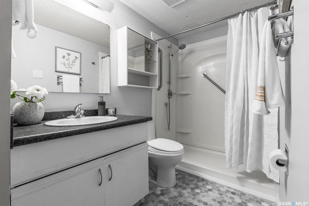 Welcome to Unit 107 at 209A Creek Place — a bright, sunny main-floor condo that checks all the right boxes for comfort and convenience. This spacious 936 sq. ft. unit offers two generously sized bedrooms and two bathrooms, making it ideal for first-time buyers, downsizers, or anyone who loves a smart, functional layout. The large living room is warm and inviting, featuring an electric fireplace and direct access to a private, oversized balcony (with outdoor storage)—perfect for morning coffee or relaxing at the end of the day. The kitchen is roomy and functional and opens to a large dining area. The in-suite laundry within the unit's huge storage room makes condo living easy and practical. The building is well maintained and thoughtfully designed, with an easy-access parking stall located close to an entrance plus plenty of visitor parking for guests. There is also a large amenities room for your use. Set in the neighbourhood of Lawson Heights, you'll love being close to it all—grocery stores, restaurants, Lawson Heights Mall, schools, dental and medical services, and quick access to the river and Meewasin trails for walking, biking, or simply enjoying the outdoors. Bright, comfortable, and incredibly well located—this is main-floor condo living done right.