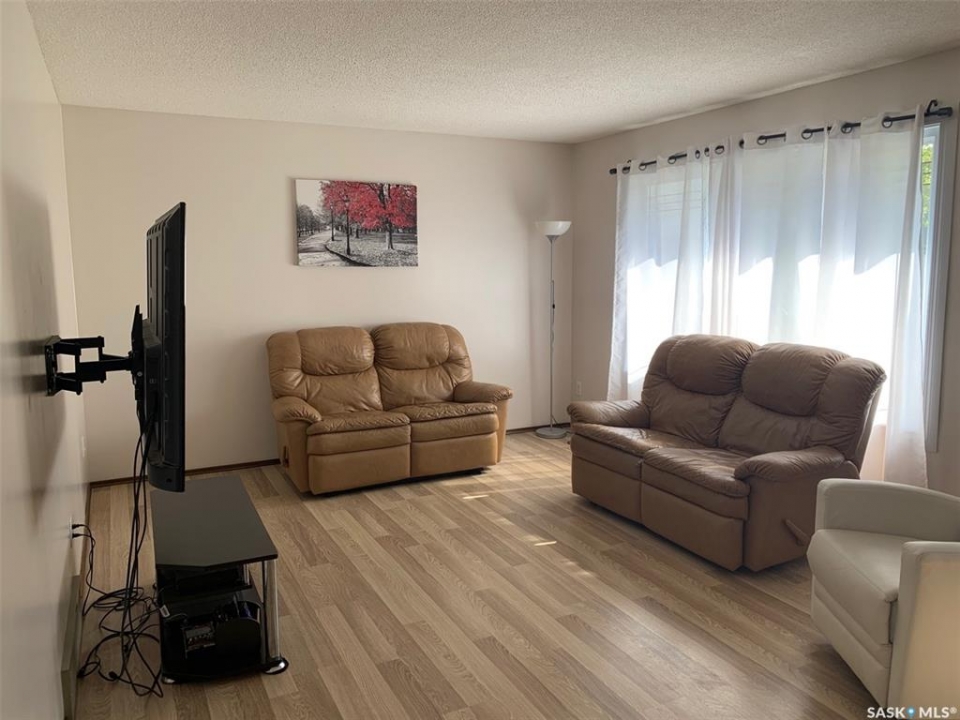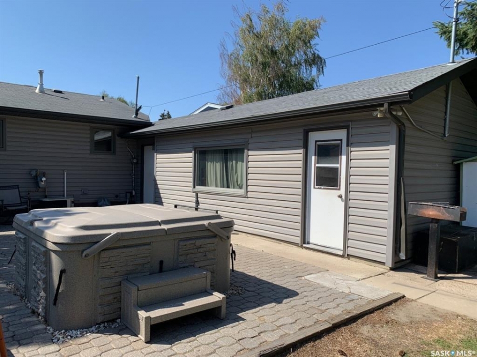 Welcome home to this 988 sq.ft. bungalow, located in the quiet village of Clavet. It features 2+1 bedrooms and 2 bathrooms. The kitchen is efficiently designed with dining space. The basement is fully finished with a large recreation area and kitchen space. The home has lots of additional storage. The mature yard and spacious yard with a large interlocking brick patio, hot tub, underground sprinklers, and plenty of room for parking. Additional features include: Central Air, Central vacuum, hot tub, Saskatoon water and sewer, triple glazed windows, single attached garage with an attached workshop, direct entry from the garage, main floor laundry, storage sheds, and all appliances included. Clavet offers a K-12 school with in-town bussing. This is the perfect home for you and your family and is a must see.