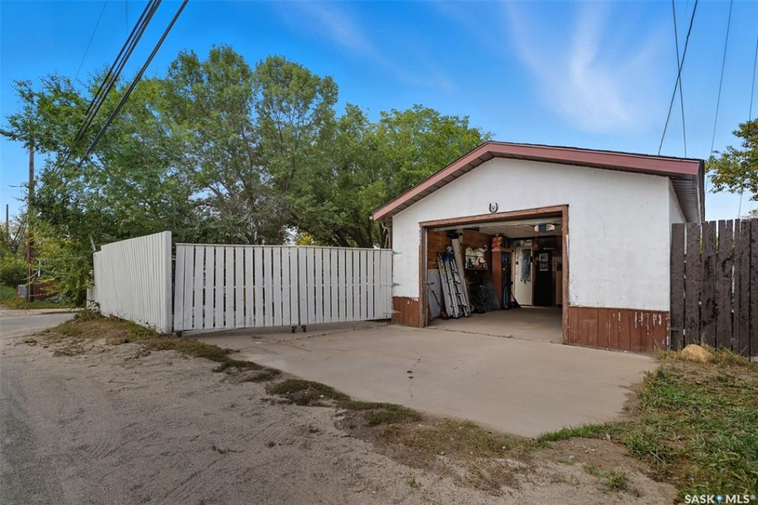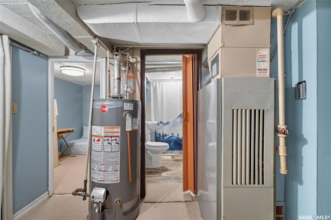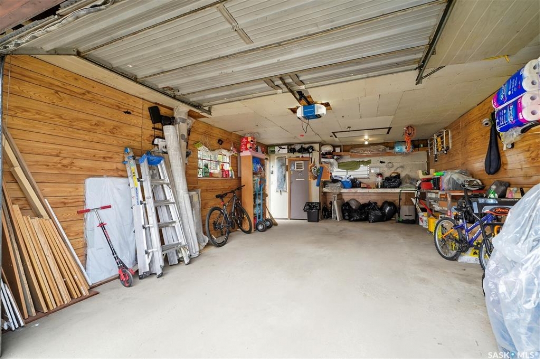 Bright, well-kept 1969 bungalow on a 50×130 corner lot in Meadowgreen—~2-min walk to the Dawah & Community Centre, steps to 22nd St transit/amenities, and an easy stroll to St. Paul's Hospital. Main level offers 3 bedrooms, a gorgeous eat-in kitchen (tile flooring, ceiling fan, LED pot lights, long run of cabinetry), a comfortable living room, and an updated 4-pc bath with tiled surround/niche (see photos). Bedrooms show warm wood tones; vinyl plank runs through most of the main for easy care. The enclosed back porch adds year-round utility—cold-room storage in winter, gear space in summer. Finished lower level features a bedroom + windowed den (use as office/flex), a bathroom with in-bath laundry (see photos), and extra storage. Outside, enjoy a fully fenced, extra-deep backyard with rear gate access and a single detached garage with opener and space for a workbench. Mature city trees are beyond the rear fence—so you get privacy and shade without giving up usable yard area. Possession March 2025.