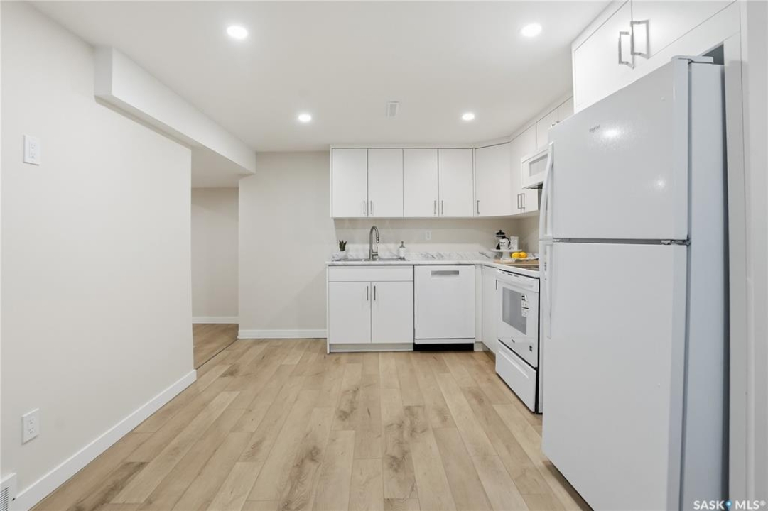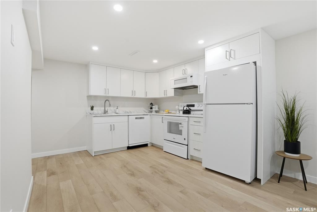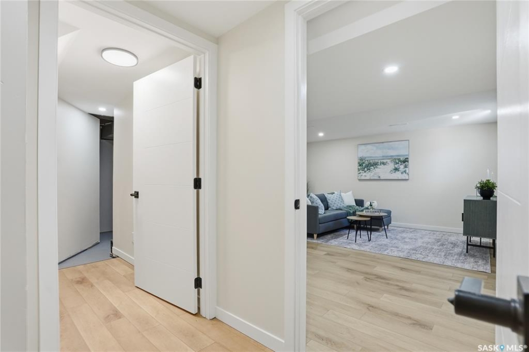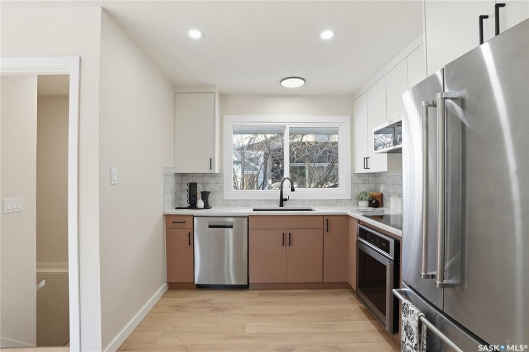 Extensively and professionally renovated, this stunning Brevoort Park home is truly move-in ready. Set in one of Saskatoon's most sought-after neighbourhoods, you'll love the convenience of being close to schools, parks, Circle Drive, and the amenities of 8th Street. The main floor offers a bright, open, and functional layout featuring three generous bedrooms, a stylish and practical kitchen, and a beautifully sunlit living room that flows seamlessly into a spacious dining area. A modern five-piece bathroom completes this level. With a separate entrance, the lower level offers excellent flexibility and revenue potential. The thoughtfully designed non-conforming suite is ideal for extended family, a nanny suite, rental income, or Airbnb. It includes a brand-new kitchen, comfortable living and dining space, two bedrooms (one bedroom window may not meet current egress requirements), a three-piece bathroom, and a dedicated laundry area. A separate laundry and mechanical room serve the main floor. Upgrades are extensive and include: new flooring throughout, windows, furnace, central air conditioning, appliances (one set of laundry currently in use), bathrooms, paint, trim and baseboards, exterior paint, and new electrical and plumbing fixtures. Outside, enjoy a fully fenced yard complete with a fire-pit area and storage shed. The property also offers a three-car driveway, carport, rear alley access, and ample space to build a future double garage. A beautifully updated home in an exceptional location — perfect for families, investors, or those looking for flexible living options.